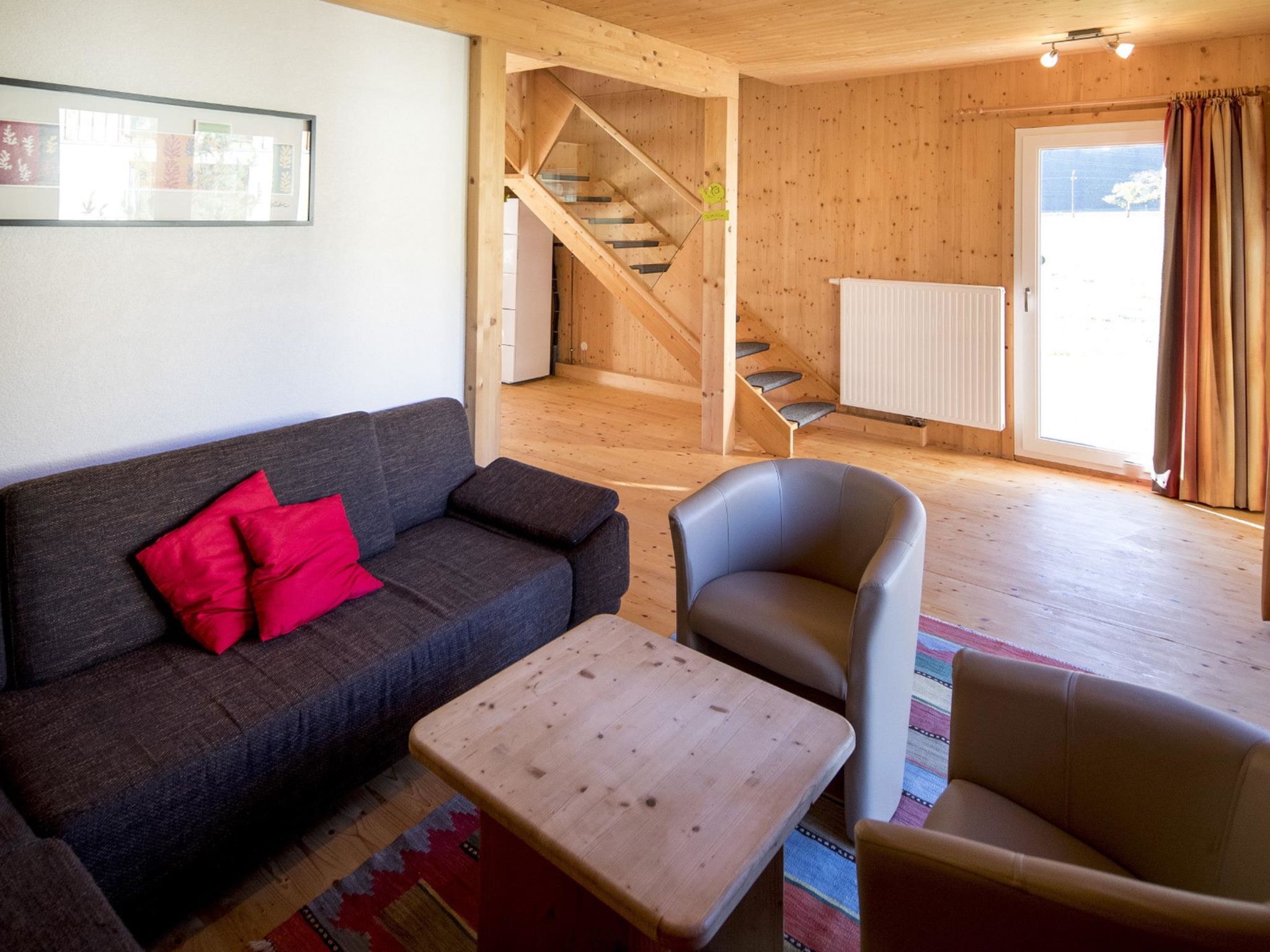 Relax Holiday Mur 21a, 5-Zimmer-Chalet 100 m2. Geräumig, geschmackvoll eingerichtet: grosses Wohn-/Esszimmer mit Schwedenofen, Essecke, Sat-TV und Flachbildschirm. 3 Doppelzimmer. Durchgangszimmer mit 1 Bett und 1 x 1 Etagenbetten. (Backofen, Geschirrspüler, 4 Glaskeramikplatten, Mikrowelle, elektrische Kaffeemaschine). 2 Duschen/WC, Hydromassage-Dusche. Terrasse. Terrassenmöbel. Schöne Sicht auf die Landschaft. Zur Verfügung: Sauna. Internet (Wireless LAN, gratis). Bitte beachten: Nichtraucher-Unterkunft. Beim Mietobjekt handelt es sich um ein Typenhaus bzw. Um eine Typenwohnung. Abweichende Hausausstattung möglich: entweder Finn-Sauna oder Infrarotkabine. Die Sauna ist eine Infrarotkabine.