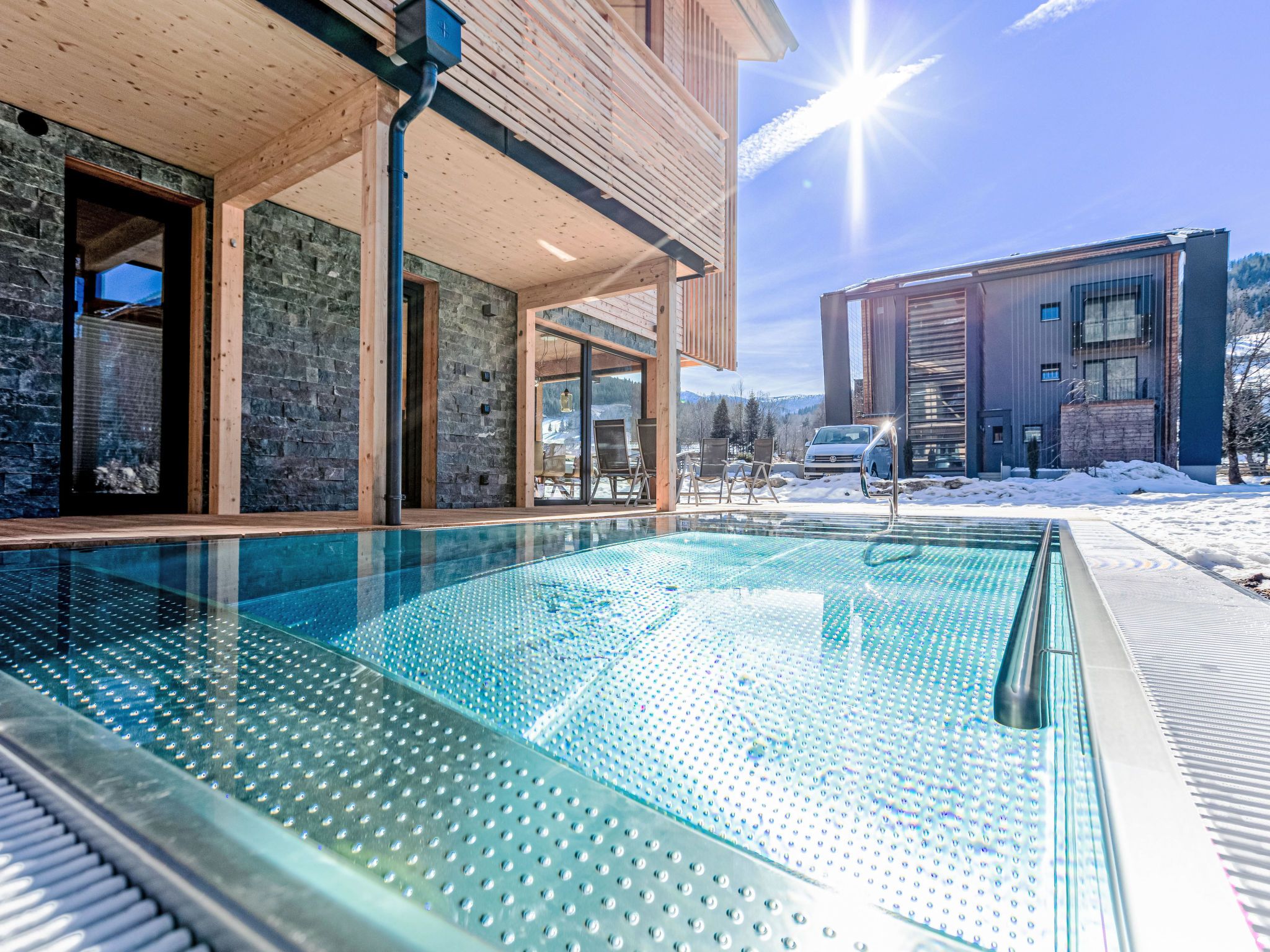 Sankt Georgen: Luxuriöse Ferienanlage Kreischberg Pool Villa b.AlpsResort, Baujahr 2022. 1 km vom Zentrum von Sankt Georgen, ruhige, sonnige Lage, 150 m vom Skigebiet. Im Hause: Zentralheizung. Parkplatz auf dem Grundstück. Supermarkt 1 km, Bahnstation St Lorenzen 170 m. Gondelbahn, Skisportanlagen, Skischule 150 m. Bekannte Skigebiete sind gut erreichbar: Kreischberg 150 m. Bitte beachten: Bei guter Schneelage Zufahrt mit den Skiern bis zum Haus. Die Mietobjekte können sich in Wohnfläche, Raumaufteilung, Ausstattung und Einrichtung unterscheiden.
