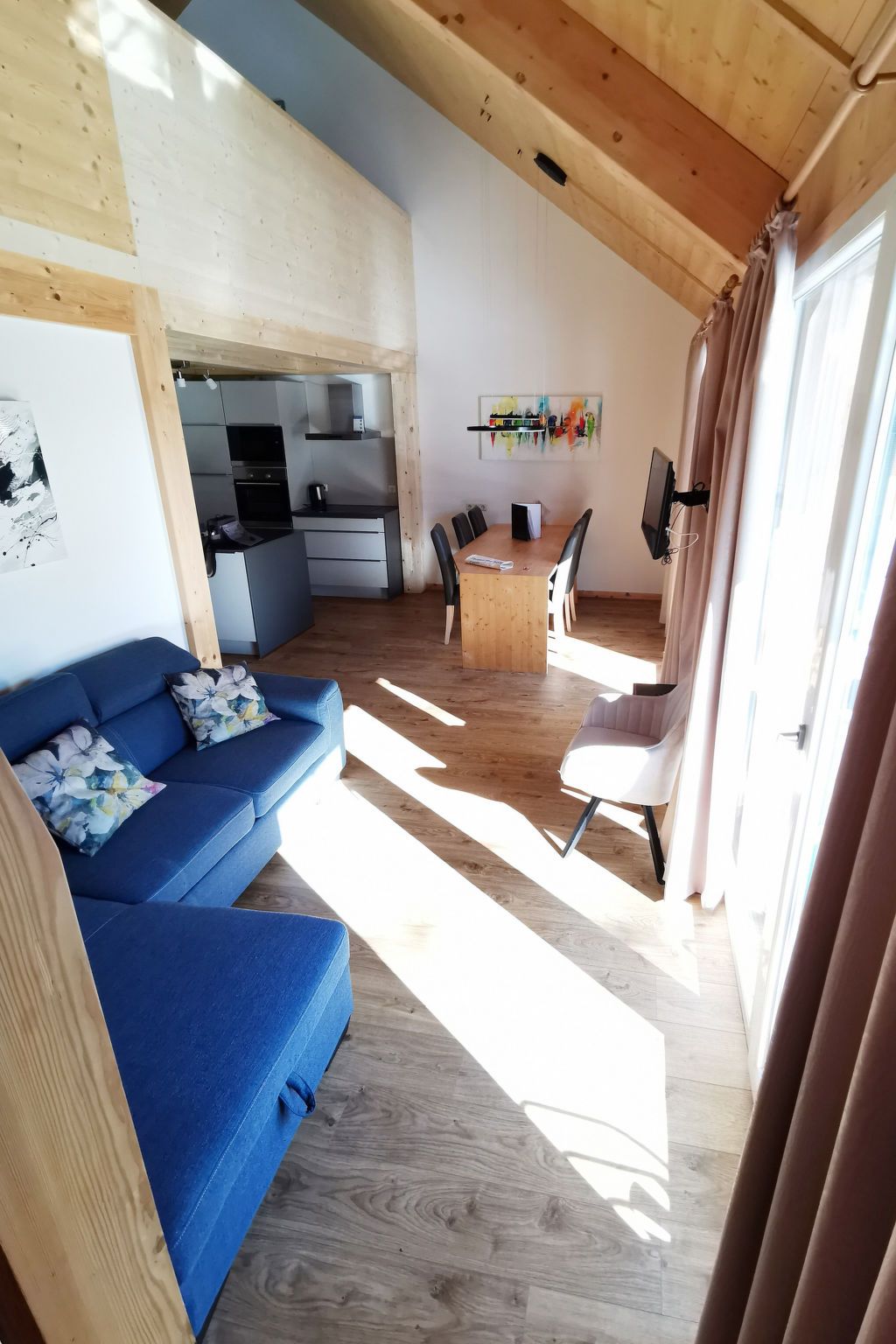 mit 3 Schlafzimmern & IR-Sauna, 4-Zimmer-Wohnung 60 m2. Hell, komfortabel eingerichtet: Wohn-/Esszimmer mit Esstisch und Sat-TV (Flachbildschirm). 3 Doppelzimmer. Offene Küche (Backofen, Geschirrspüler, 4 Glaskeramikplatten, Mikrowelle, elektrische Kaffeemaschine). Bad/Dusche/WC, Hydromassage-Dusche, Sauna. Balkon. Balkonmöbel. Schöne Sicht auf die Skipiste. Zur Verfügung: Internet (Wireless LAN, gratis). Bitte beachten: Nichtraucher-Unterkunft. Rauchmelder. Beim Mietobjekt handelt es sich um ein Typenhaus bzw. Um eine Typenwohnung. Die Sauna ist eine Infrarotkabine.