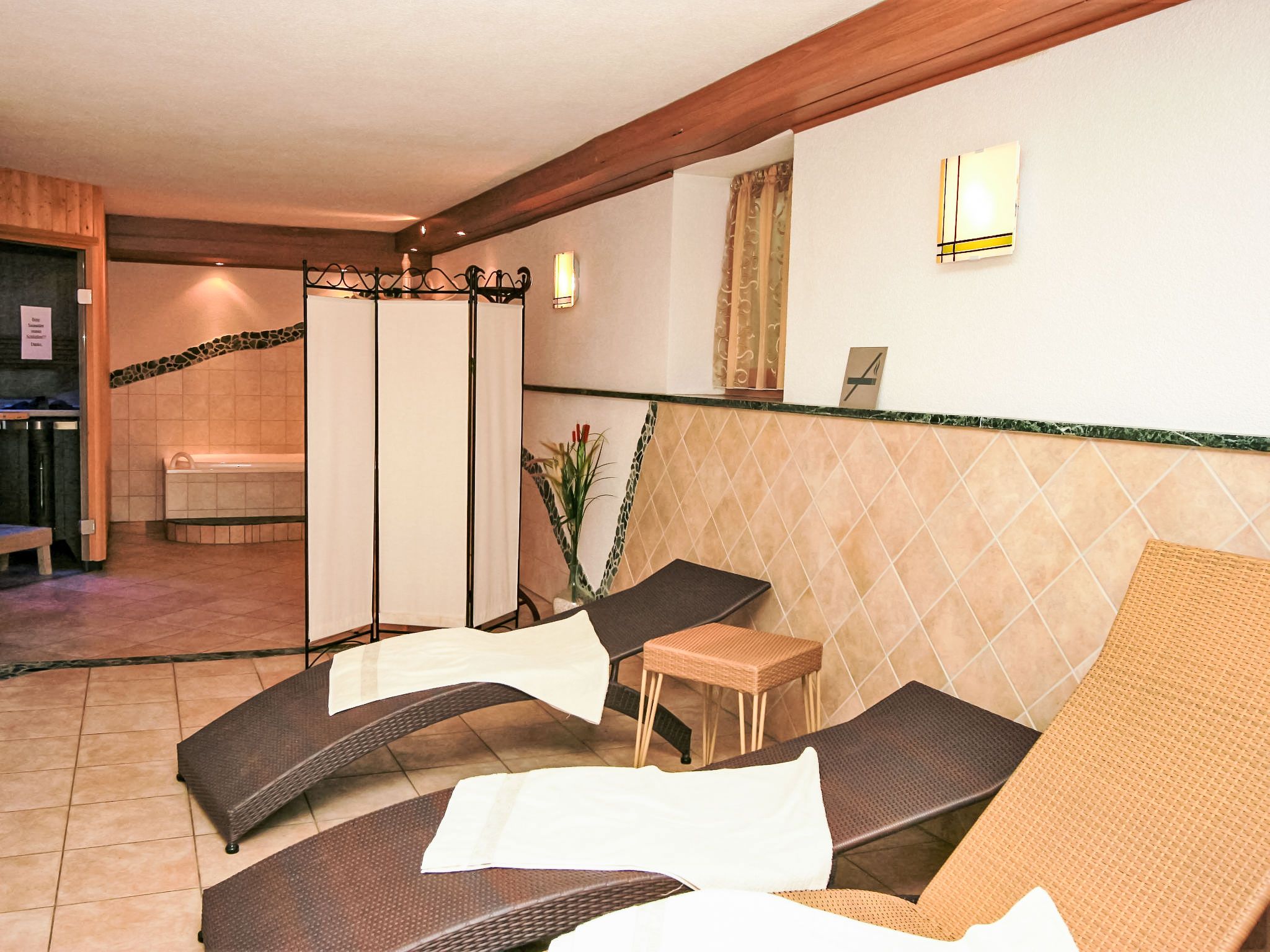 Hochjoch, 2-Zimmer-Wohnung 49 m2, im Erdgeschoss. Objekt geeignet für 2 Erwachsene + 2 Kinder. Vollständig renoviert, komfortabel und geschmackvoll eingerichtet: Eingang. Wohn-/Schlafzimmer mit 1 Doppeldiwanbett und Kabel-TV. 1 Doppelzimmer mit Kabel-TV. Offene Küche (Backofen, Geschirrspüler, 2 Glaskeramikplatten, Mikrowelle, elektrische Kaffeemaschine) mit kleiner Bar, Esstisch. Dusche, sep. WC, Doppelwaschbecken. Grosse Terrasse, Westlage. Terrassenmöbel, Liegestühle. Sehr schöne Sicht auf die Berge und die Skipiste. Zur Verfügung: Safe, Haartrockner. Internet (Wireless LAN, gratis). Bitte beachten: Nichtraucher-Unterkunft. Rauchmelder, Feuerlöscher.