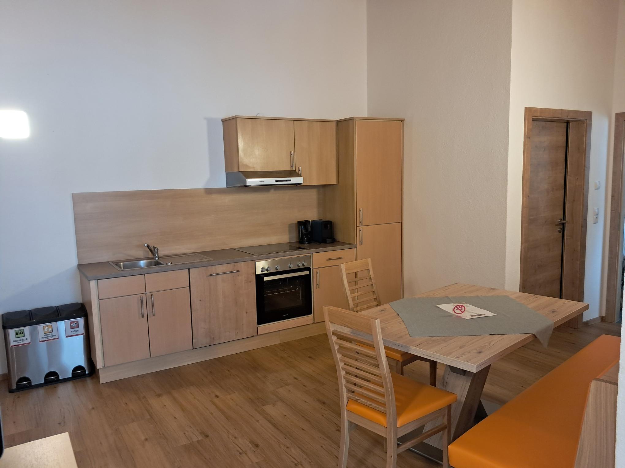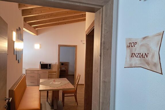 Ihr Appartement Enzian besteht aus 2 Doppelzimmern jeweils mit Flat-TV, 1 Badezimmer mit Dusche/WC und 1 Wohnküche mit Sitzecke und Balkon zum Entspannen. Die Küche ist ausgestattet mit Herd, Geschirrspülmaschine, Kühlschrank/Gefrierfach, Mikrowelle, Wasserkocher, Toaster und Kapsel-Kaffeemaschine - Kapseln sind vor Ort gegen Gebühr erhältlich. Die Wohnung im ländlich-modernen Stil mit Parkettboden ist ca. 50 m² groß.