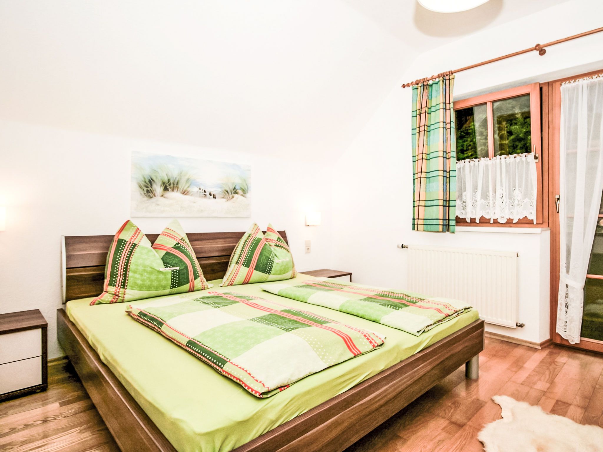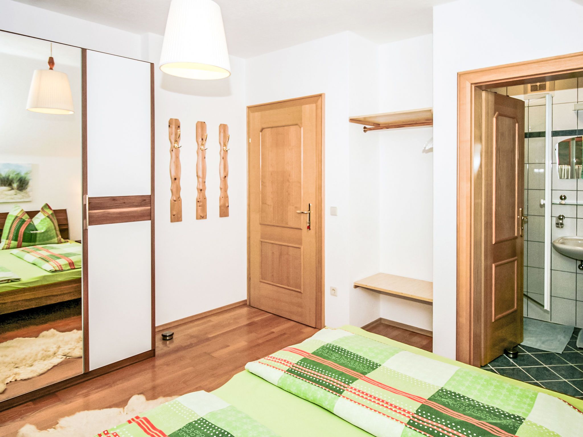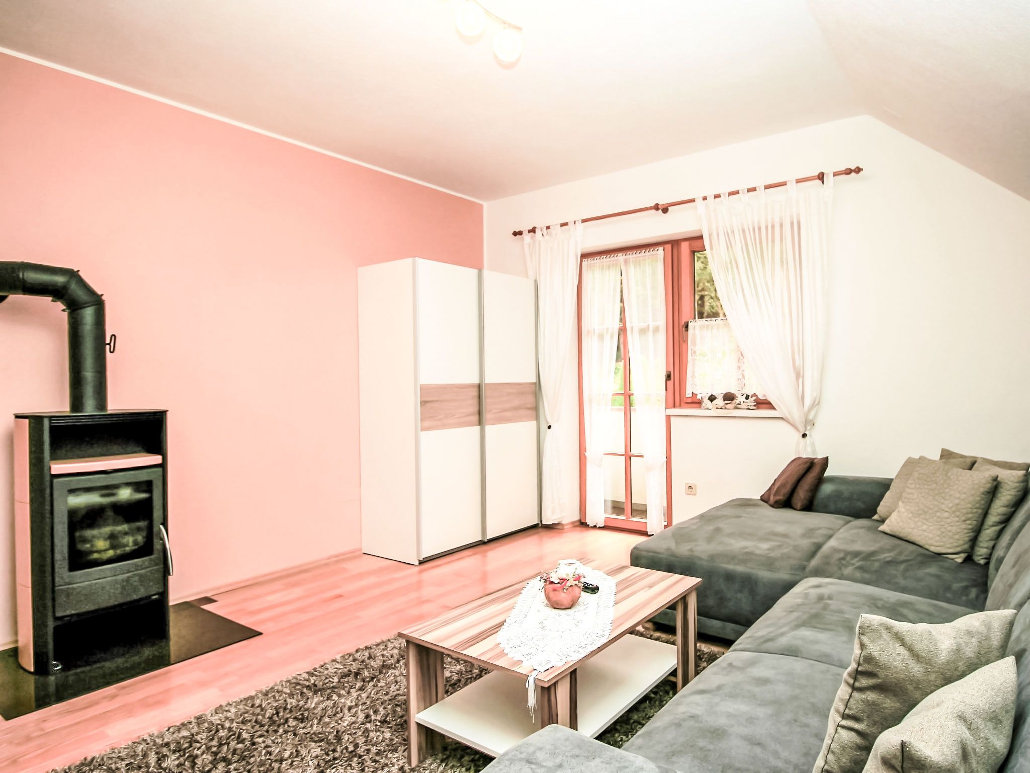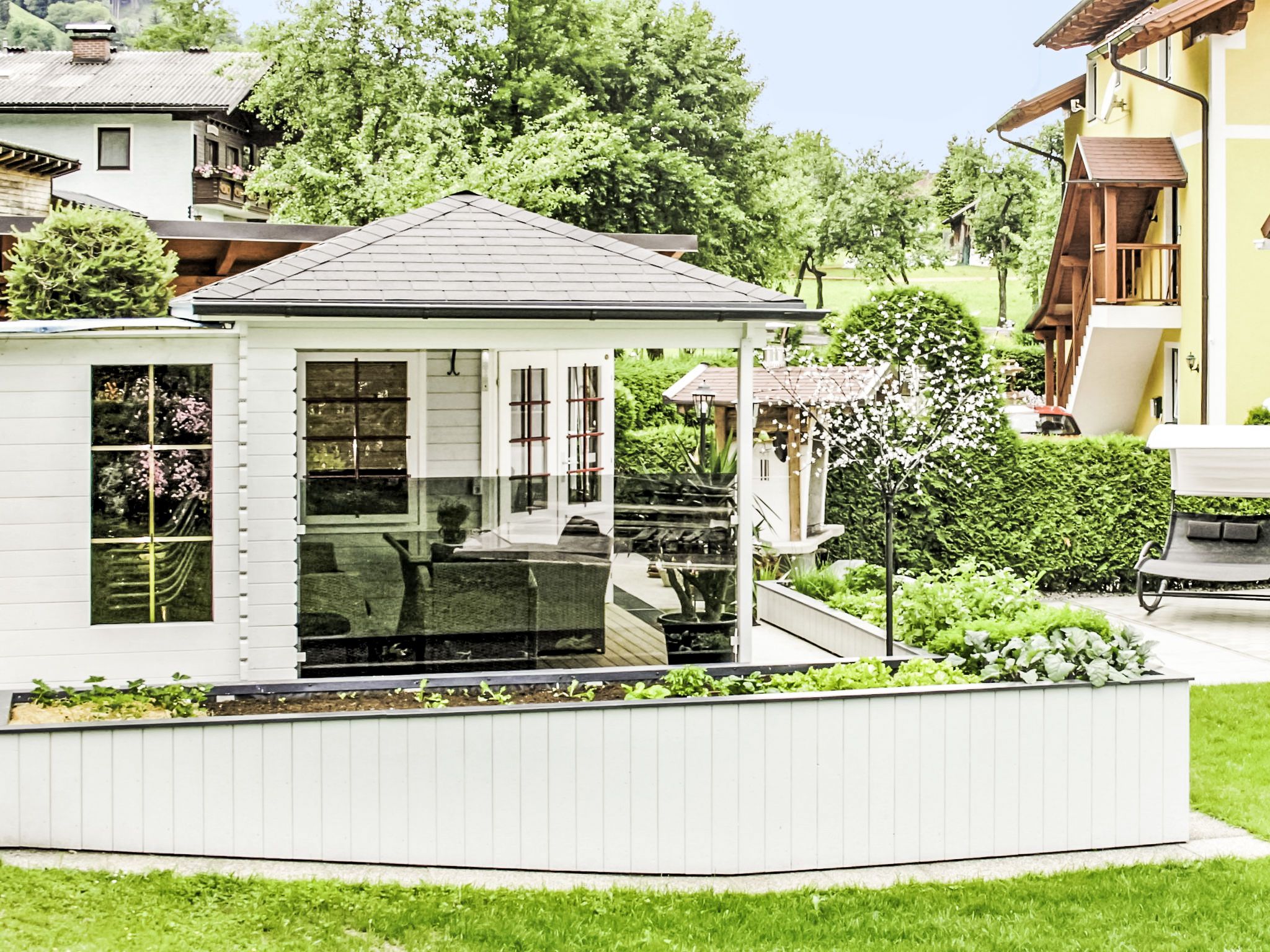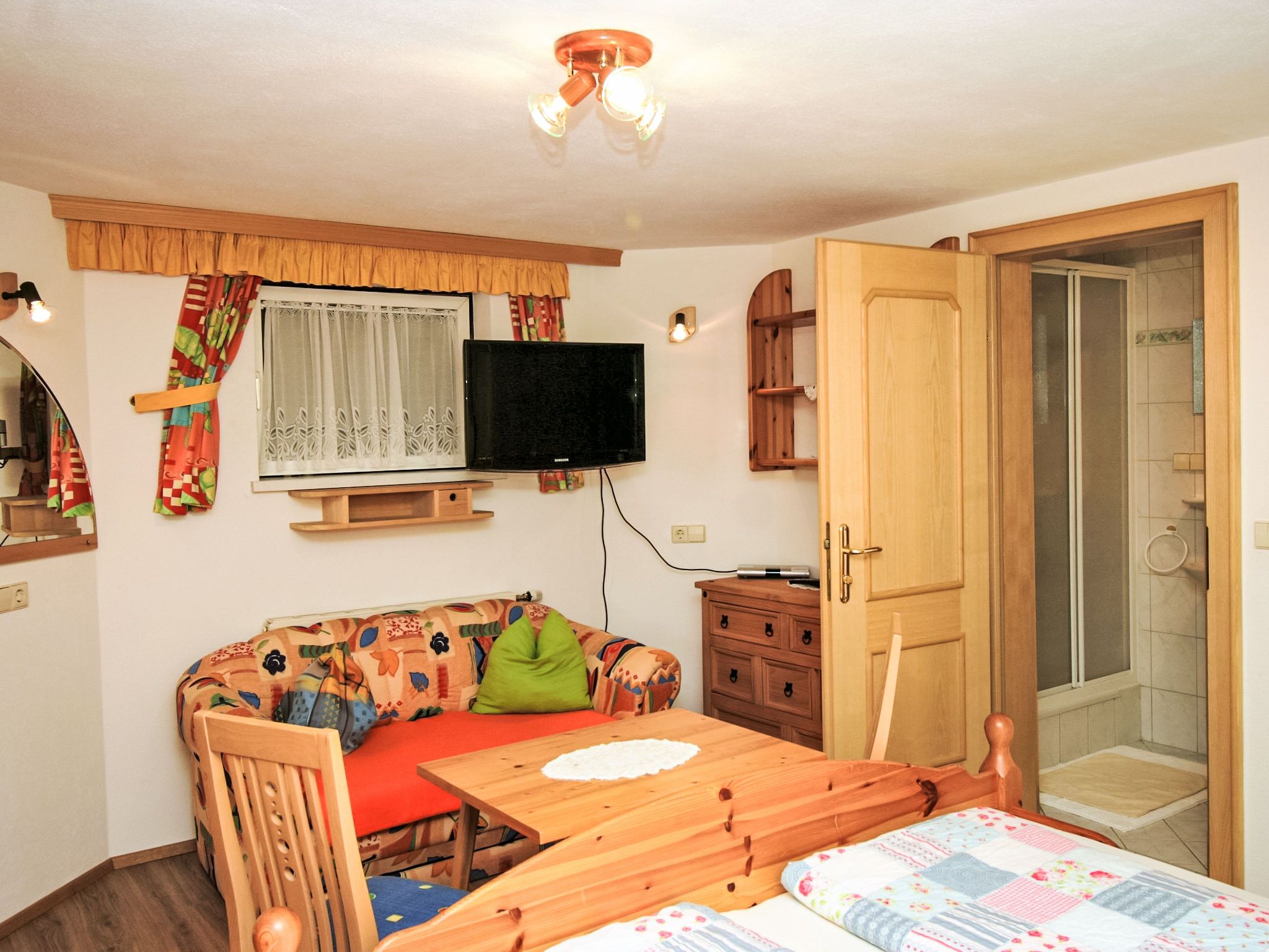 3-Zimmer-Wohnung 60 m2 im 1. Stock. Komfortabel und geschmackvoll eingerichtet: Eingang. Grosses Wohnzimmer mit Schwedenofen und Sat-TV. 1 Doppelzimmer mit Dusche/WC. Wohnküche (Backofen, Geschirrspüler, 4 Glaskeramikplatten, Tiefkühler, elektrische Kaffeemaschine, Kombinationsmikrowelle) mit Esstisch, Radio. Unteres Geschoss: 25 m2, Studio mit 1 Doppelbett, Dusche/WC und Sat-TV. 2 Balkone, Gartensitzplatz, Laube. Balkonmöbel, Gartengrill, Liegestühle. Sicht auf die Berge und die Ortschaft. Zur Verfügung: Haartrockner. Internet (Wireless LAN, gratis). Bitte beachten: ein Doppelzimmer liegt außerhalb der Wohnung. Nichtraucher-Haus. Rauchmelder. Die sehr gepflegte Gartenanlage ist mit überdachtem Pavillon, dem gemütlichen Gartenhaus mit Heizung und überdachter Terrasse sowie einem Gartengrill ausgestattet. Seele baumeln inklusive! SOMMERCARD inklusive! Maximalbelegung 4 Personen.