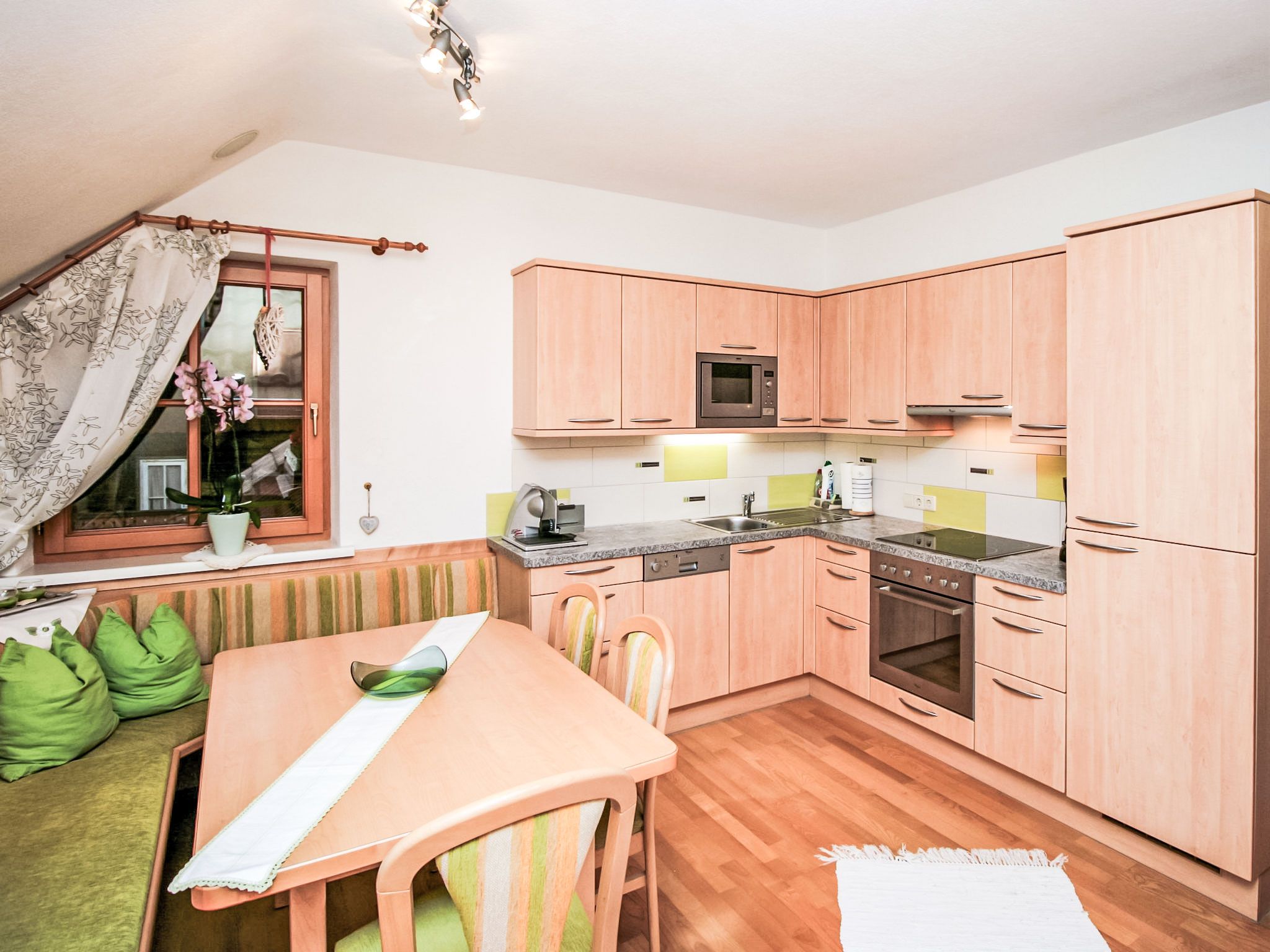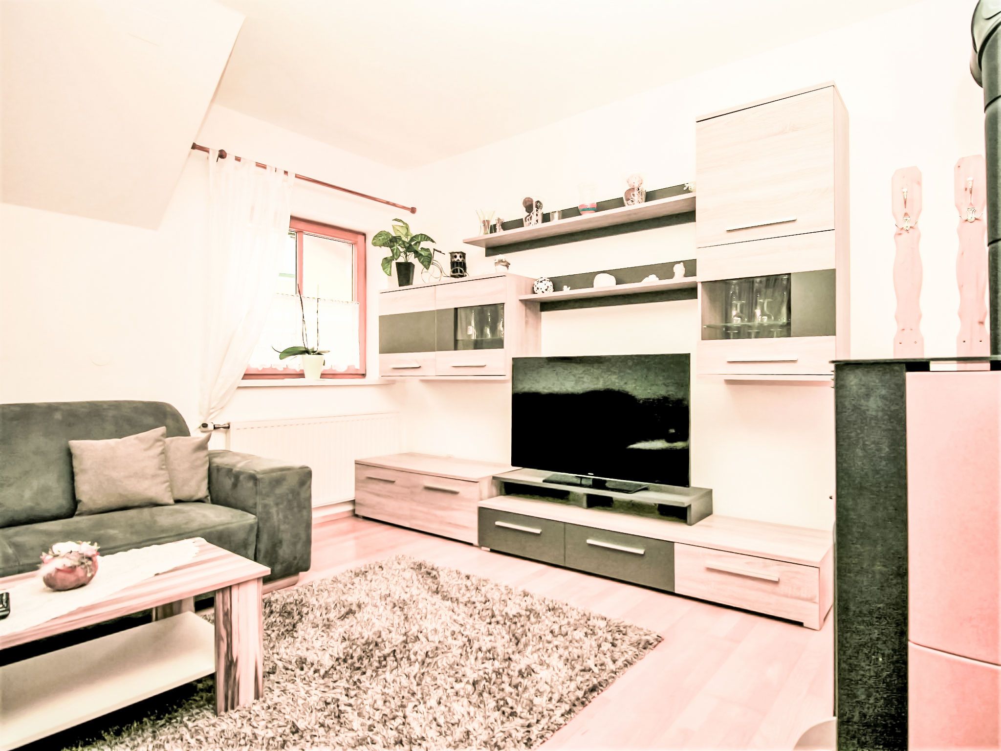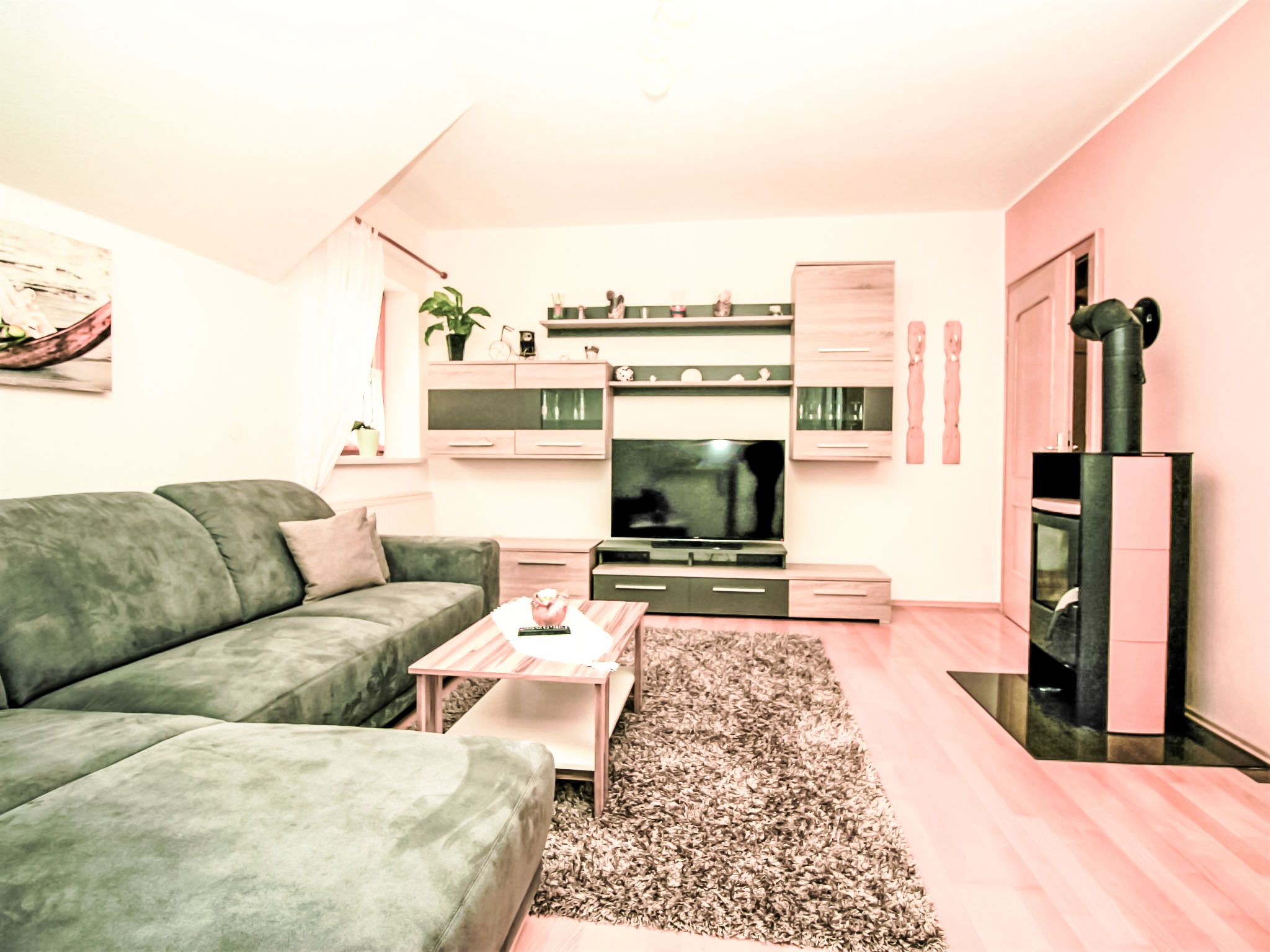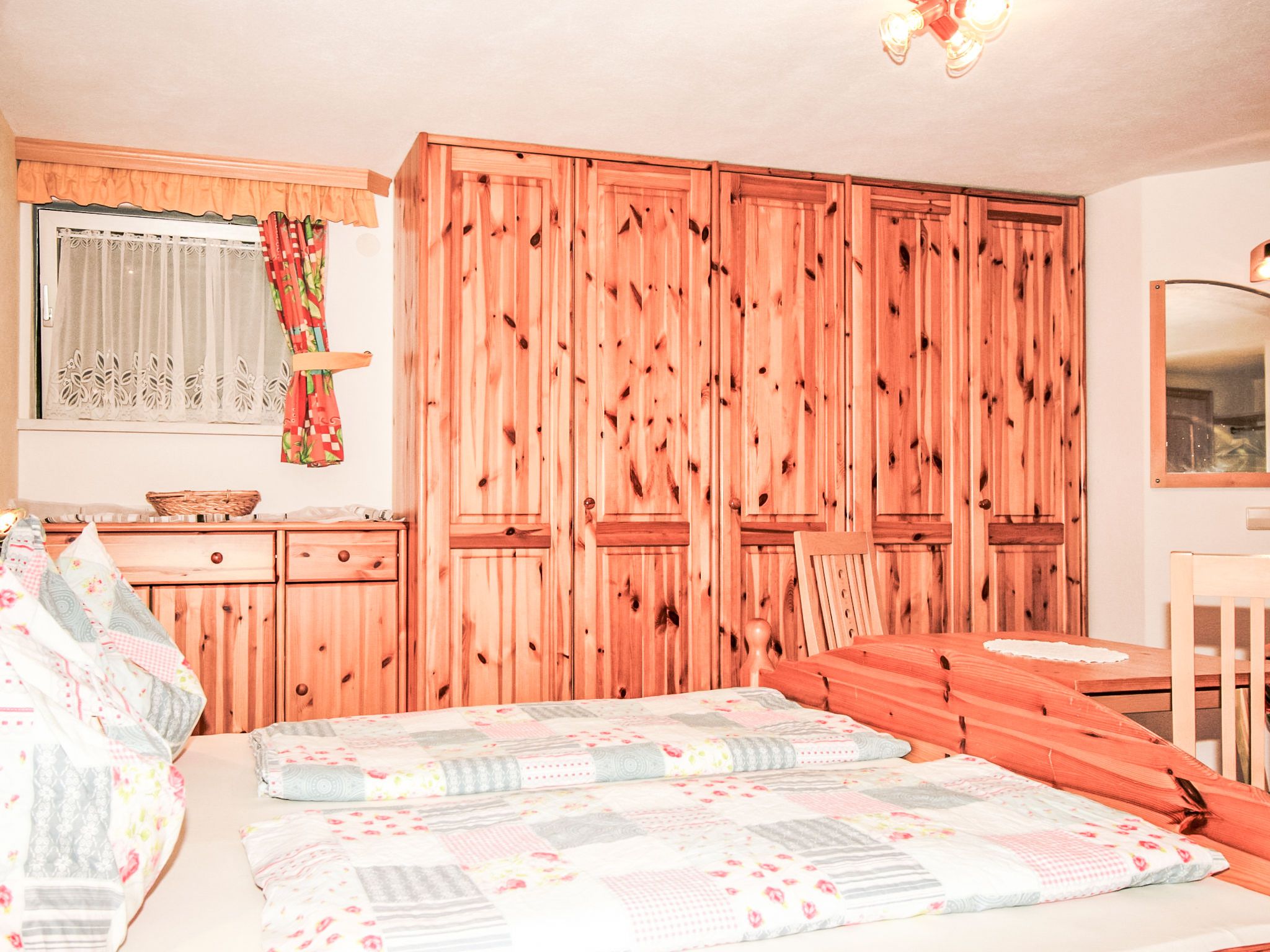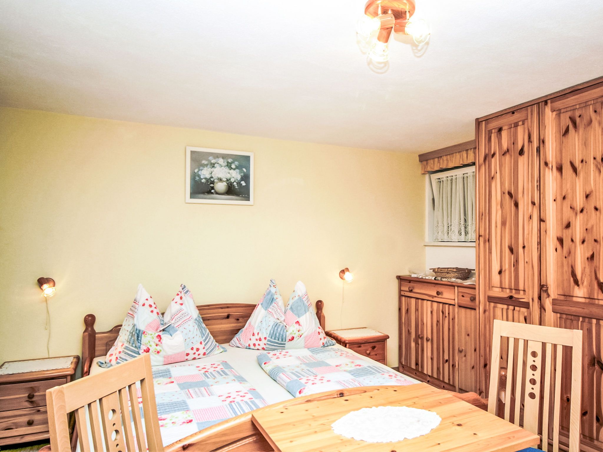 3-Zimmer-Wohnung 60 m2 im 1. Stock. Komfortabel und geschmackvoll eingerichtet: Eingang. Grosses Wohnzimmer mit Schwedenofen und Sat-TV. 1 Doppelzimmer mit Dusche/WC. Wohnküche (Backofen, Geschirrspüler, 4 Glaskeramikplatten, Tiefkühler, elektrische Kaffeemaschine, Kombinationsmikrowelle) mit Esstisch, Radio. Unteres Geschoss: 25 m2, Studio mit 1 Doppelbett, Dusche/WC und Sat-TV. 2 Balkone, Gartensitzplatz, Laube. Balkonmöbel, Gartengrill, Liegestühle. Sicht auf die Berge und die Ortschaft. Zur Verfügung: Haartrockner. Internet (Wireless LAN, gratis). Bitte beachten: ein Doppelzimmer liegt außerhalb der Wohnung. Nichtraucher-Haus. Rauchmelder. Die sehr gepflegte Gartenanlage ist mit überdachtem Pavillon, dem gemütlichen Gartenhaus mit Heizung und überdachter Terrasse sowie einem Gartengrill ausgestattet. Seele baumeln inklusive! SOMMERCARD inklusive! Maximalbelegung 4 Personen.