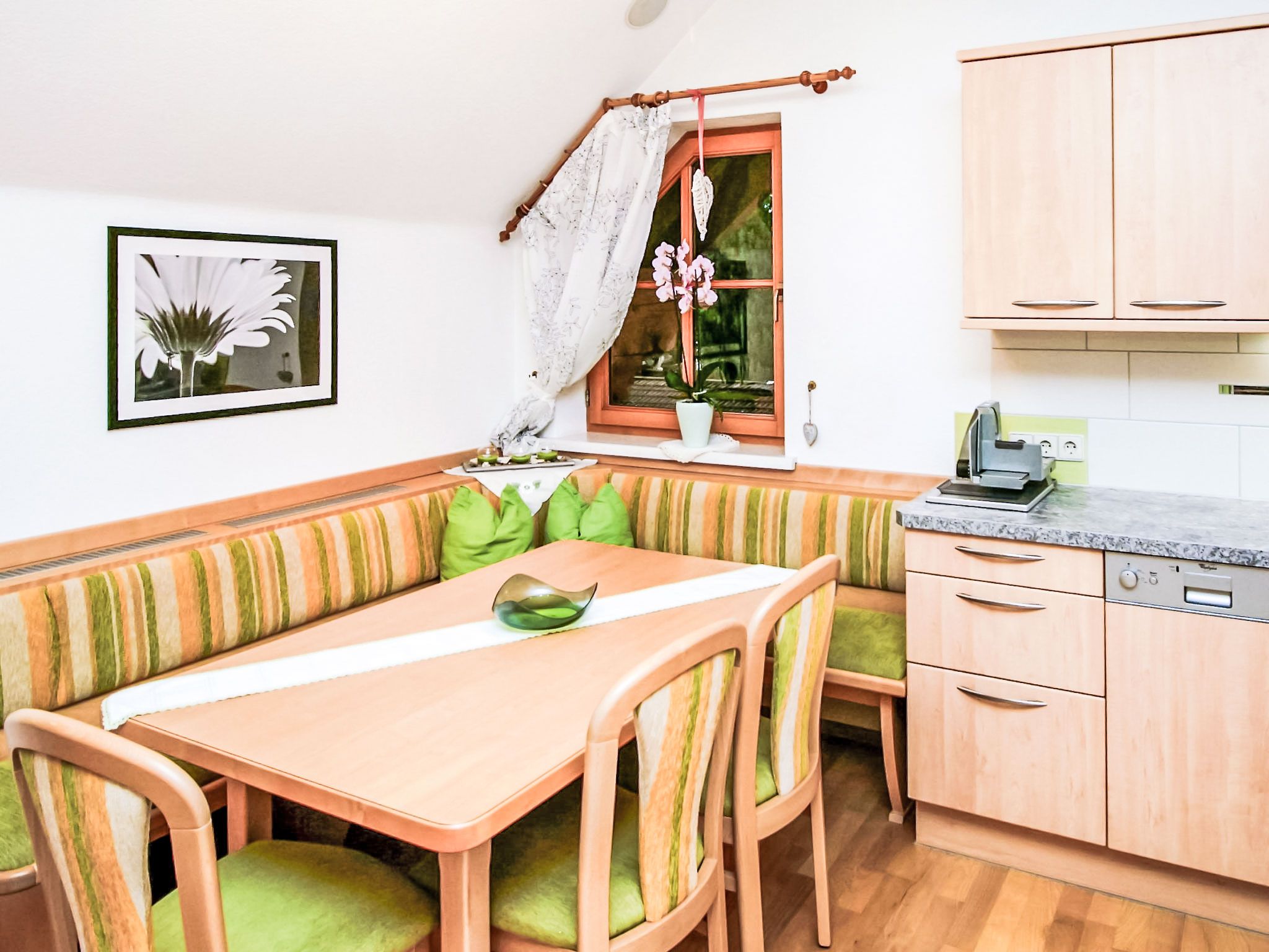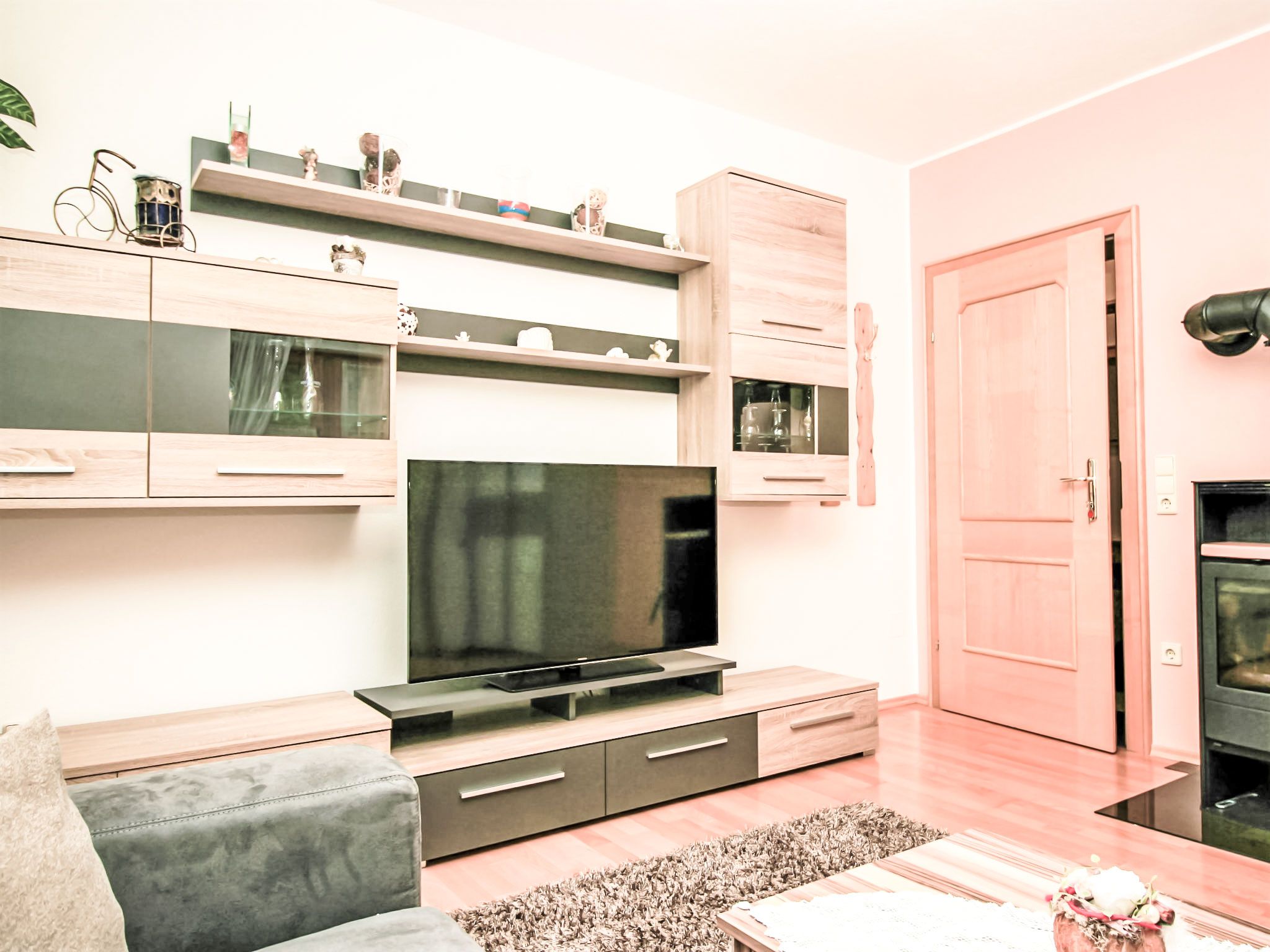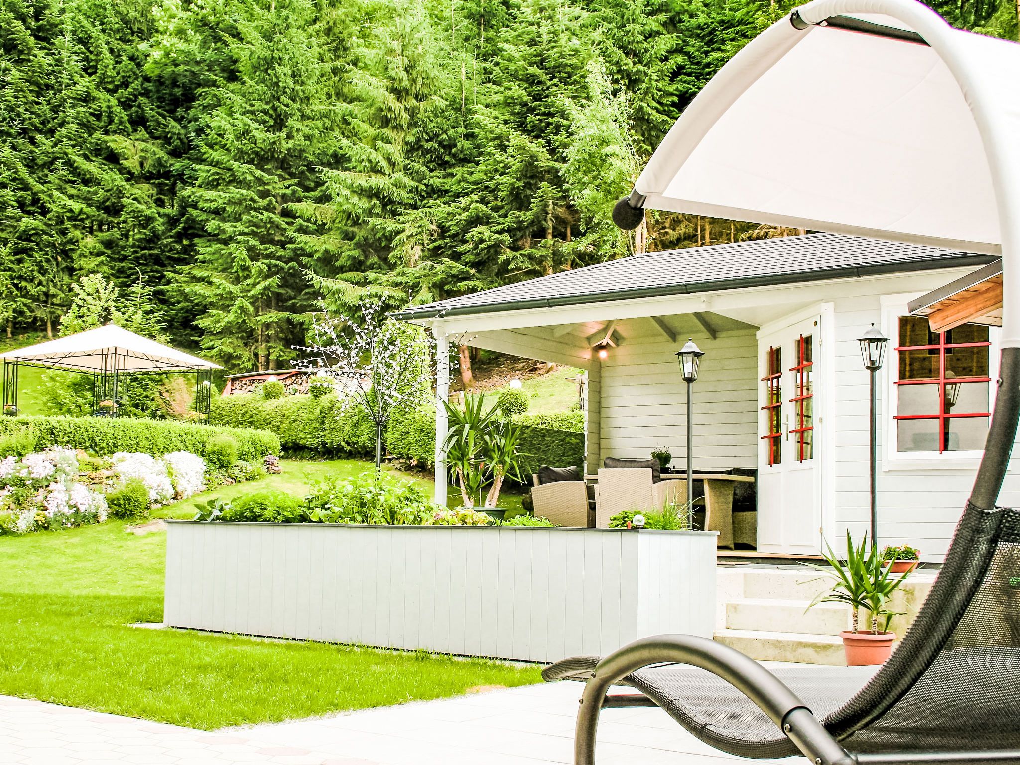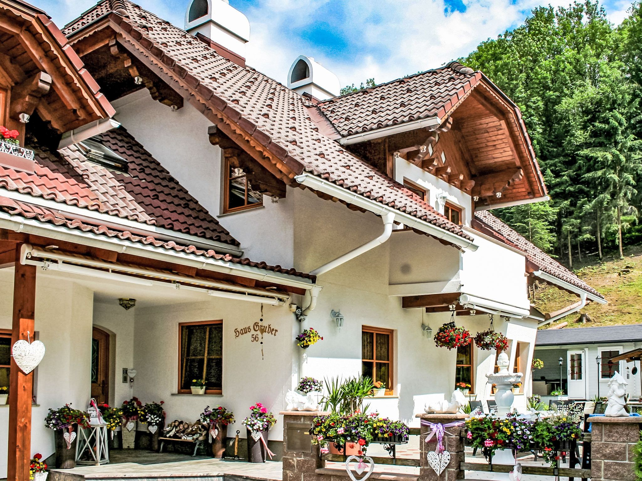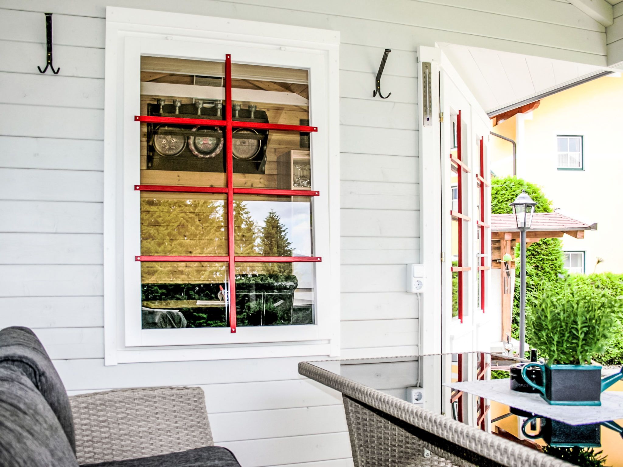 3-Zimmer-Wohnung 60 m2 im 1. Stock. Komfortabel und geschmackvoll eingerichtet: Eingang. Grosses Wohnzimmer mit Schwedenofen und Sat-TV. 1 Doppelzimmer mit Dusche/WC. Wohnküche (Backofen, Geschirrspüler, 4 Glaskeramikplatten, Tiefkühler, elektrische Kaffeemaschine, Kombinationsmikrowelle) mit Esstisch, Radio. Unteres Geschoss: 25 m2, Studio mit 1 Doppelbett, Dusche/WC und Sat-TV. 2 Balkone, Gartensitzplatz, Laube. Balkonmöbel, Gartengrill, Liegestühle. Sicht auf die Berge und die Ortschaft. Zur Verfügung: Haartrockner. Internet (Wireless LAN, gratis). Bitte beachten: ein Doppelzimmer liegt außerhalb der Wohnung. Nichtraucher-Haus. Rauchmelder. Die sehr gepflegte Gartenanlage ist mit überdachtem Pavillon, dem gemütlichen Gartenhaus mit Heizung und überdachter Terrasse sowie einem Gartengrill ausgestattet. Seele baumeln inklusive! SOMMERCARD inklusive! Maximalbelegung 4 Personen.