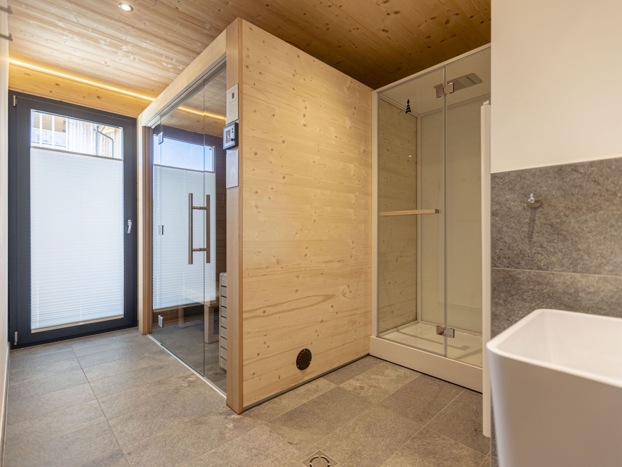 Premium mit 4 Schlafzimmern,Sauna&Pool, 5-Zimmer-Chalet 125 m2. Hell, komfortabel und luxuriös eingerichtet: Wohn-/Esszimmer mit Esstisch, Sat-TV und Flachbildschirm. 1 Doppelzimmer. Offene Küche (Backofen, Geschirrspüler, 4 Glaskeramikplatten, Toaster, Wasserkocher, Tiefkühler, elektrische Kaffeemaschine) mit Schwedenofen. Sep. WC. Obergeschoss: 2 Doppelzimmer, jedes Zimmer mit Dusche/WC. 1 Doppelzimmer mit 1 x 2 Etagenbetten. Bad, sep. WC. Balkon. Balkonmöbel. Sehr schöne Panoramasicht auf die Berge. Zur Verfügung: Sauna. Internet (Wireless LAN, gratis). Bitte beachten: Nichtraucher-Unterkunft. Beim Mietobjekt handelt es sich um ein Typenhaus bzw. Um eine Typenwohnung. Dieses Chalet verfügt über einen privaten Außenpool!