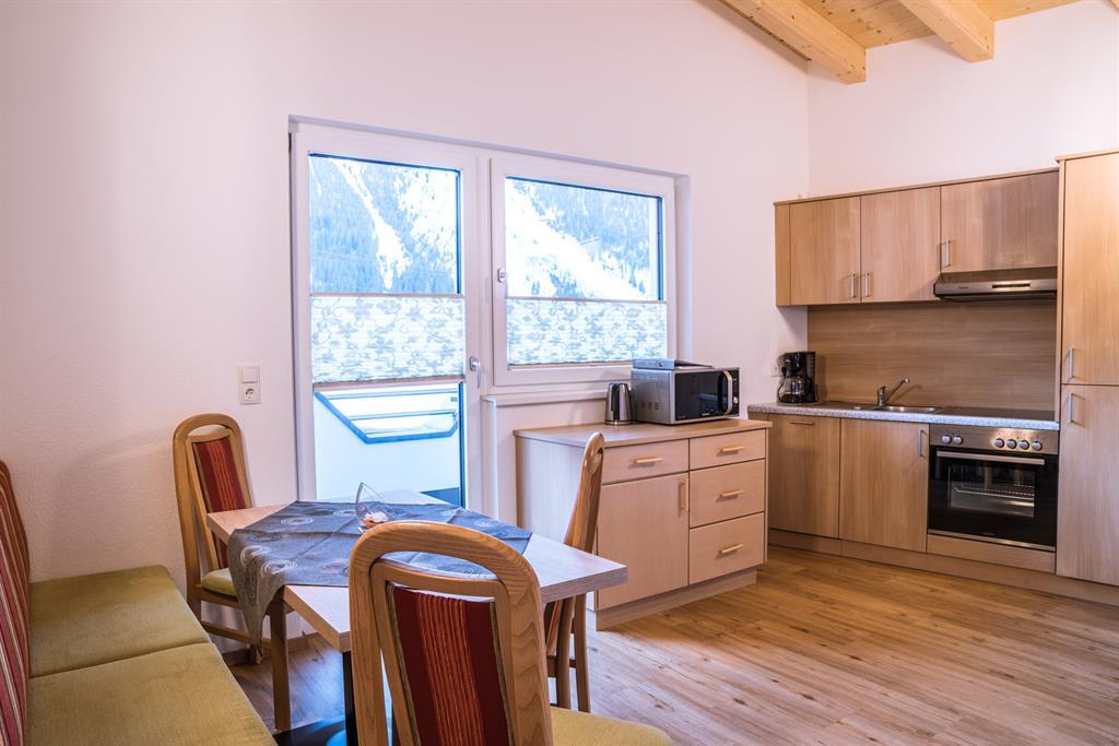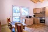 Ihr Appartement Edelweiß mit eigenem Eingang besteht aus 2 Doppelzimmern jeweils mit Flat-TV, 1 Badezimmer mit Dusche/WC und 1 Wohnküche mit Sitzecke und Balkon zum Entspannen. Die Küche ist ausgestattet mit Herd, Geschirspülmaschine, Kühlschrank/Gefrierfach, Mikrowelle, Wasserkocher, Toaster und Kapsel-Kaffeemaschine - Kapseln sind vor Ort gegen Gebühr erhältlich. Die Wohnung im ländlich-modernen Stil mit Parkettboden ist ca. 50 m² groß.