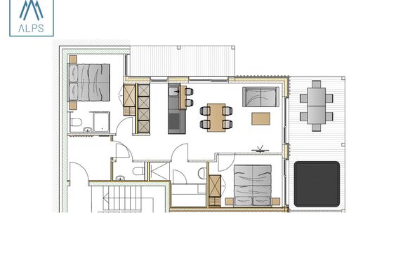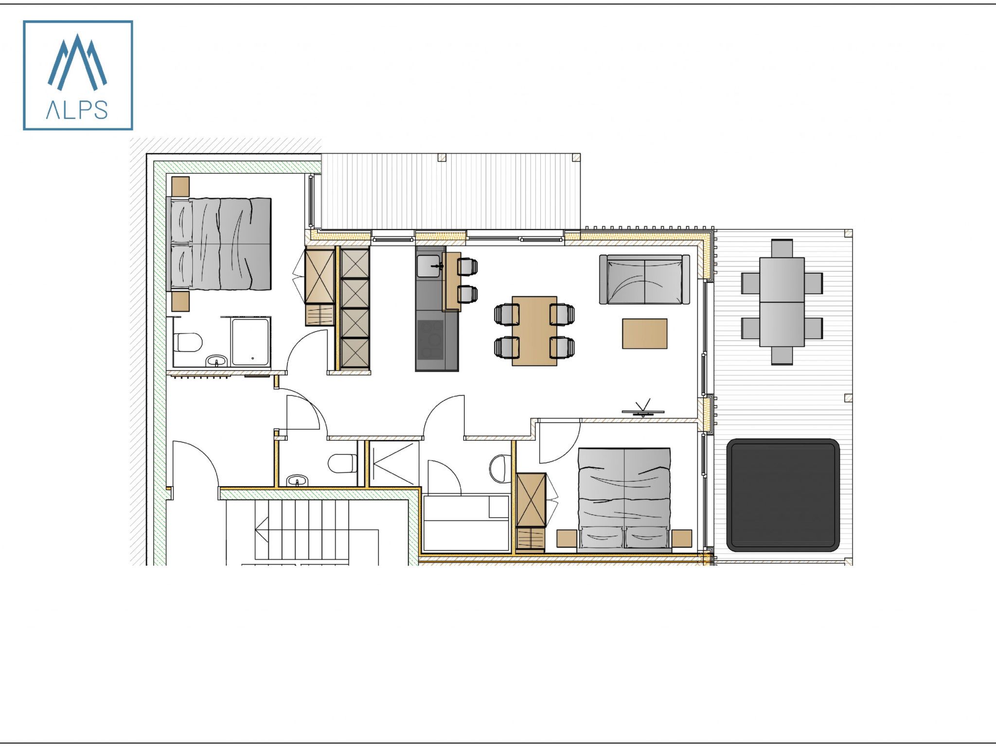 Premium mit Sauna & Außenbadewanne, 3-Zimmer-Wohnung 65 m2. Hell, komfortabel und geschmackvoll eingerichtet: 1 Doppelzimmer mit Dusche/WC. 1 Doppelzimmer. Wohn-/Esszimmer mit Esstisch, Sat-TV und Flachbildschirm. Offene Küche (Backofen, Geschirrspüler, 4 Glaskeramikplatten, Toaster, Wasserkocher, Mikrowelle, elektrische Kaffeemaschine). Dusche, sep. WC, Sauna. Terrasse. Terrassenmöbel. Schöne Panoramasicht auf die Berge. Zur Verfügung: Internet (Wireless LAN, gratis). Bitte beachten: Nichtraucher-Unterkunft. Beim Mietobjekt handelt es sich um ein Typenhaus bzw. Um eine Typenwohnung. Das Appartment verfügt über ein privates Sprudelbad auf der Terrasse.