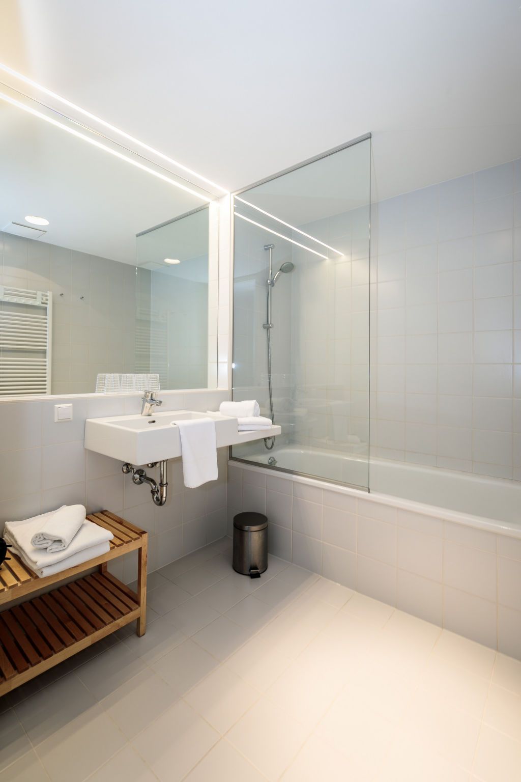mit 2 Schlafzimmern & Saunabereich, 3-Zimmer-Wohnung 59 bis 67 m2. Hell, modern eingerichtet: Eingang. Offenes Wohn-/Schlafzimmer mit 1 Doppeldiwanbett, Esstisch und Sat-TV (Flachbildschirm). 1 Doppelzimmer. 1 kleines Zimmer mit 1 Doppelbett, Sat-TV und Flachbildschirm. Offene Küche (Backofen, Geschirrspüler, 4 Glaskeramikplatten, Tiefkühler, elektrische Kaffeemaschine). Bad, sep. WC. Balkon. Balkonmöbel. Schöne Sicht auf die Berge und die Landschaft. Zur Verfügung: Internet (Wireless LAN, gratis). Bitte beachten: Nichtraucher-Unterkunft. Beim Mietobjekt handelt es sich um ein Typenhaus bzw. Um eine Typenwohnung. Sonderwünsche fragen Sie bitte gleich während der Buchung an! Eine spätere Berücksichtigung oder Umbuchung in ein anderes Objekt vor Ort kann nicht garantiert werden. Bei Belegung mit weniger Personen als der maximalen Personenzahl stehen nicht alle Wohneinheiten zur Verfügung.
