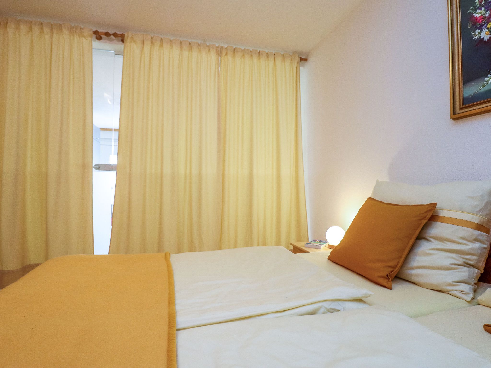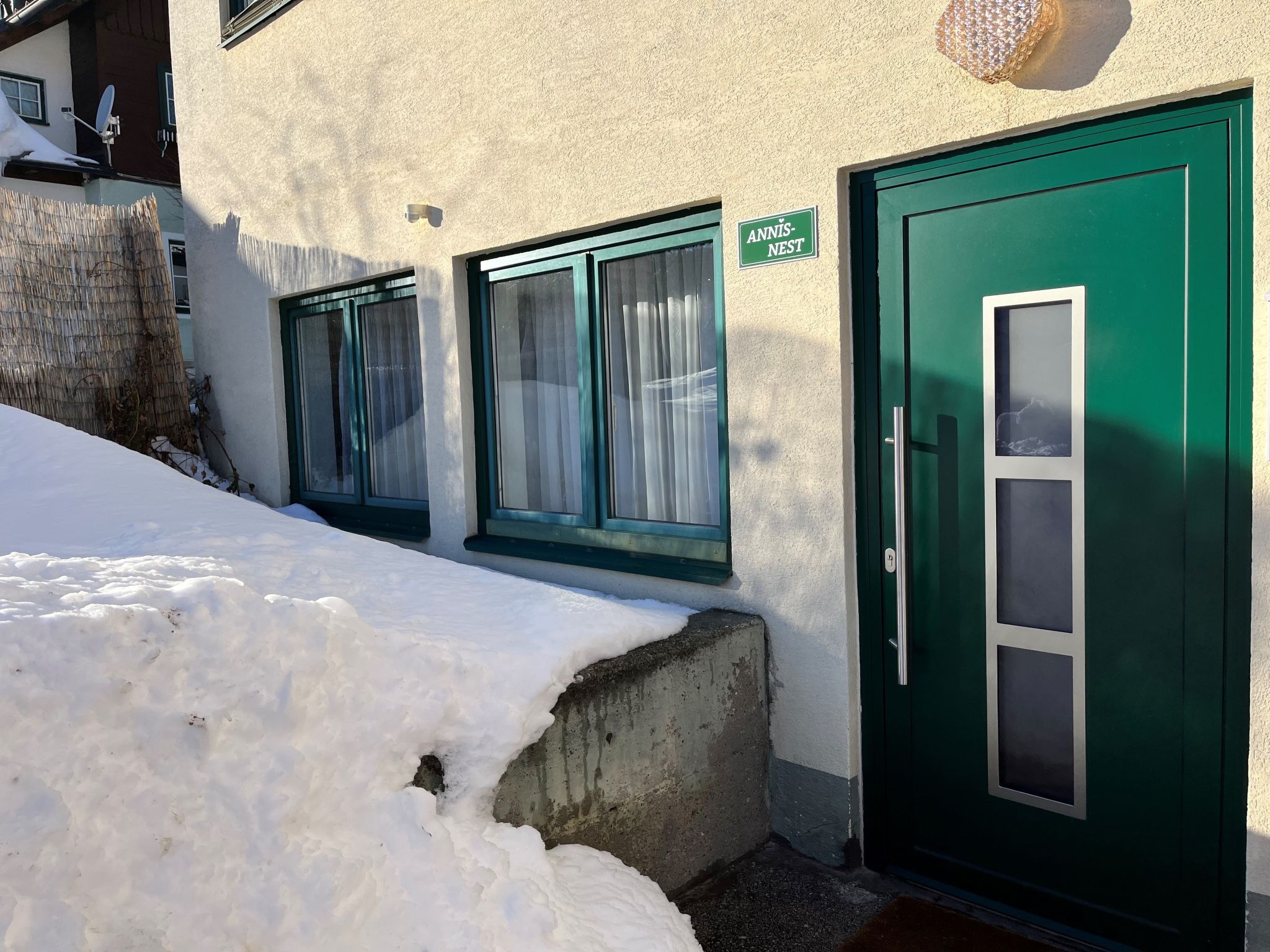 Annis Nest, 2-Zimmer-Wohnung 50 m2, im ebenerdigen Untergeschoss. Objekt geeignet für 2 Erwachsene + 2 Kinder. Geräumig, geschmackvoll und gemütlich eingerichtet: grosses Wohn-/Esszimmer mit 1 Doppeldiwanbett, Esstisch und Sat-TV (Flachbildschirm). 1 Doppelzimmer, Fenster zum Wohnzimmer mit Bad/WC. Offene Küche (4 Kochplatten, Backofen, Geschirrspüler, Tiefkühler, elektrische Kaffeemaschine, Kapseln für die Kaffeemaschine (Nespresso) extra). Kleine Terrasse. Terrassenmöbel. Zur Verfügung: Babybett bis 2 Jahre. Internet (Wireless LAN, gratis). Parkplatz (1 Auto) in 50 m. E-Ladestation. Bitte beachten: Wohnung auf Parkplatzseite. Nichtraucher-Unterkunft. Eigener Eingang, Rauchmelder.