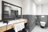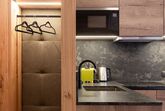 Ausstattung der Küche: Induktionskochfeld, Mikrowelle, Geschirrspüler, Kühlschrank mit Tiefkühlfach, Kaffeemaschine (Kapseln), Wasserkocher, usw. Nur auf Anfrage ein barrierefreies Appartement möglich.