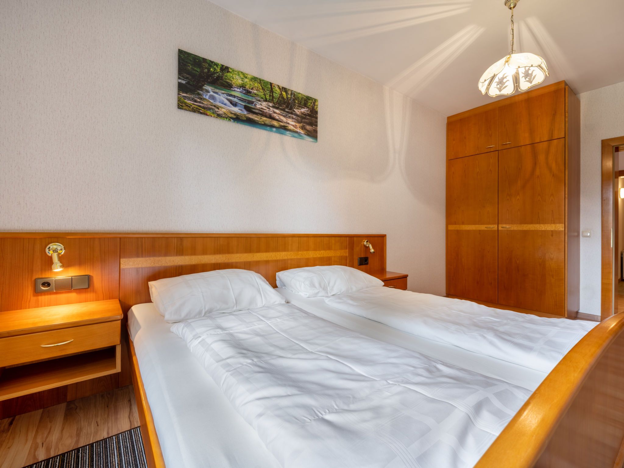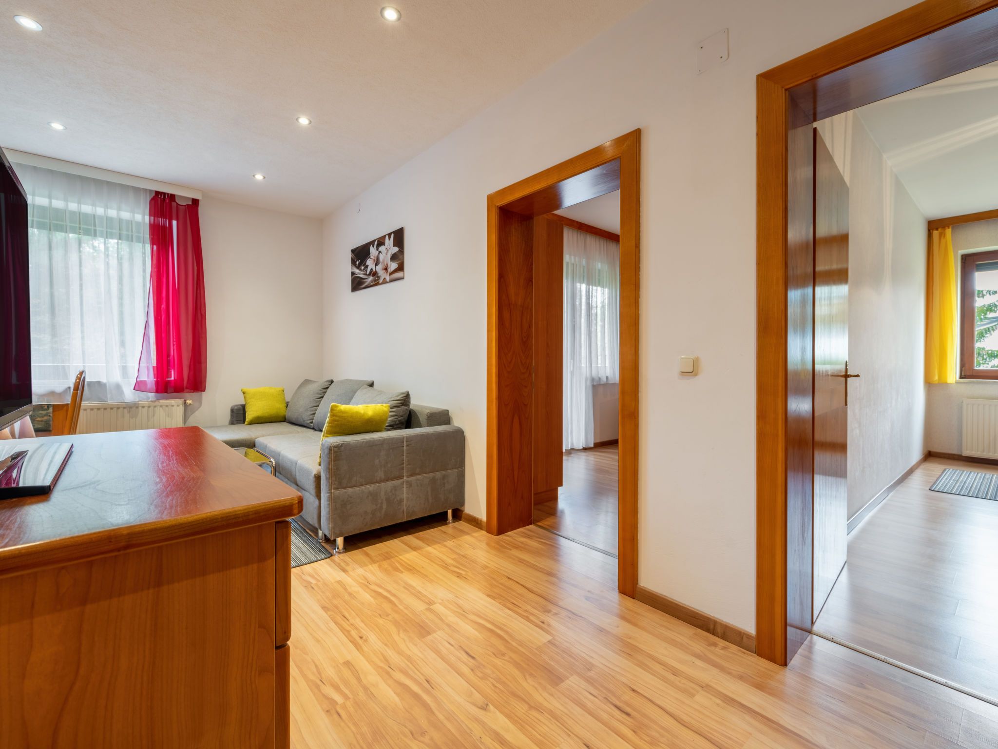 Kolm, 3-Zimmer-Wohnung 65 m2 im 1. Stock. Hell, gemütlich und mit viel Holz eingerichtet: Eingang. Wohn-/Esszimmer mit Essecke und Sat-TV. 1 Doppelzimmer. 1 Doppelzimmer. Ausgang zum Balkon. Offene Küche (2 Kochplatten, Backofen, Geschirrspüler, Mikrowelle, elektrische Kaffeemaschine). Dusche, sep. WC. Balkon. Balkonmöbel. Zur Verfügung: Haartrockner. Internet (Wireless LAN, gratis). Bitte beachten: Nichtraucher-Unterkunft. Rauchmelder, Feuerlöscher.