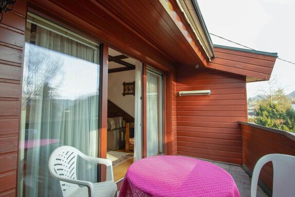 Zander, 2-Zimmer-Wohnung 40 m2, im Dachgeschoss. Objekt geeignet für 2 Erwachsene + 2 Kinder. Geräumig, teilweise abgeschrägt, schön und gemütlich eingerichtet: Eingang. Grosses Wohn-/Schlafzimmer mit 2 Diwanbetten, Esstisch und Sat-TV. Ausgang zum Balkon. 1 Doppelzimmer. Kochnische (4 Kochplatten, Backofen, Geschirrspüler, Mikrowelle, elektrische Kaffeemaschine). Dusche, sep. WC. Balkon. Balkonmöbel. Sicht auf die Landschaft. Zur Verfügung: Internet (Wireless LAN, gratis). Bitte beachten: Nichtraucher-Unterkunft. Eigener Eingang, Rauchmelder.