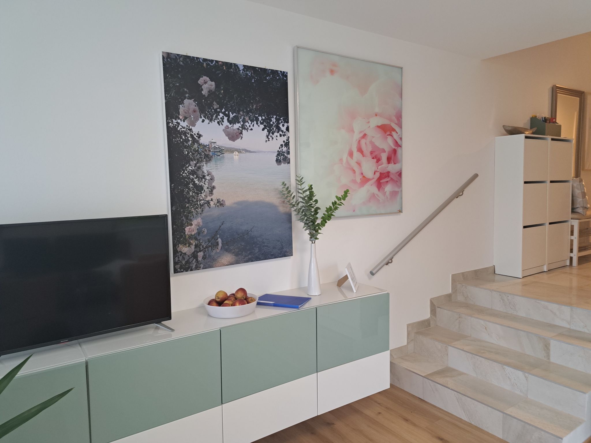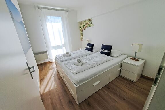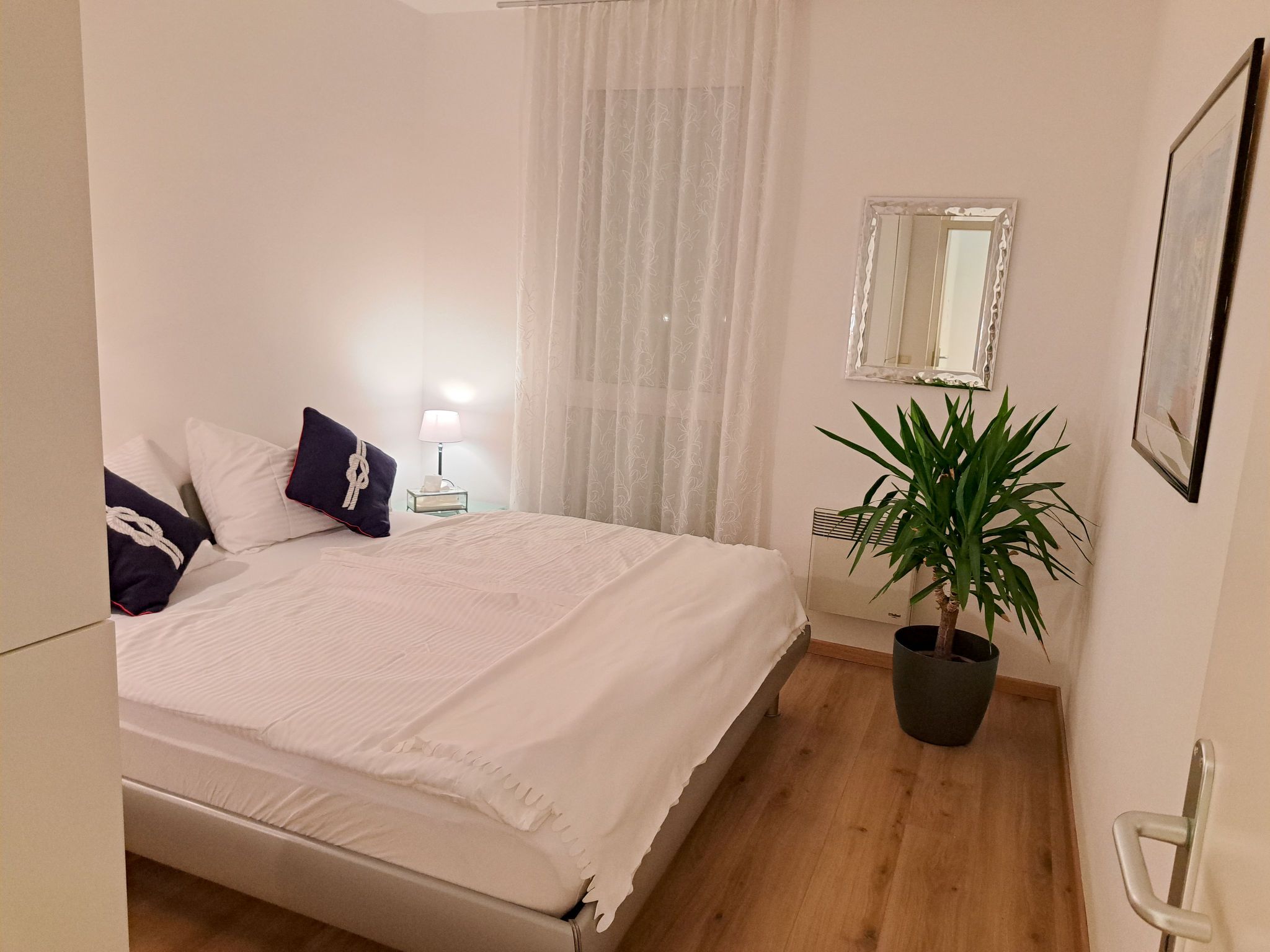 Vinzek, 3-Zimmer-Wohnung 60 m2. Hell, sehr schön eingerichtet: Wohn-/Esszimmer mit Bad/WC, Sat-TV und E-Heizung. Ausgang zur Terrasse. 2 Doppelzimmer. Offene Küche (Geschirrspüler, 4 Glaskeramikplatten, Toaster, Wasserkocher, Mikrowelle, elektrische Kaffeemaschine). Parkettboden. Terrasse, Südlage. Terrassenmöbel, Elektrogrill. Sehr schöne Panoramasicht auf den See. Zur Verfügung: Waschmaschine. Internet (Wireless LAN). Parkplatz (1 Auto) beim Haus. Bitte beachten: Nichtraucher-Unterkunft. Rauchmelder.