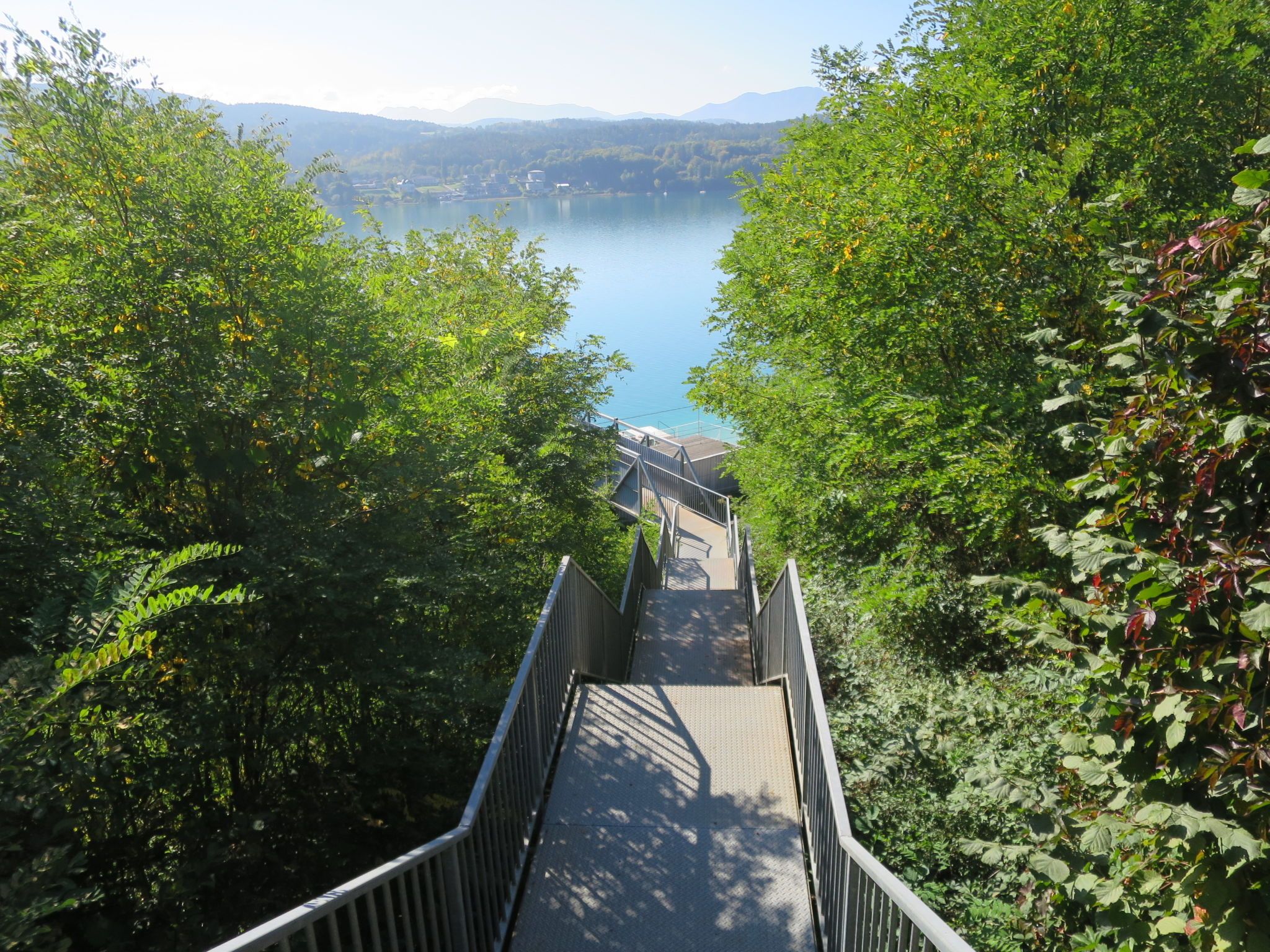 Töschling 2 km von Pörtschach: Residenz Appartement Vinzek, auf 4 Stockwerken. 24 Wohnungen in der Residenz. Im Ortsteil Töschling, erhöhte Lage, 250 m vom See, direkter Zugang zum Strand, Richtung Süden. Zur Mitbenutzung: Liegewiese. Privatstrand, Parkplatz beim Haus. Supermarkt 700 m, Restaurant 400 m, Bushaltestelle Töschling 300 m, Bahnstation Töschling 400 m. Nahe gelegene Sehenswürdigkeiten: Minimundus 14 km, Pyramidenkogel 24 km, Reptilienzoo Happ 14 km. Bekannte Skigebiete sind gut erreichbar: Gerlitzen 35 km. Bekannte Seen in der Umgebung sind gut erreichbar: Wörthersee 250 m. Bitte beachten: Eisenbahnlinie 150 m vom Haus.
