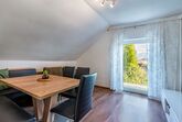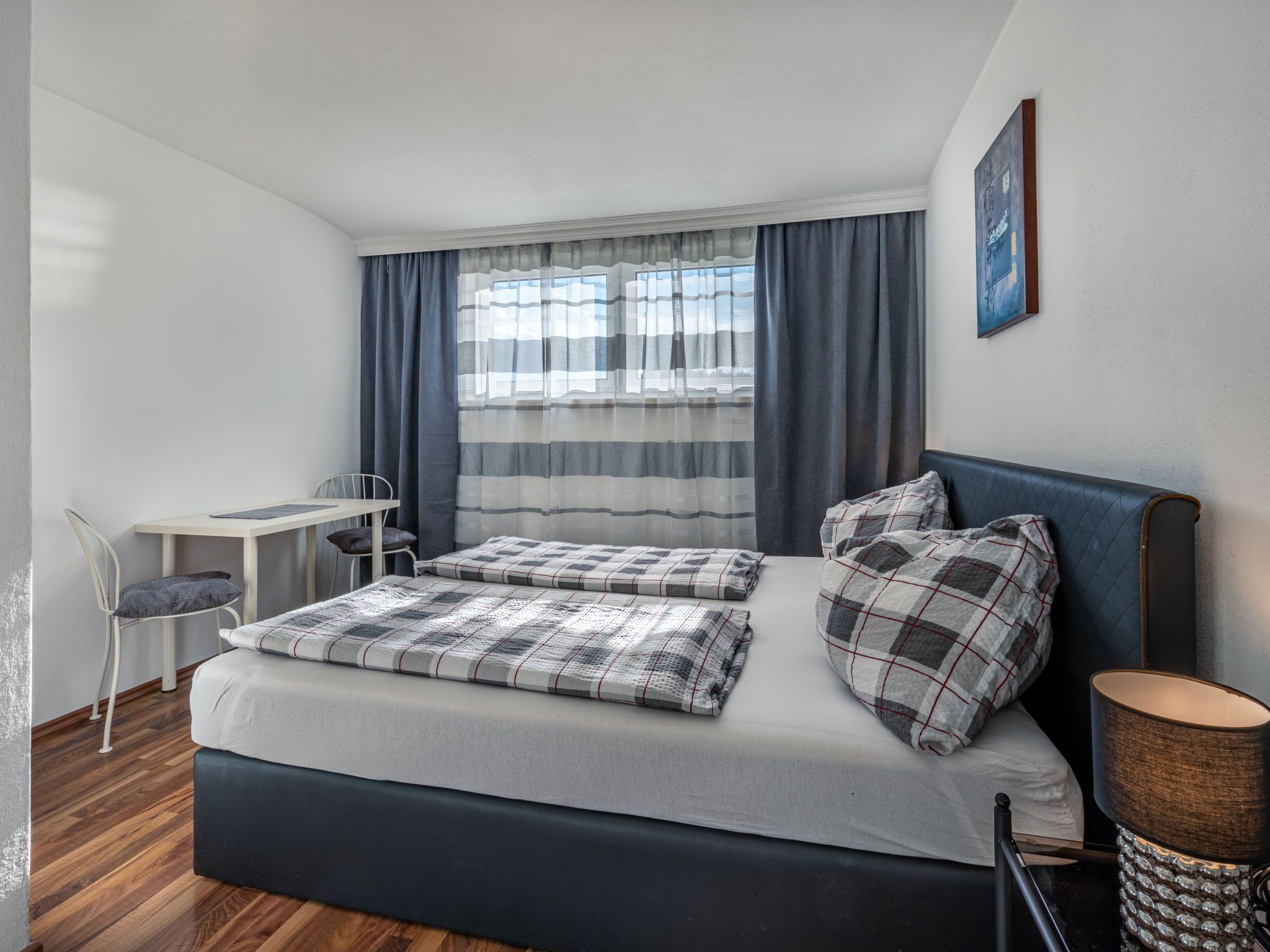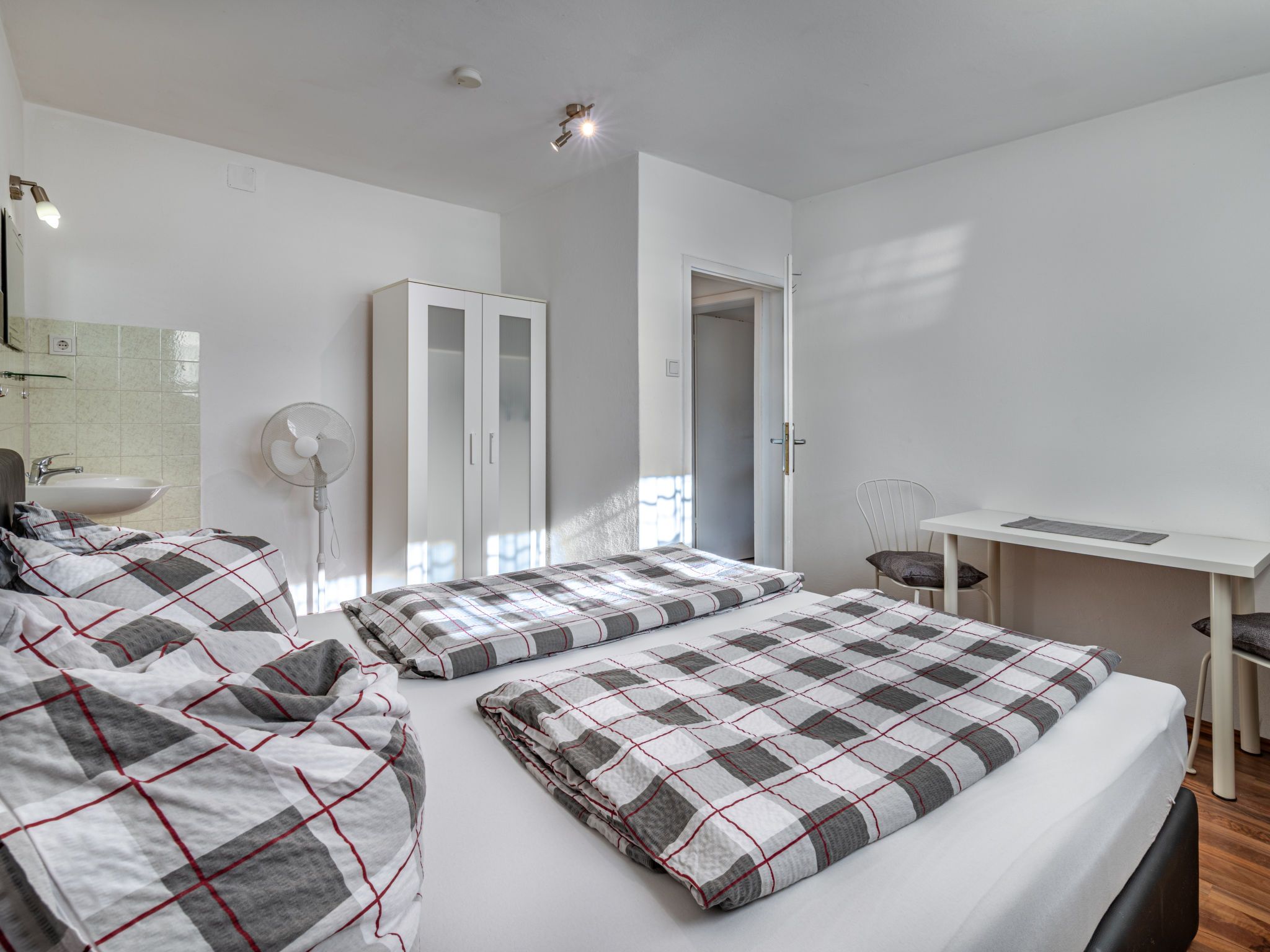 4-Zimmer-Wohnung 80 m2 im 2. Stock. Renoviert im Jahre 2014: Wohn-/Esszimmer abgeschrägtes mit Sat-TV (Flachbildschirm). Ausgang zum Balkon. Abgeschrägt 2 Doppelzimmer, jedes Zimmer mit Waschbecken. Abgeschrägt 1 Doppelzimmer mit Waschbecken. Ausgang zum Balkon. Küche (4 Kochplatten, Backofen, Mikrowelle). Dusche, sep. WC. Balkon 6 m2. Zur Verfügung: Internet (Wireless LAN, gratis). Bitte beachten: Kühlschrank ohne Gefrierfach. Maximal 1 Haustier/Hund erlaubt. Rauchmelder.