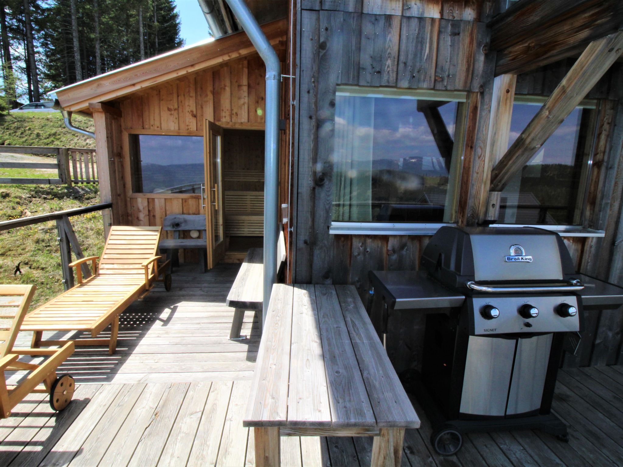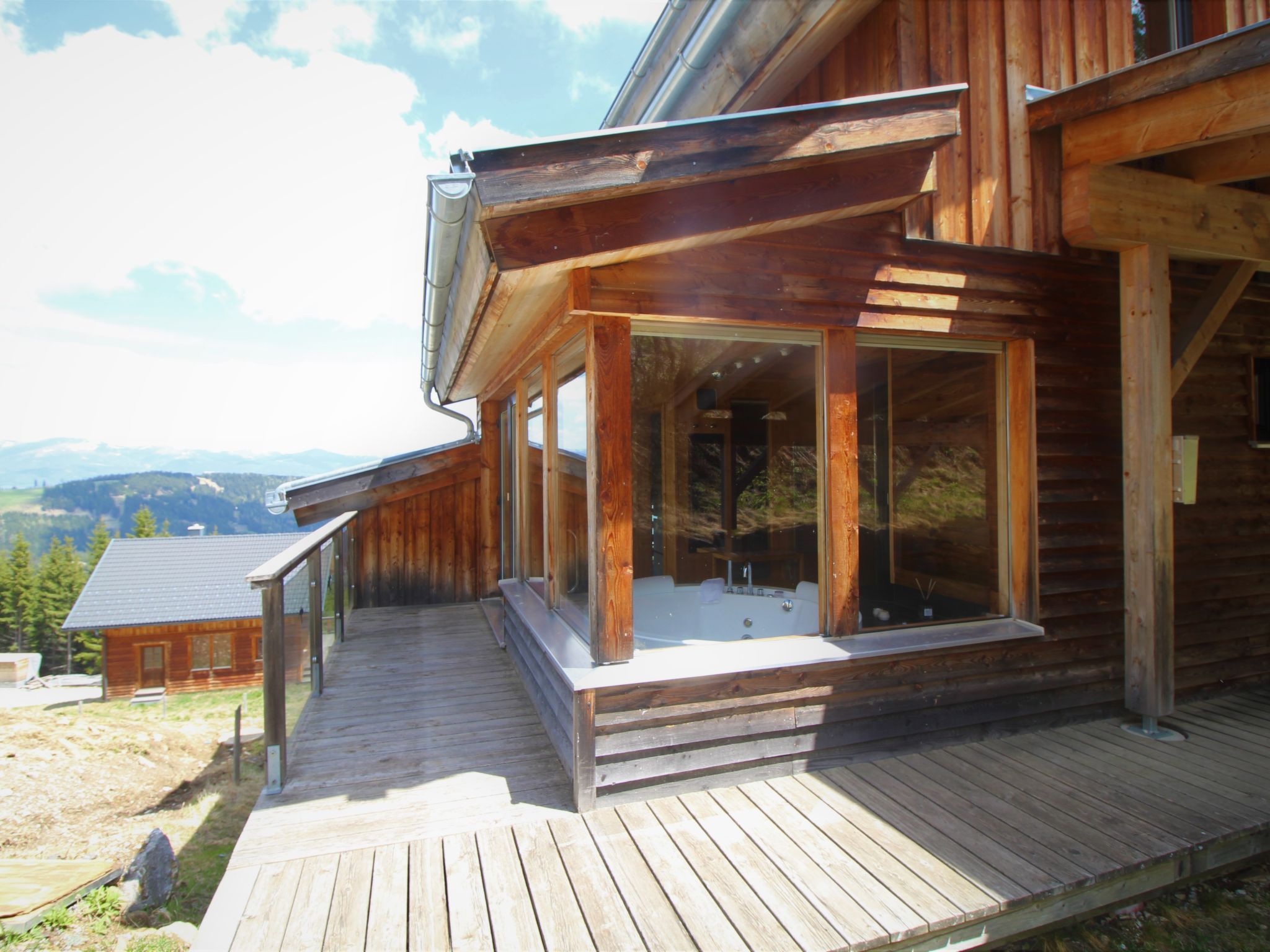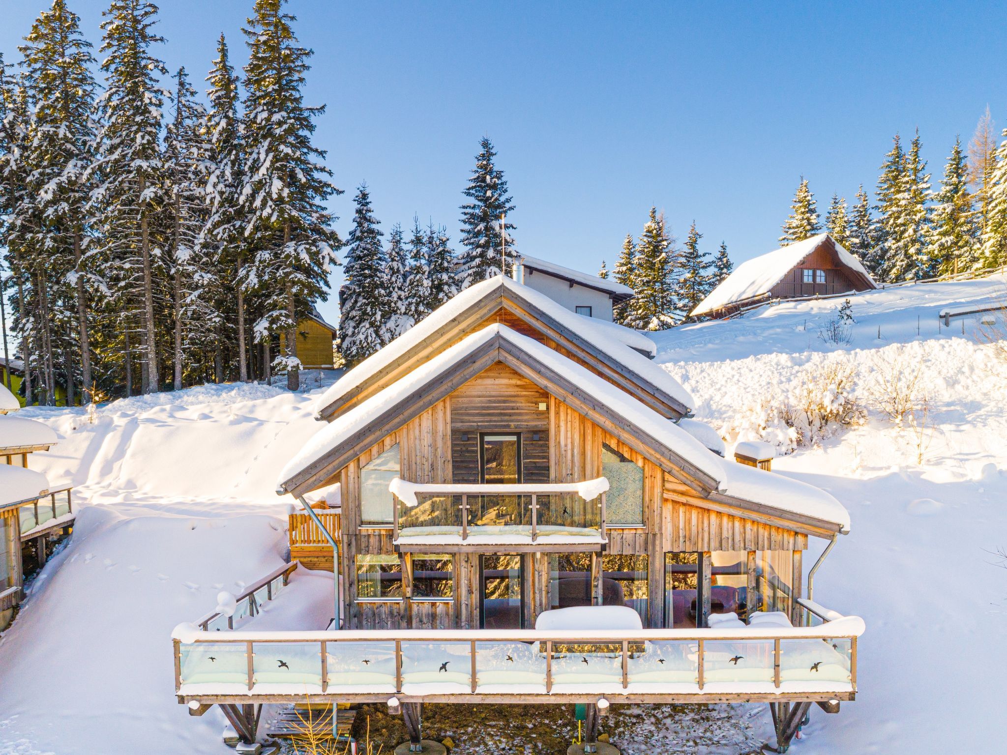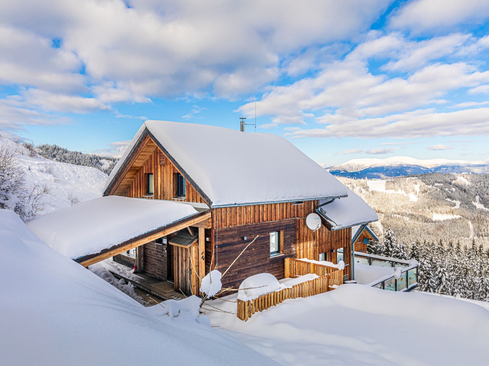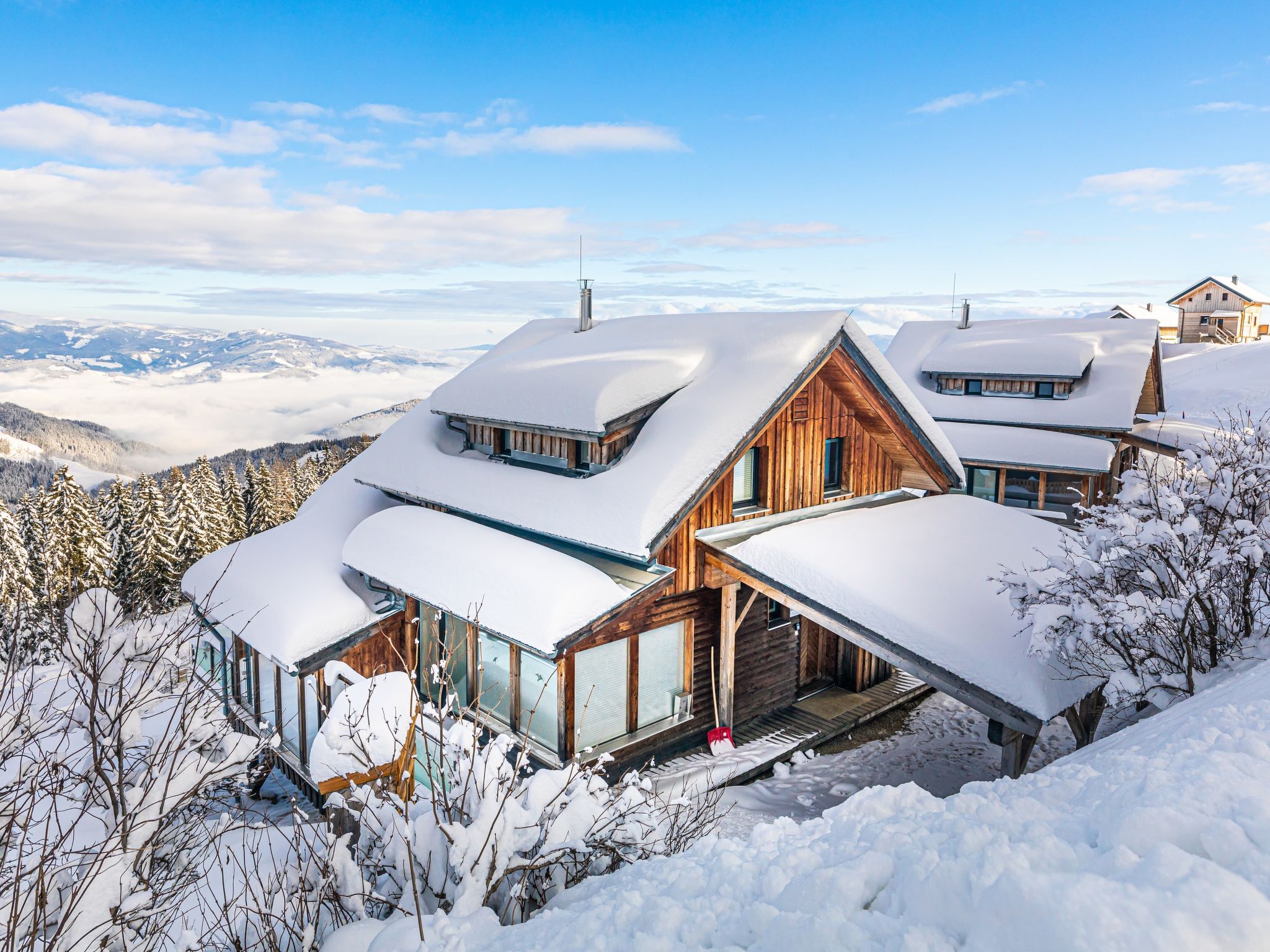 Klippitztörl: Grosses, luxuriöses Chalet Panorama, 1'600 m.ü.M., auf 4 Stockwerken. Im Ortsteil Kliening, sonnige Lage am Hang, 600 m vom Skigebiet. Zur Alleinbenutzung: naturbelassenes Grundstück. Im Hause: mit TV, Wireless LAN, Sauna (alles inkl.), Sonnenterrasse, Skiraum, Zentralheizung, Waschmaschine, Wäschetrockner, Skischuhtrockner. Holprige Zufahrt bis zum Haus (1 km Naturweg). Im Winter bitte Schneeketten mitbringen. Parkplatz (überdacht) beim Haus. Lebensmittelgeschäft 15 km, Restaurant 1 km, Bushaltestelle Bad St. Leonhard Moosweg (West) 15 km, See Längssee 35 km. Wanderwege ab Haus 10 m, Sessellift 600 m, Skipisten 300 m, Skiverleih 300 m, Skischule 2 km, Schlittelbahn 2 km. Nahe gelegene Sehenswürdigkeiten: Sommerrodelbahn Klippitztörl 2 km, Klettergarten 2 km. Bekannte Seen in der Umgebung sind gut erreichbar: Längssee 35 km, Klopeinersee 60 km. Wandergebiete: Koralm, Saualm, Lavantaler Alpen. Bitte beachten: Fahrzeug empfohlen. Bei guter Schneelage Zufahrt mit den Skiern bis zum Haus. Selbstbedienungsautomat für Verpflegung und Dinge des täglichen Bedarfs in 500m. Laut Auskunft des Providers kann der WLAN-Empfang aufgrund der geografischen Lage am Berg nicht durchgehend gewährleistet werden und ist stark witterungsabhängig.