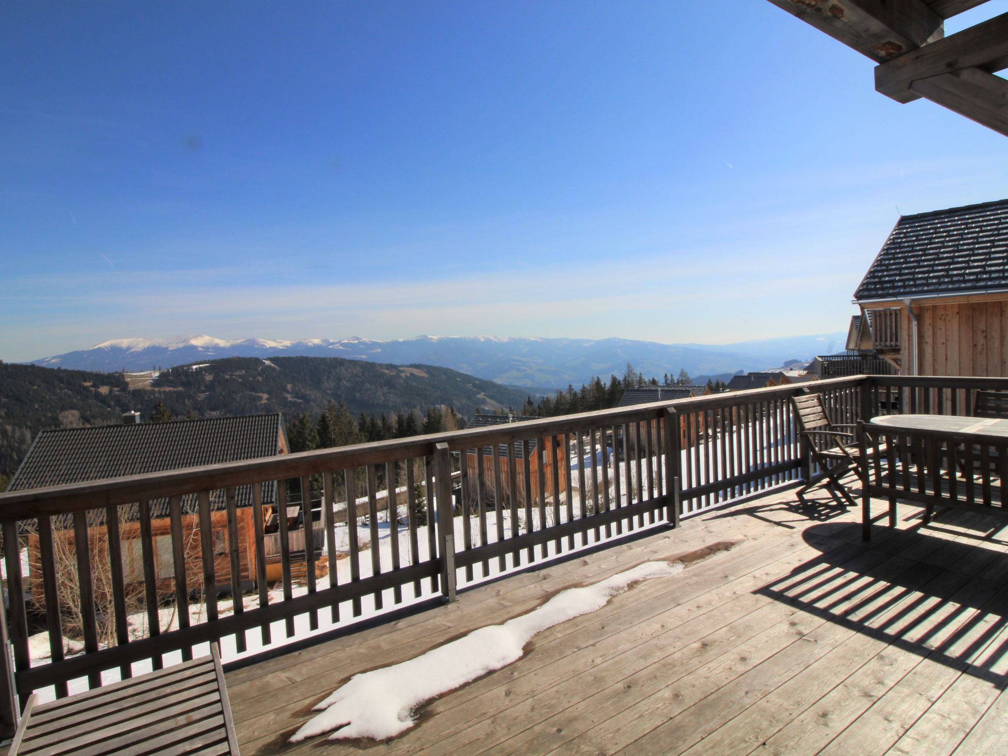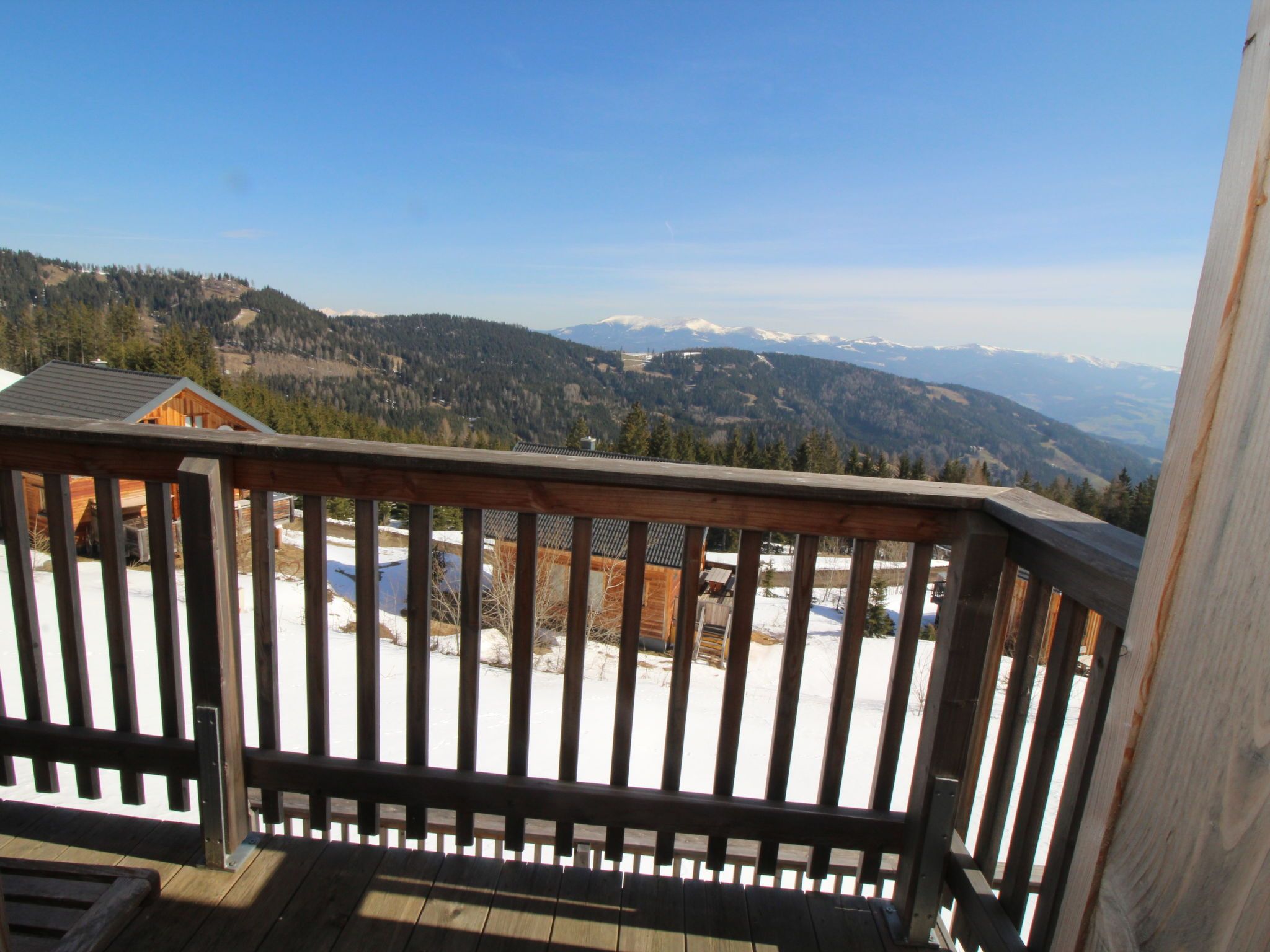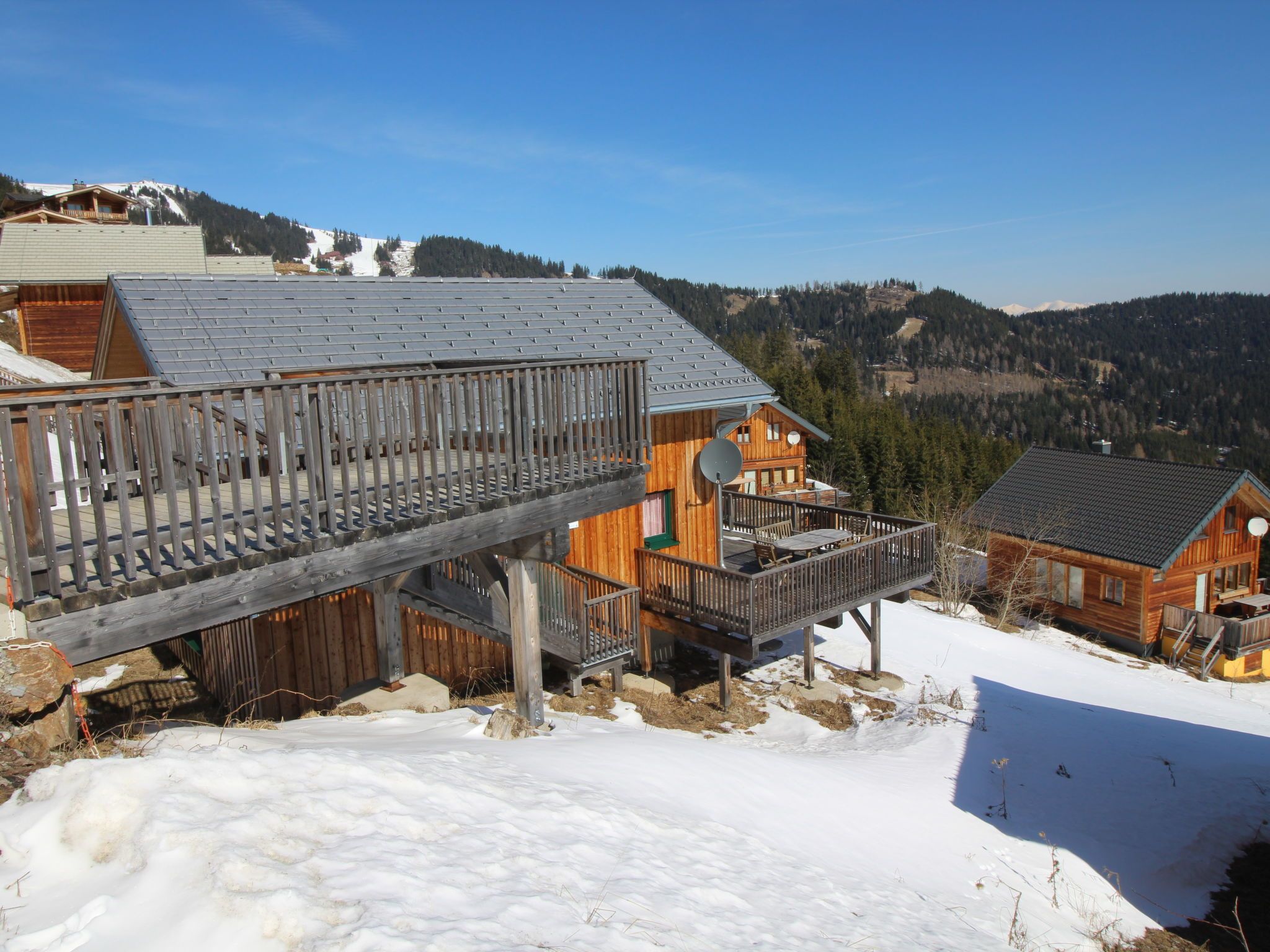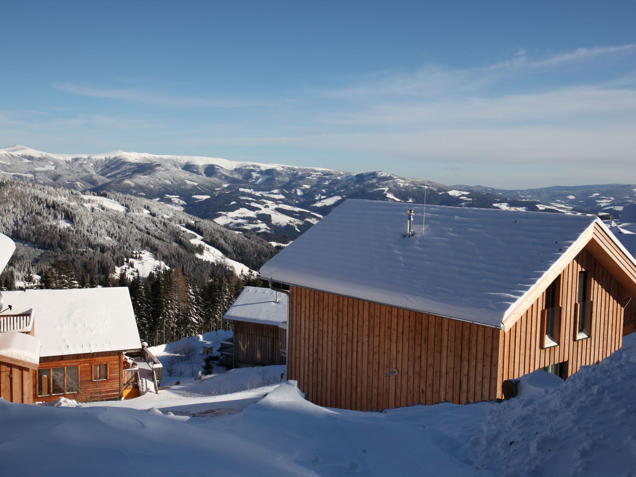 5-Zimmer-Chalet 100 m2. Teilweise abgeschrägt, komfortabel und gemütlich eingerichtet: Eingang. Wohn-/Esszimmer mit Schwedenofen, Esstisch und Sat-TV. Ausgang zur Terrasse. Offene Küche (Backofen, Geschirrspüler, 4 Glaskeramikplatten, Wasserkocher, Mikrowelle, Tiefkühler, elektrische Kaffeemaschine, Kapseln für die Kaffeemaschine (Dolce Gusto) extra). Dusche/WC, Hydromassage-Dusche. Dachgeschoss: 2 Doppelzimmer. Ausgang zum Balkon. 1 Zimmer mit 1 Doppelbett. 1 Zimmer mit 2 Betten. Dusche/WC, Hydromassage-Dusche, Sauna. E-Heizung. Kleiner Balkon, Terrasse. Terrassenmöbel. Herrliche Panoramasicht auf die Berge und die Landschaft. Zur Verfügung: Kinderhochstuhl, Babybett bis 2 Jahre, Haartrockner. Bitte beachten: Nichtraucher-Haus. Feuerlöscher. Das Objekt AT9462.101.1 liegt unmittelbar daneben und ist beinahe identisch ausgestattet.