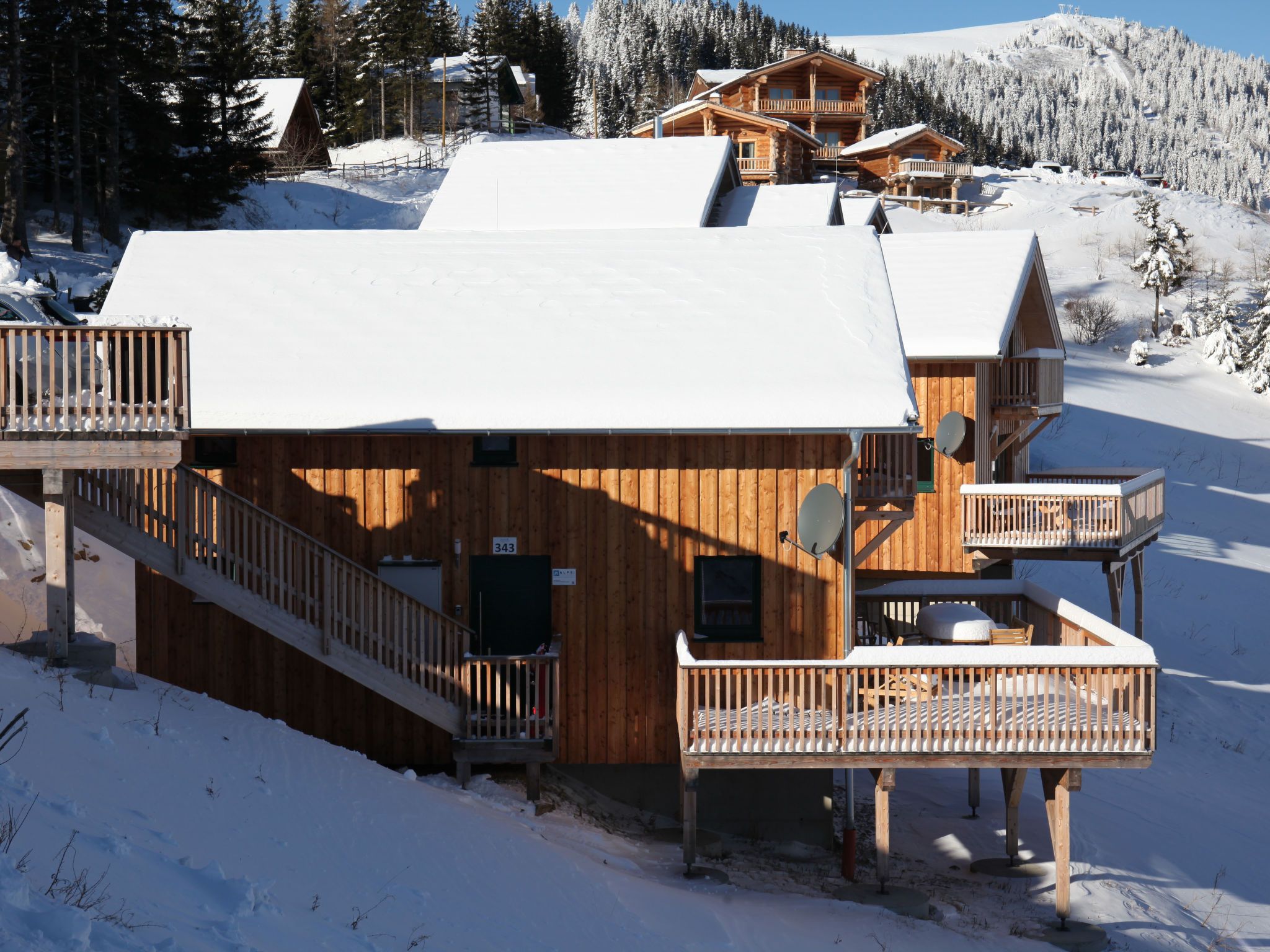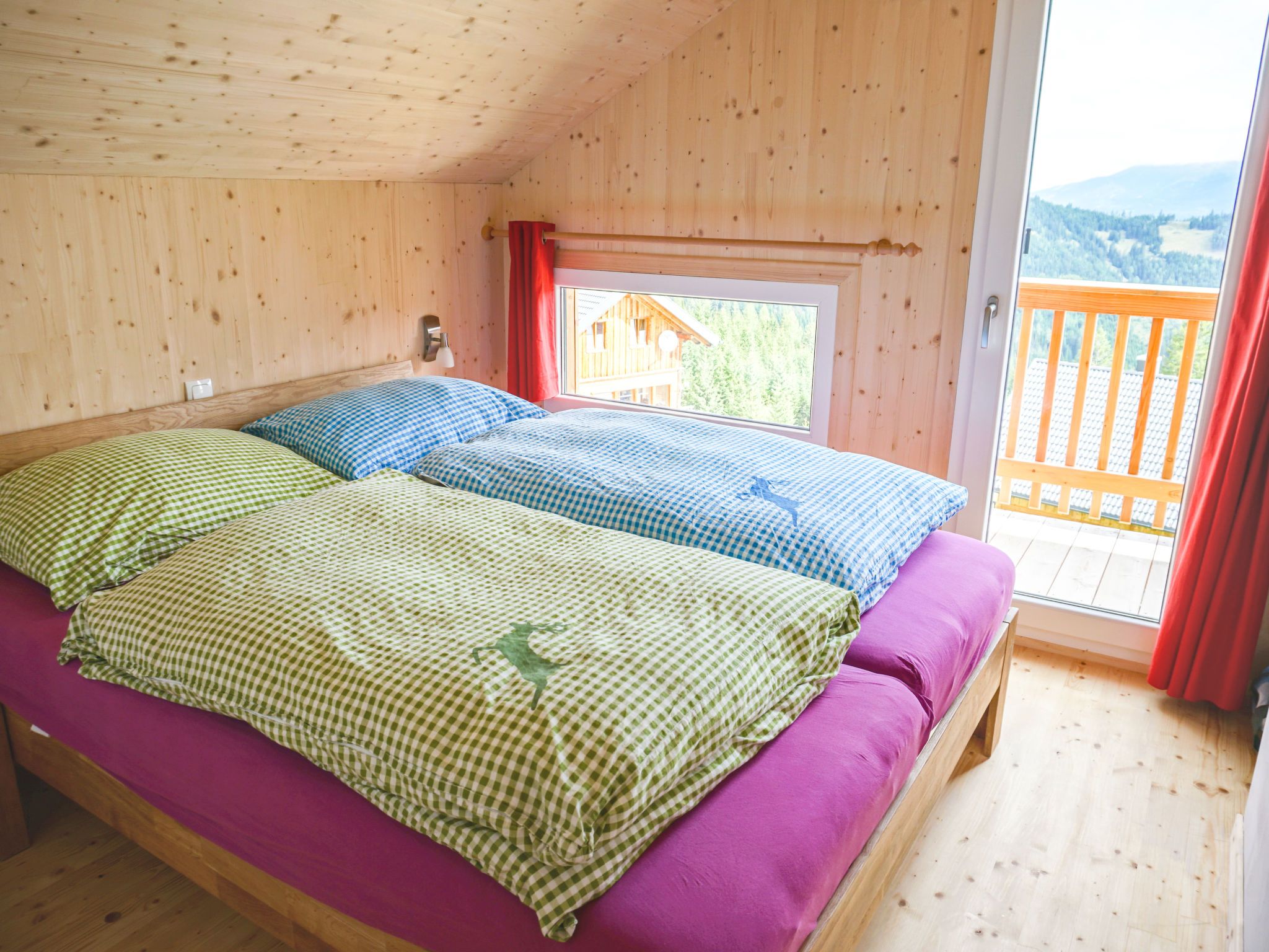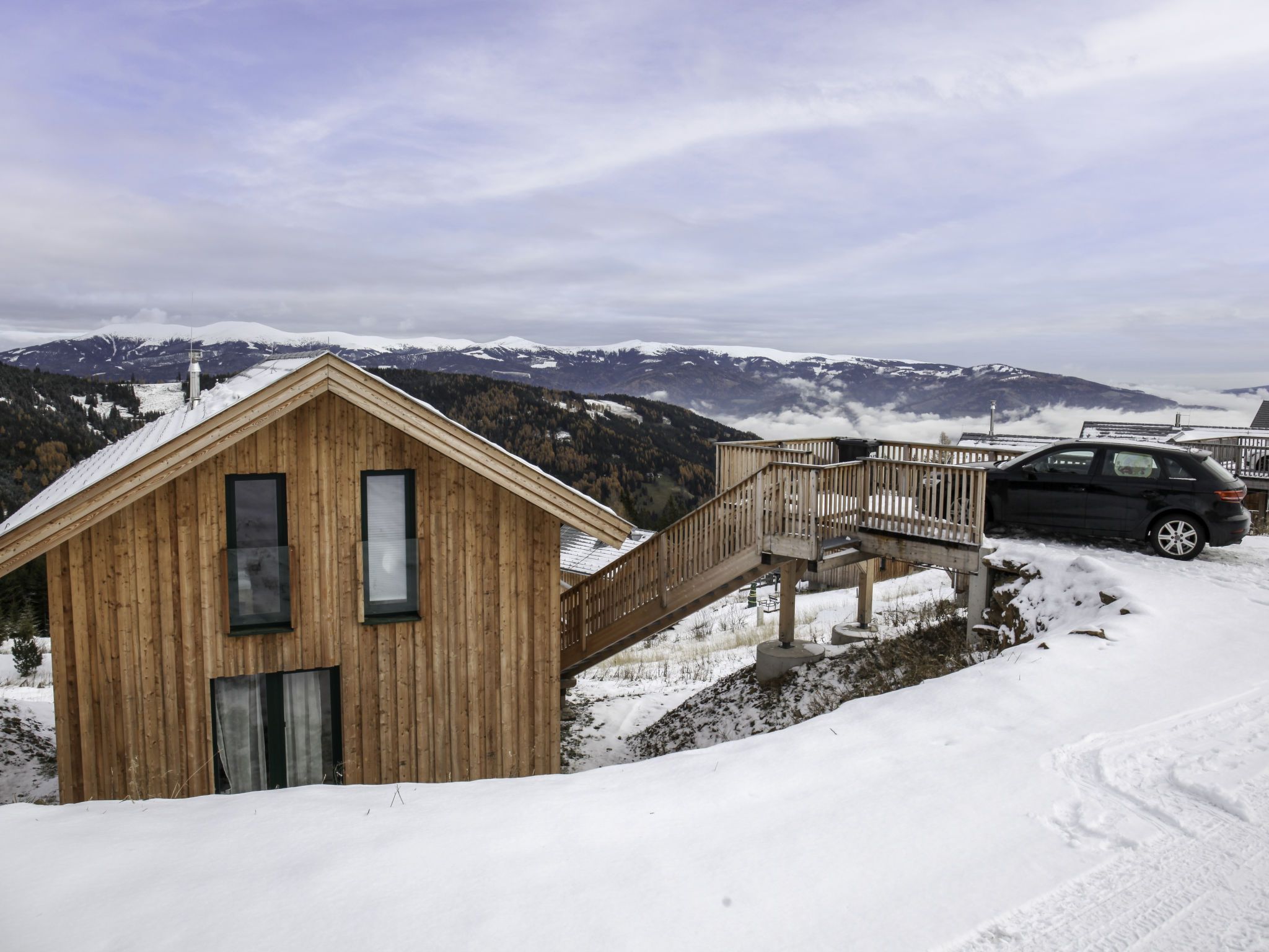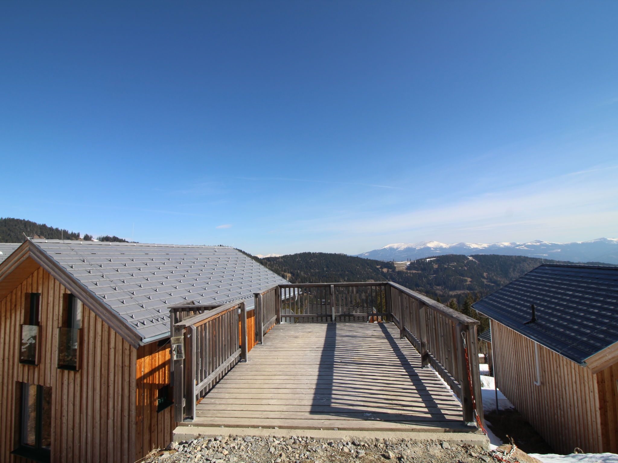 5-Zimmer-Chalet 100 m2. Teilweise abgeschrägt, komfortabel und gemütlich eingerichtet: Eingang. Wohn-/Esszimmer mit Schwedenofen, Esstisch und Sat-TV. Ausgang zur Terrasse. Offene Küche (Backofen, Geschirrspüler, 4 Glaskeramikplatten, Wasserkocher, Mikrowelle, Tiefkühler, elektrische Kaffeemaschine, Kapseln für die Kaffeemaschine (Dolce Gusto) extra). Dusche/WC, Hydromassage-Dusche. Dachgeschoss: 2 Doppelzimmer. Ausgang zum Balkon. 1 Zimmer mit 1 Doppelbett. 1 Zimmer mit 2 Betten. Dusche/WC, Hydromassage-Dusche, Sauna. E-Heizung. Kleiner Balkon, Terrasse. Terrassenmöbel. Herrliche Panoramasicht auf die Berge und die Landschaft. Zur Verfügung: Kinderhochstuhl, Babybett bis 2 Jahre, Haartrockner. Bitte beachten: Nichtraucher-Haus. Feuerlöscher. Das Objekt AT9462.101.1 liegt unmittelbar daneben und ist beinahe identisch ausgestattet.