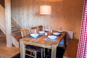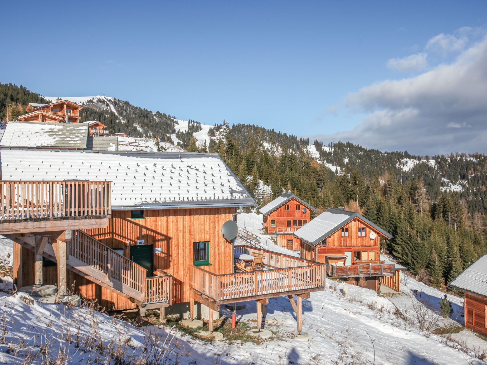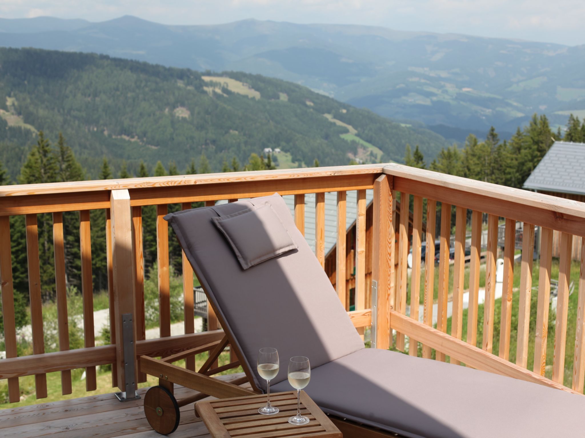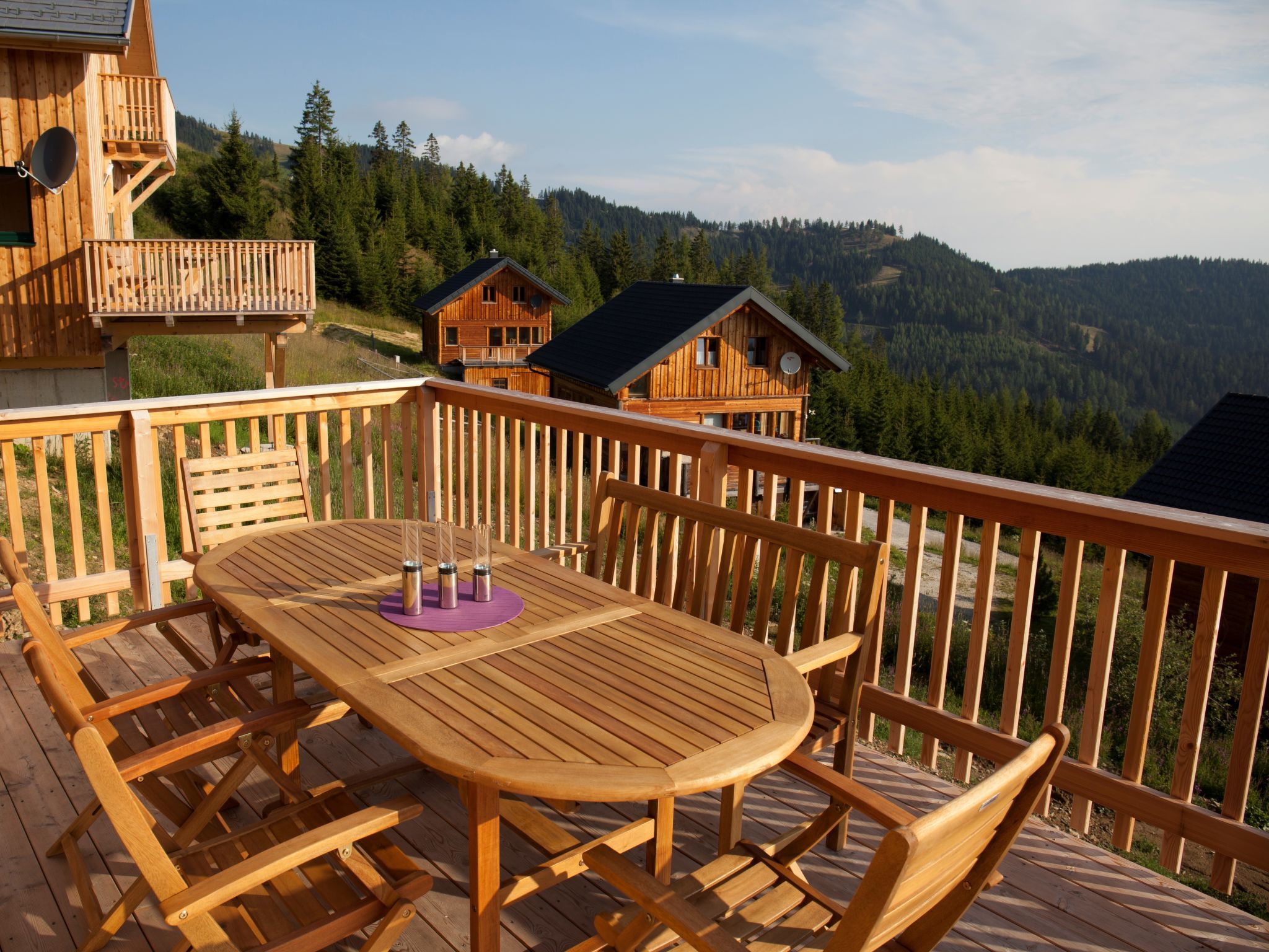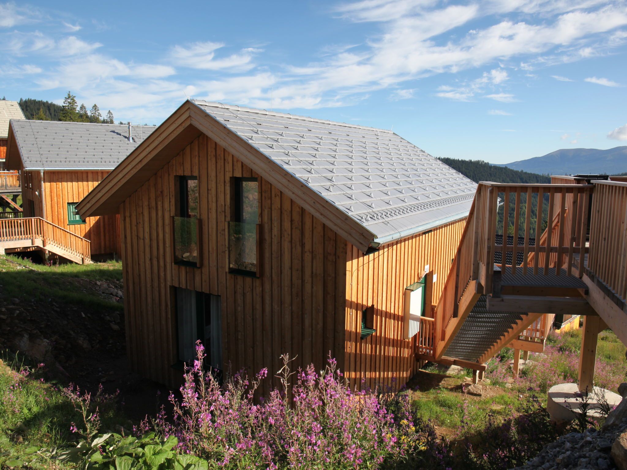 5-Zimmer-Chalet 100 m2. Teilweise abgeschrägt, komfortabel und gemütlich eingerichtet: Eingang. Wohn-/Esszimmer mit Schwedenofen, Esstisch und Sat-TV. Ausgang zur Terrasse. Offene Küche (Backofen, Geschirrspüler, 4 Glaskeramikplatten, Wasserkocher, Mikrowelle, Tiefkühler, elektrische Kaffeemaschine, Kapseln für die Kaffeemaschine (Dolce Gusto) extra). Dusche/WC, Hydromassage-Dusche. Dachgeschoss: 2 Doppelzimmer. Ausgang zum Balkon. 1 Zimmer mit 1 Doppelbett. 1 Zimmer mit 2 Betten. Dusche/WC, Hydromassage-Dusche, Sauna. E-Heizung. Kleiner Balkon, Terrasse. Terrassenmöbel. Herrliche Panoramasicht auf die Berge und die Landschaft. Zur Verfügung: Kinderhochstuhl, Babybett bis 2 Jahre, Haartrockner. Bitte beachten: Nichtraucher-Haus. Feuerlöscher. Das Objekt AT9462.101.1 liegt unmittelbar daneben und ist beinahe identisch ausgestattet.