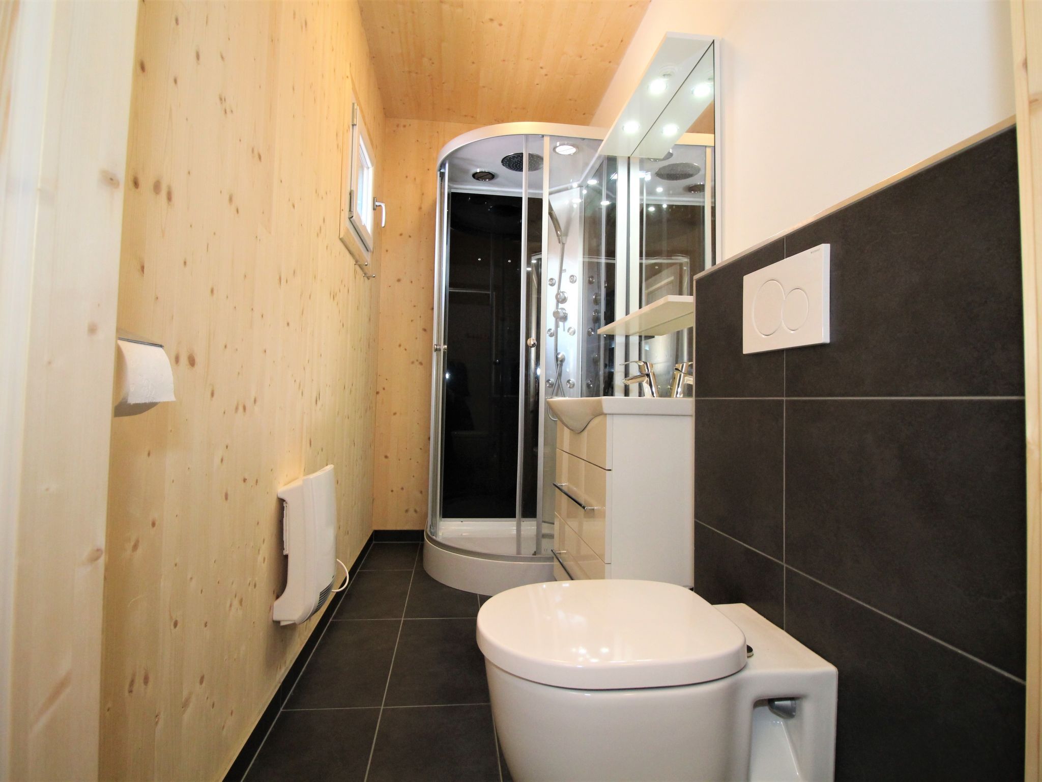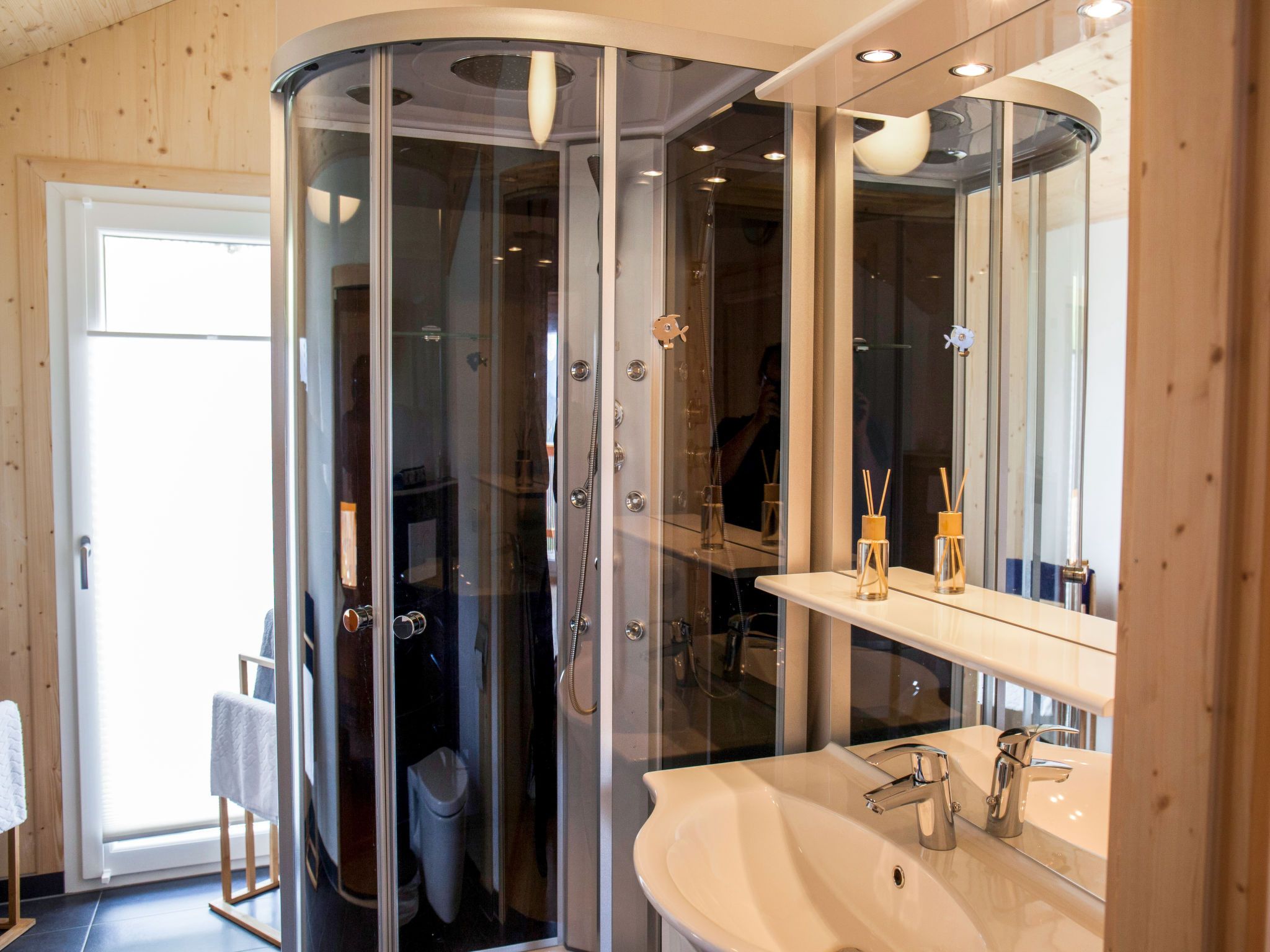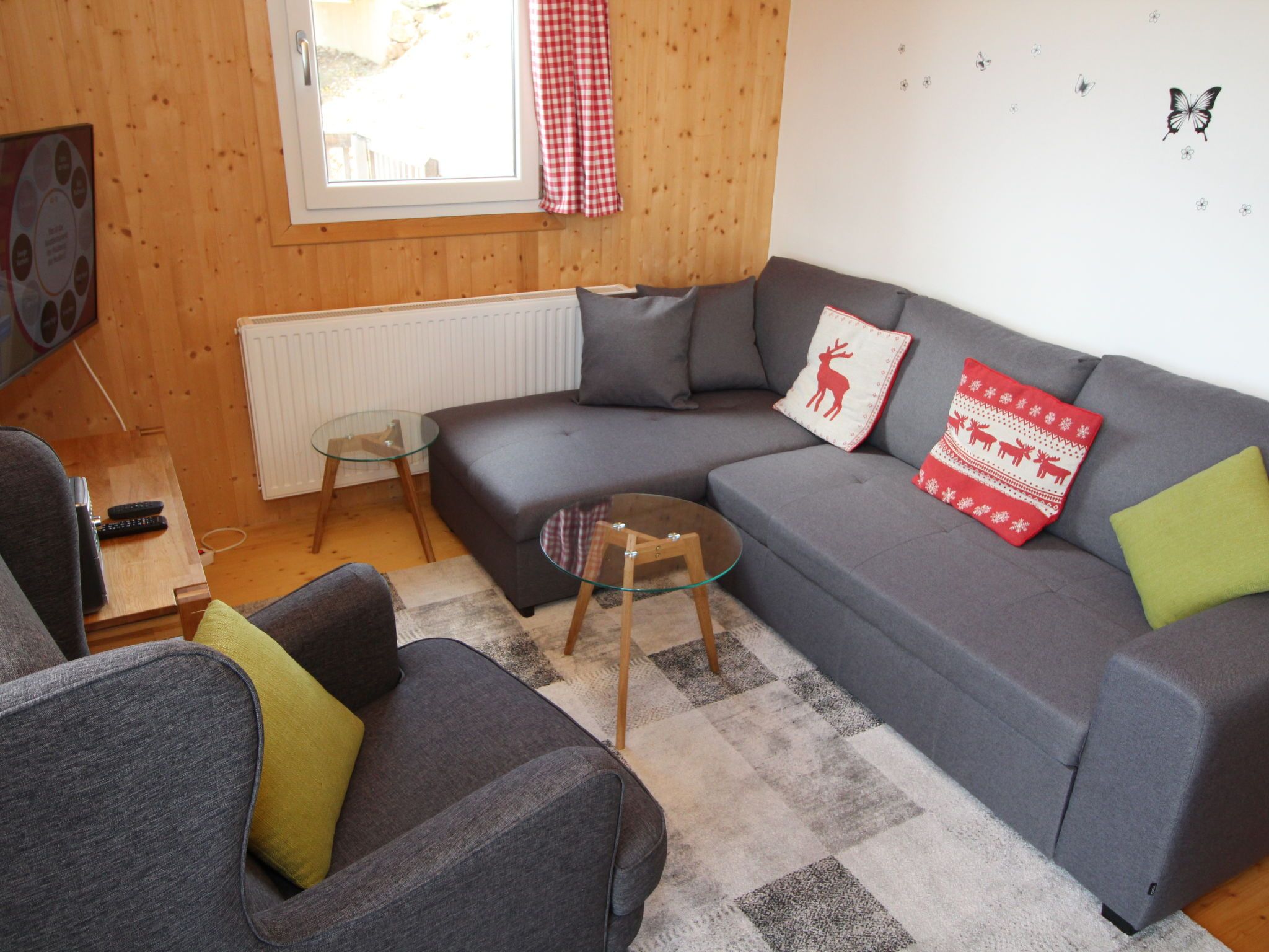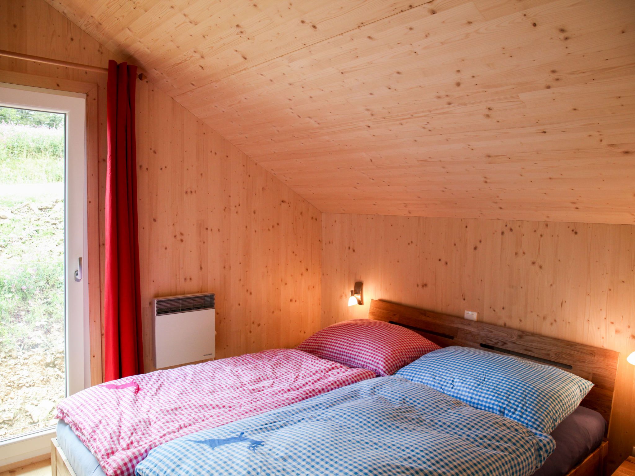 5-Zimmer-Chalet 100 m2. Teilweise abgeschrägt, komfortabel und gemütlich eingerichtet: Eingang. Wohn-/Esszimmer mit Schwedenofen, Esstisch und Sat-TV. Ausgang zur Terrasse. Offene Küche (Backofen, Geschirrspüler, 4 Glaskeramikplatten, Wasserkocher, Mikrowelle, Tiefkühler, elektrische Kaffeemaschine, Kapseln für die Kaffeemaschine (Dolce Gusto) extra). Dusche/WC, Hydromassage-Dusche. Dachgeschoss: 2 Doppelzimmer. Ausgang zum Balkon. 1 Zimmer mit 1 Doppelbett. 1 Zimmer mit 2 Betten. Dusche/WC, Hydromassage-Dusche, Sauna. E-Heizung. Kleiner Balkon, Terrasse. Terrassenmöbel. Herrliche Panoramasicht auf die Berge und die Landschaft. Zur Verfügung: Kinderhochstuhl, Babybett bis 2 Jahre, Haartrockner. Bitte beachten: Nichtraucher-Haus. Feuerlöscher. Das Objekt AT9462.101.1 liegt unmittelbar daneben und ist beinahe identisch ausgestattet.