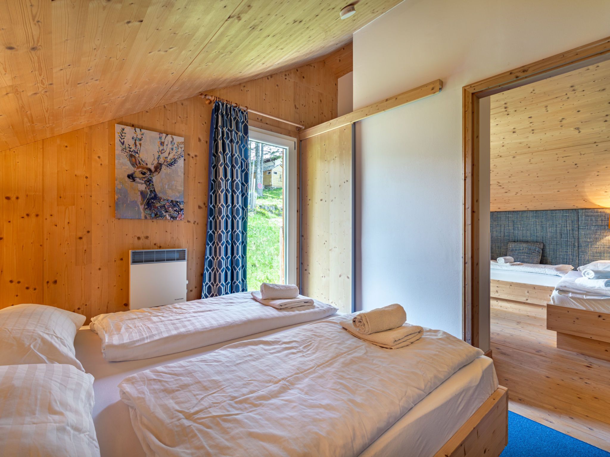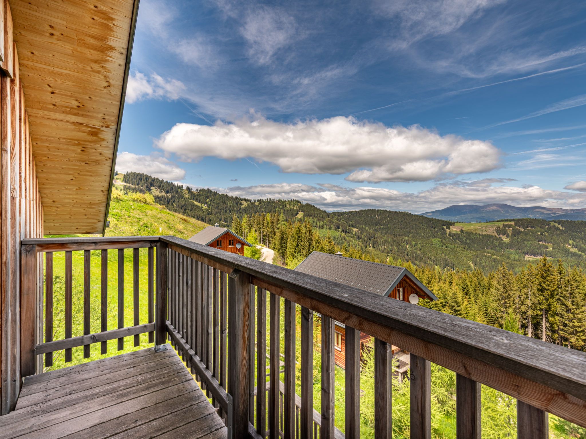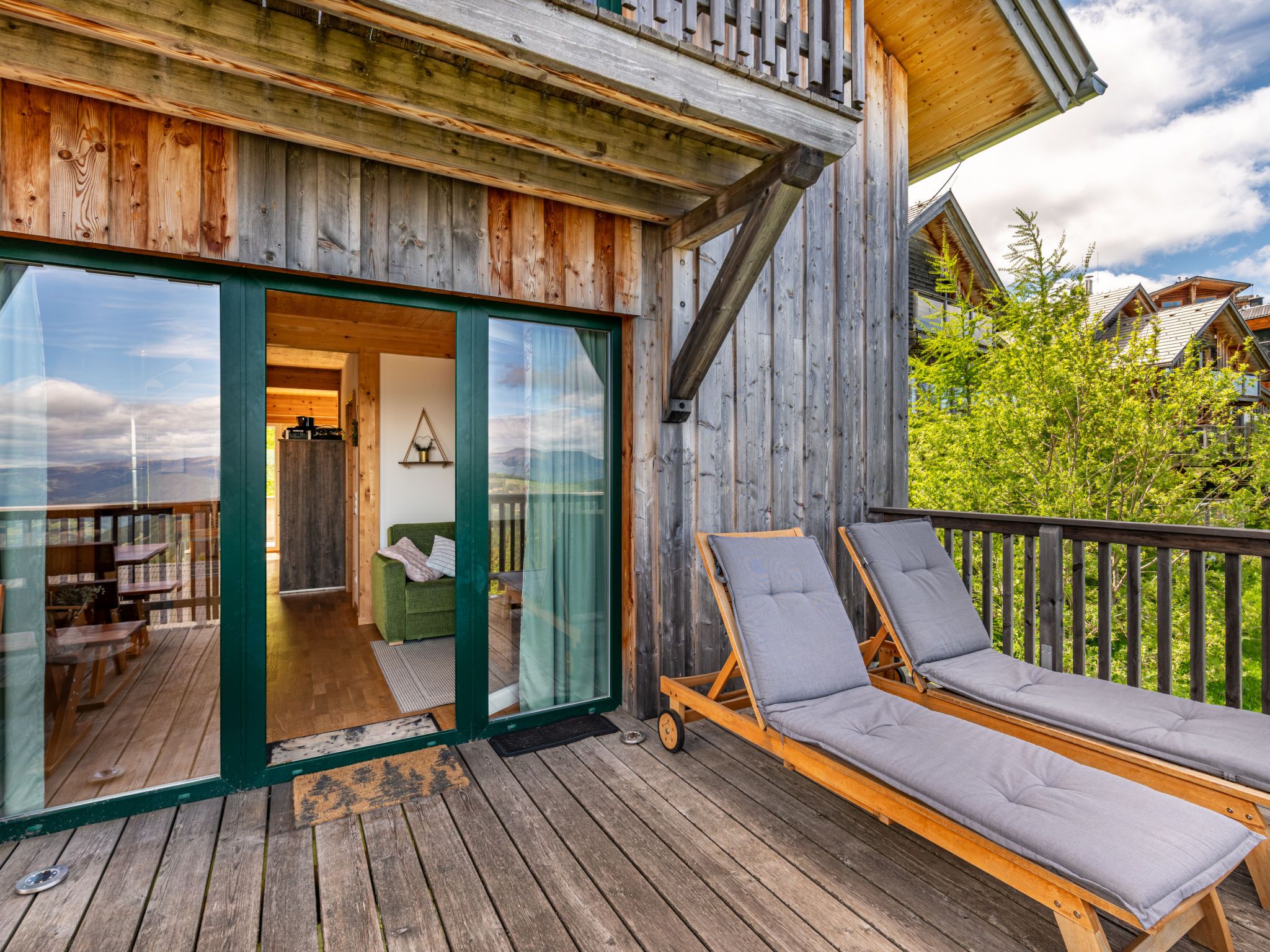 Klippitzperle, 5-Zimmer-Chalet 115 m2. Hell, geschmackvoll und mit viel Holz eingerichtet: Eingang. Offenes Wohnzimmer mit Sat-TV (Flachbildschirm). Ausgang zur Terrasse. Wohnküche (Backofen, Geschirrspüler, 4 Glaskeramikplatten, Toaster, Wasserkocher, Mikrowelle, Tiefkühler, Grill, elektrische Kaffeemaschine) mit offenem Kamin und Essecke. Dusche/WC. Dachgeschoss: 1 Zimmer mit 1 Doppelbett und Sat-TV. Ausgang zum Balkon. 1 Zimmer mit 1 Doppelbett. Ausgang zum Balkon. 1 Zimmer mit 1 Doppelbett. 1 Doppelzimmer mit 2 Betten. Bad/Dusche/WC, Hydromassage-Dusche, Whirlbadewanne. G-Heizung. Holzdielenboden. Balkon. Balkonmöbel, Elektrogrill, Liegestühle. Herrliche Panoramasicht auf die Berge und die Landschaft. Zur Verfügung: Waschmaschine, Wäschetrockner, Haartrockner. Internet (WLAN, gratis). Bitte beachten: geeignet für Familien. Nichtraucher-Haus. Maximal 1 Haustier/Hund erlaubt. Feuerlöscher. Nespresso Kaffeemaschine vorhanden. Im Dorf befindet sich ein Automatenkiosk für erste Verpflegung und Dinge des täglichen Bedarfs. WLAN fällt aufgrund der geographischen Lage teilweise aus.