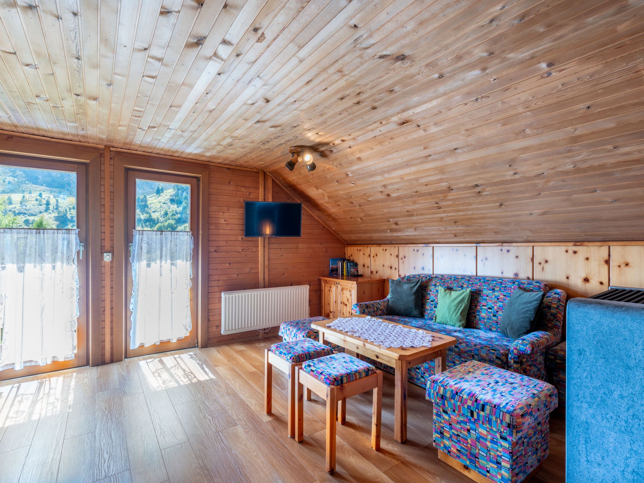 6-Zimmer-Haus 130 m2 auf 2 Stockwerken. Komfortabel und gemütlich eingerichtet: 1 Doppelzimmer. 1 Zimmer mit 2 x 2 Etagenbetten. Wohn-/Esszimmer mit 1 Doppeldiwanbett, 1 Doppelwandschrankbett, Essecke, Sat-TV und Radio. Offene Küche (6 Kochplatten, Backofen, Geschirrspüler, Mikrowelle). Dusche/WC. Obergeschoss: abgeschrägt 1 Doppelzimmer. Abgeschrägt 1 Zimmer mit 2 Betten. Abgeschrägtes Wohn-/Esszimmer mit 1 Doppeldiwanbett, Essecke, Sat-TV und Radio. Abgeschrägte, offene Küche (4 Kochplatten, Backofen, Geschirrspüler, Mikrowelle). Bad/WC. Balkon, Terrasse. Terrassenmöbel, Liegestühle (4). Herrliche Sicht auf den See, die Berge und die Landschaft. Zur Verfügung: Kinderhochstuhl. Internet (WLAN, gratis). Bitte beachten: Maximal 1 Haustier/Hund erlaubt. Rauchmelder. Schöne Einrichtung aus Zirbenholz. Achtung: Der obere Stock des Hauses ist nur über eine Aussentreppe erreichbar.