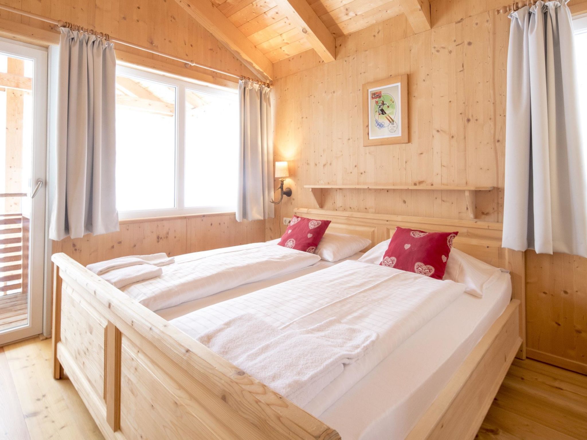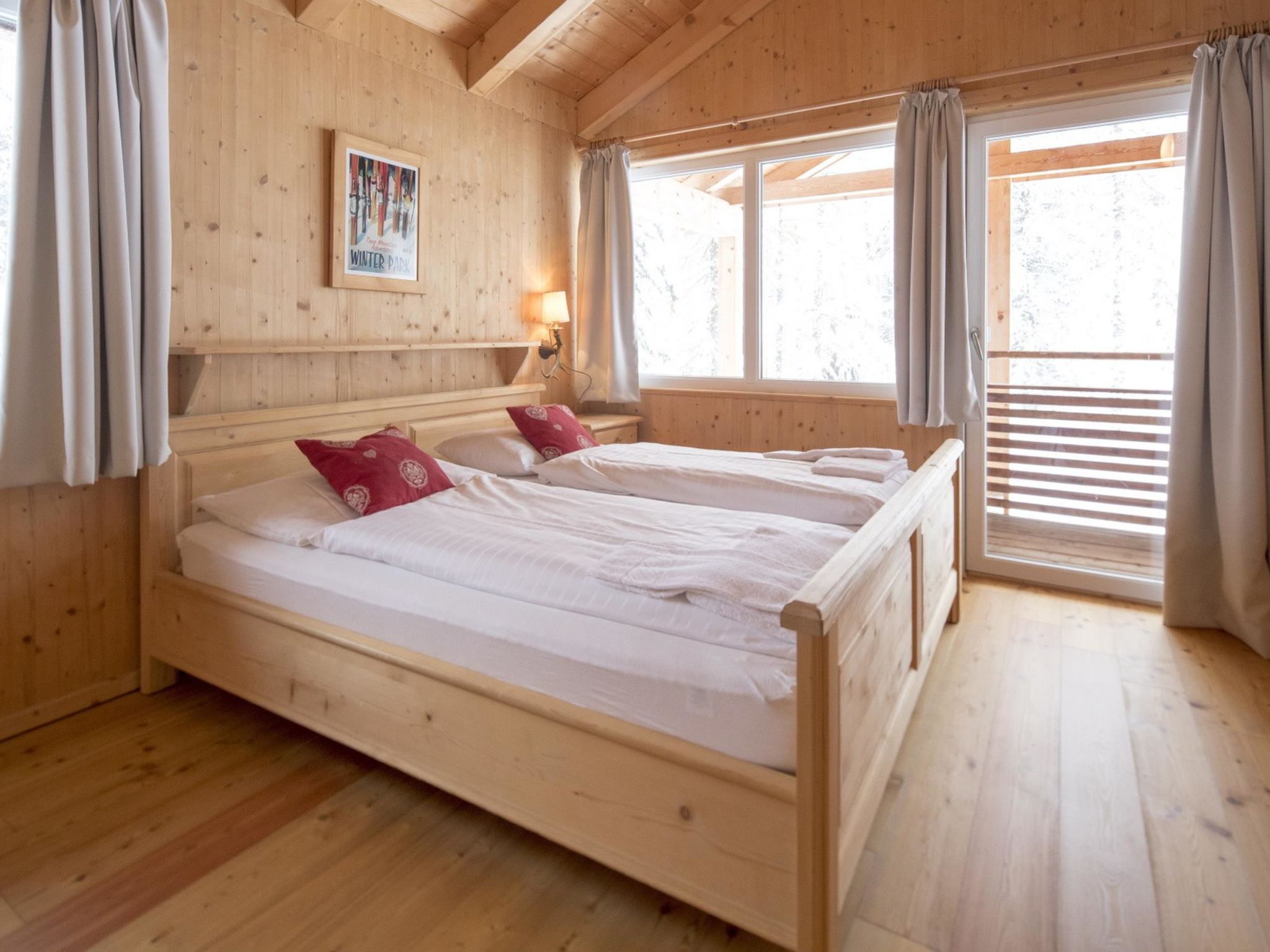 7 mit IR-Sauna&Aussensprudelbad, 5-Zimmer-Chalet 110 m2. Luxuriös und geschmackvoll eingerichtet: offenes Wohn-/Esszimmer mit Essecke, Sat-TV und Flachbildschirm. Offene Küche (Backofen, Geschirrspüler, 4 Glaskeramikplatten, Mikrowelle, Tiefkühler, elektrische Kaffeemaschine). Dusche/WC. Obergeschoss: 2 Doppelzimmer. 2 Zimmer, jedes Zimmer mit 1 x 2 Etagenbetten. Bad/Dusche/WC, Whirlbadewanne, Sauna. Balkon, grosse Terrasse. Terrassenmöbel. Sicht auf die Berge. Zur Verfügung: Internet (Wireless LAN, gratis). Bitte beachten: Nichtraucher-Haus. Beim Mietobjekt handelt es sich um ein Typenhaus bzw. Um eine Typenwohnung. Die Sauna ist eine Infrarot Sauna. Die Zimmereinteilung kann variieren.