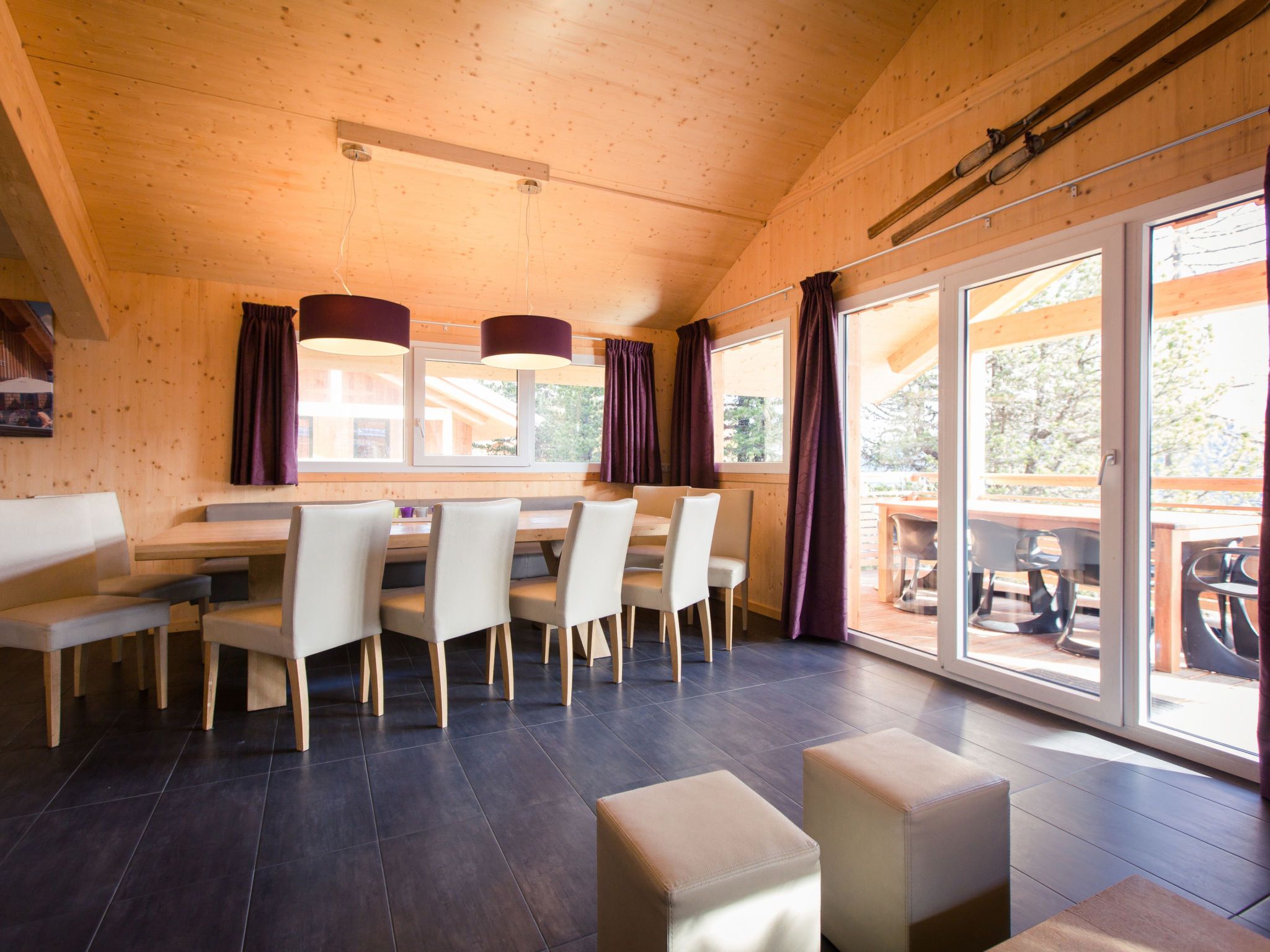 37 mit IR-Sauna und Sprudelbad Innen, 6-Zimmer-Chalet 130 m2. Geräumig, luxuriös und mit viel Holz eingerichtet: Wohn-/Esszimmer mit Essecke und Sat-TV (Flachbildschirm). Offene Küche (Backofen, Geschirrspüler, 4 Glaskeramikplatten, Toaster, Wasserkocher, Mikrowelle, elektrische Kaffeemaschine). Dusche/WC. Obergeschoss: 2 Doppelzimmer. 1 Zimmer mit 2 Betten. 1 Zimmer mit 2 x 2 Etagenbetten. 1 Zimmer mit 1 Bett und 1 Doppelbett. Bad/WC, Dusche/WC, Whirlbadewanne, Sauna. Holzdielenboden. Balkon. Balkonmöbel. Schöne Sicht auf die Berge. Zur Verfügung: Internet (Wireless LAN, gratis). Bitte beachten: Nichtraucher-Unterkunft. Die Sauna ist eine Infrarotkabine.