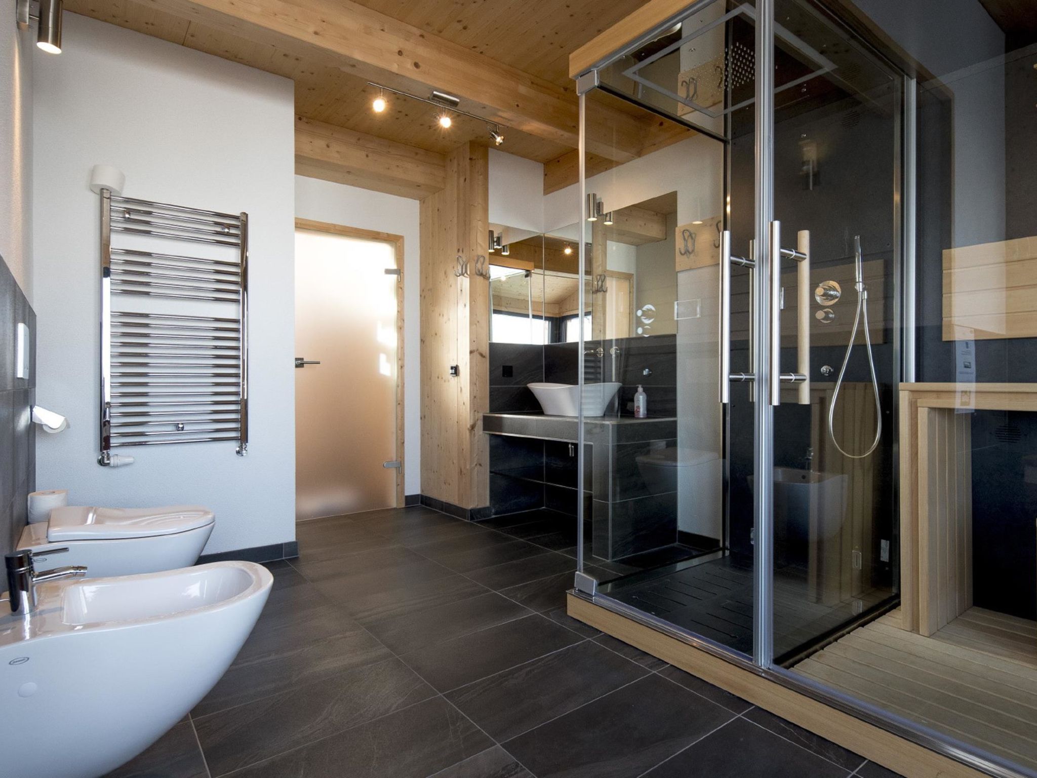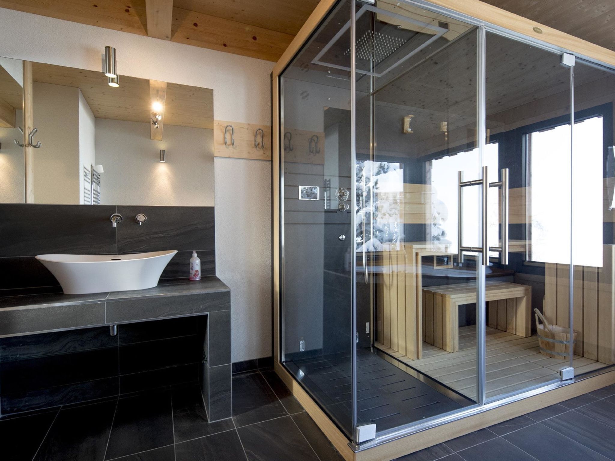 3 mit IR-Sauna & Sprudelwanne, 5-Zimmer-Chalet 120 m2 auf 2 Stockwerken. Luxuriös und geschmackvoll eingerichtet: Wohn-/Esszimmer mit Essecke und Sat-TV (Flachbildschirm). Offene Küche (Backofen, Geschirrspüler, 4 Glaskeramikplatten, Toaster, Wasserkocher, Mikrowelle, elektrische Kaffeemaschine). Bad/WC, Dusche/WC, Hydromassage-Dusche, Whirlbadewanne, Sauna. Balkon. Balkonmöbel. Schöne Sicht auf die Berge. Zur Verfügung: Internet (Wireless LAN, gratis). Bitte beachten: Nichtraucher-Unterkunft.