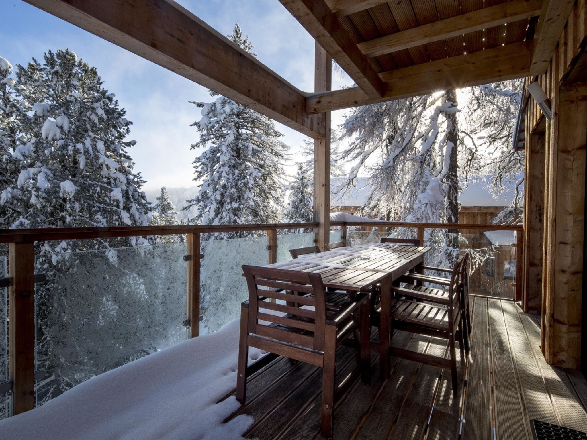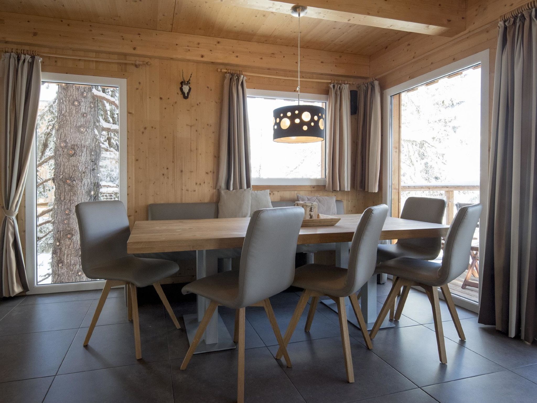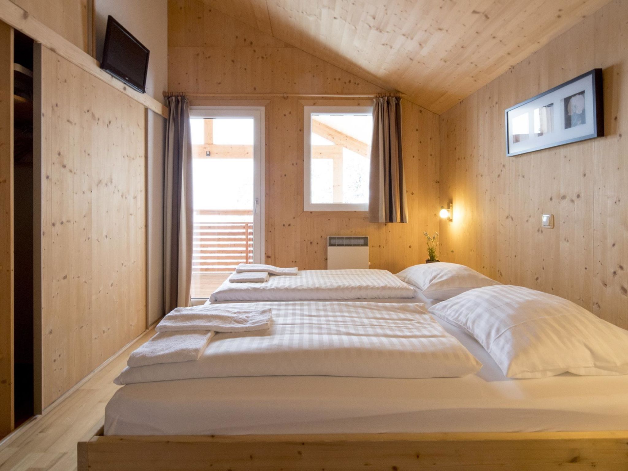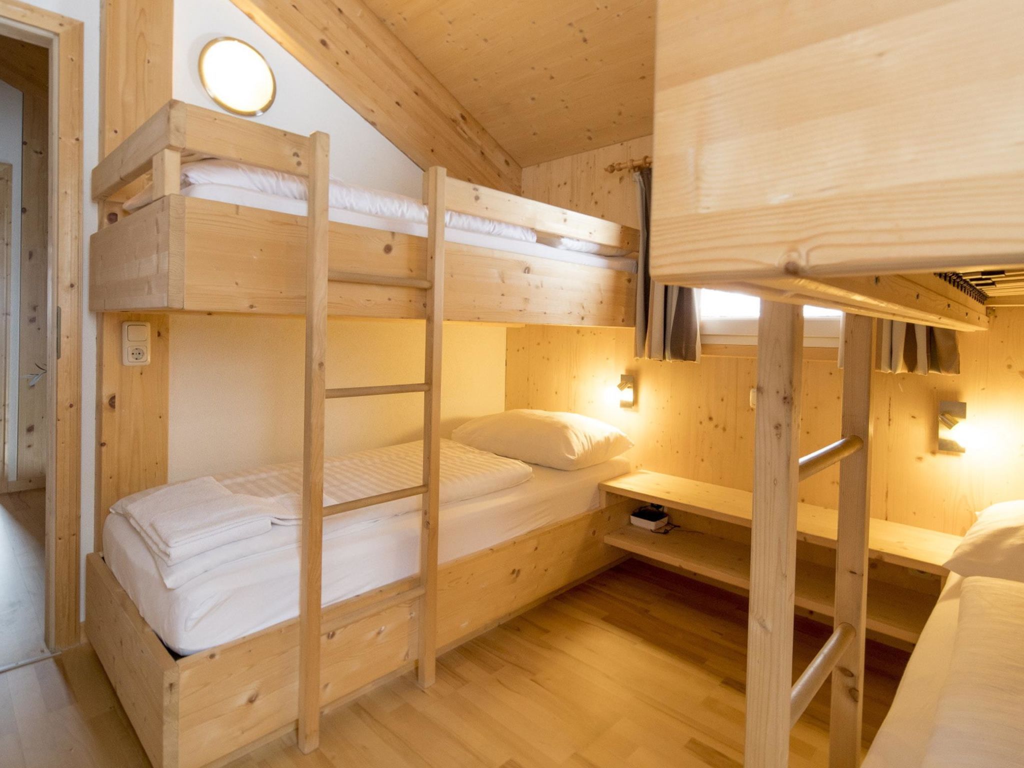 11 mit IR-Sauna & Sprudelwanne Innen, 5-Zimmer-Chalet 120 m2 auf 2 Stockwerken. Luxuriös und geschmackvoll eingerichtet: Wohn-/Esszimmer mit Essecke und Sat-TV (Flachbildschirm). Offene Küche (Backofen, Geschirrspüler, 4 Glaskeramikplatten, Toaster, Wasserkocher, Mikrowelle, elektrische Kaffeemaschine). Dusche/WC. Obergeschoss: 3 Doppelzimmer. 1 Zimmer mit 2 x 2 Etagenbetten. Bad/WC, Dusche/WC, Whirlbadewanne, Sauna. Balkon. Balkonmöbel. Schöne Sicht auf die Berge. Zur Verfügung: Internet (Wireless LAN, gratis). Bitte beachten: Nichtraucher-Unterkunft. Die Sauna ist eine Infrarotkabine.
