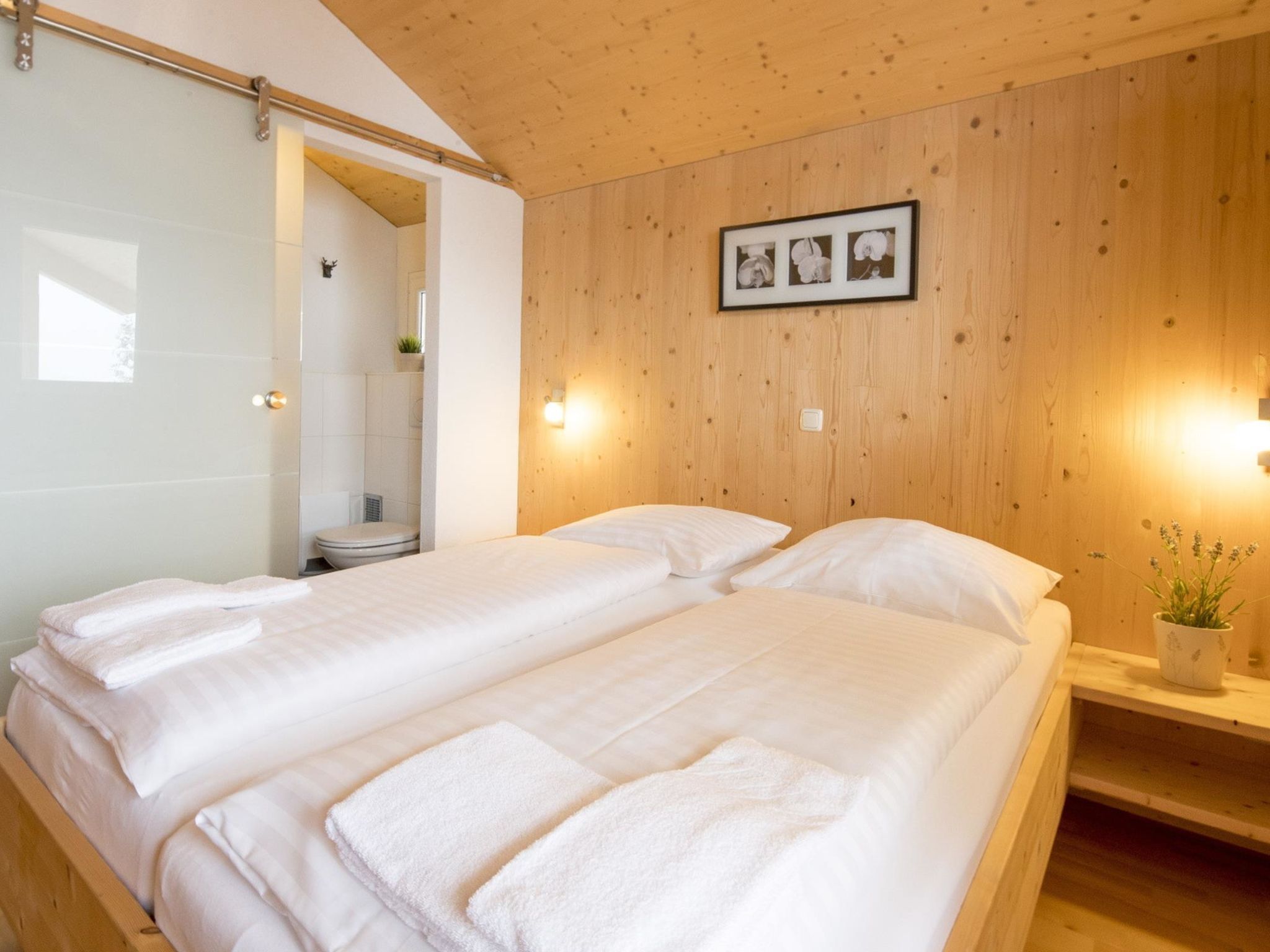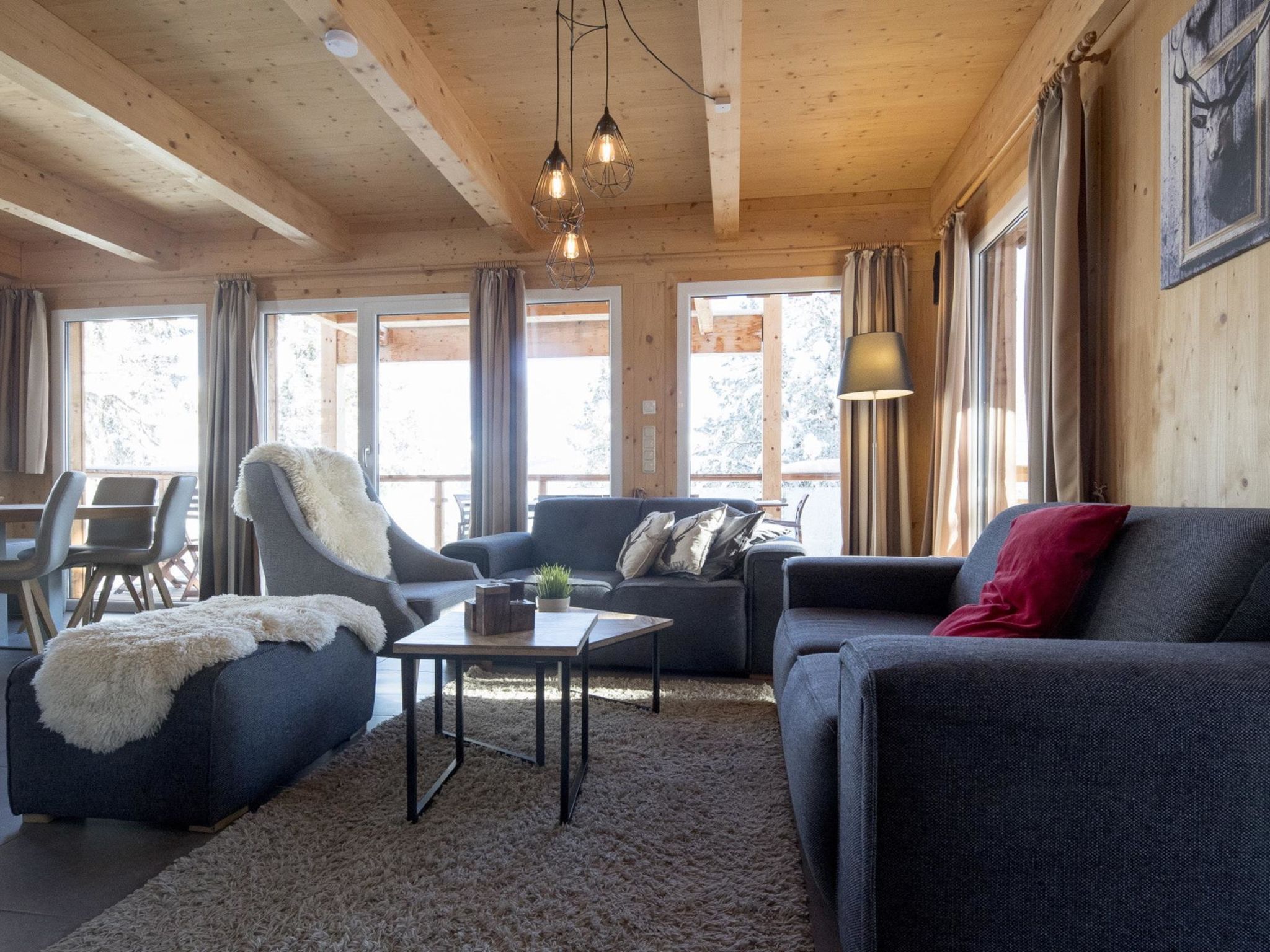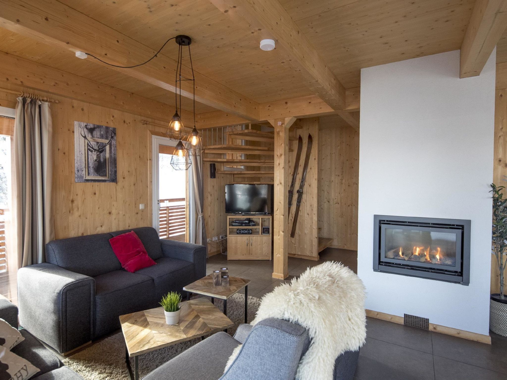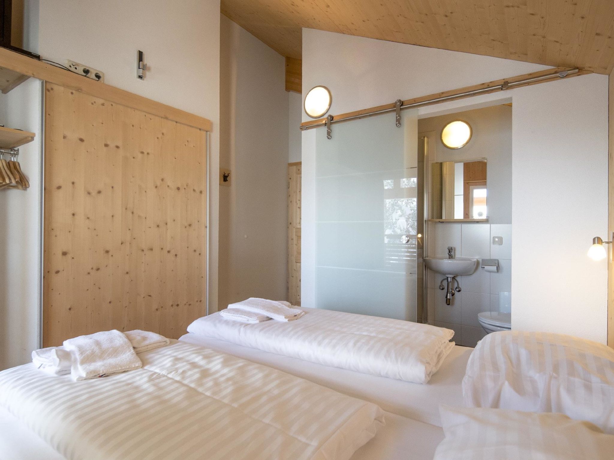 11 mit IR-Sauna & Sprudelwanne Innen, 5-Zimmer-Chalet 120 m2 auf 2 Stockwerken. Luxuriös und geschmackvoll eingerichtet: Wohn-/Esszimmer mit Essecke und Sat-TV (Flachbildschirm). Offene Küche (Backofen, Geschirrspüler, 4 Glaskeramikplatten, Toaster, Wasserkocher, Mikrowelle, elektrische Kaffeemaschine). Dusche/WC. Obergeschoss: 3 Doppelzimmer. 1 Zimmer mit 2 x 2 Etagenbetten. Bad/WC, Dusche/WC, Whirlbadewanne, Sauna. Balkon. Balkonmöbel. Schöne Sicht auf die Berge. Zur Verfügung: Internet (Wireless LAN, gratis). Bitte beachten: Nichtraucher-Unterkunft. Die Sauna ist eine Infrarotkabine.