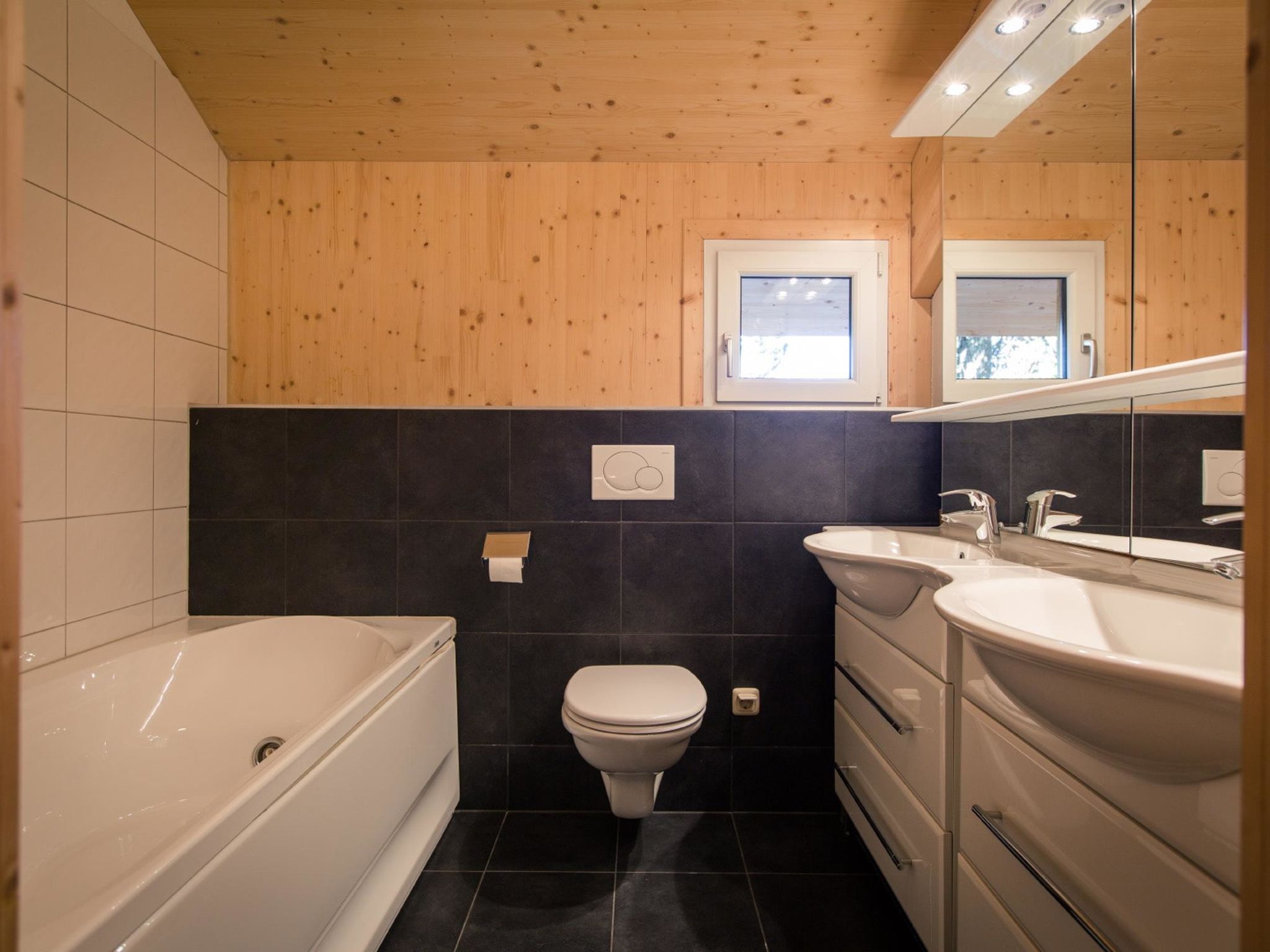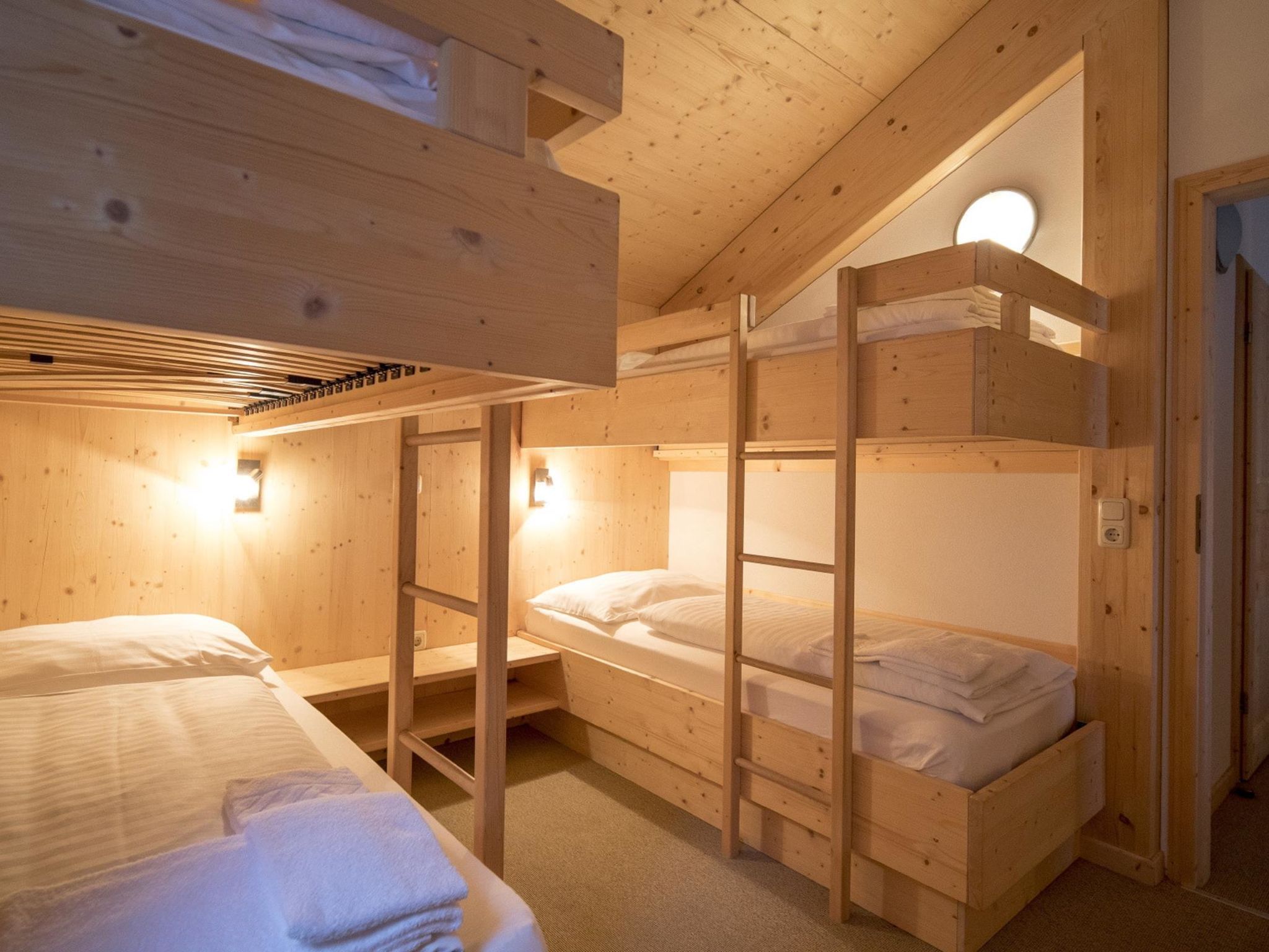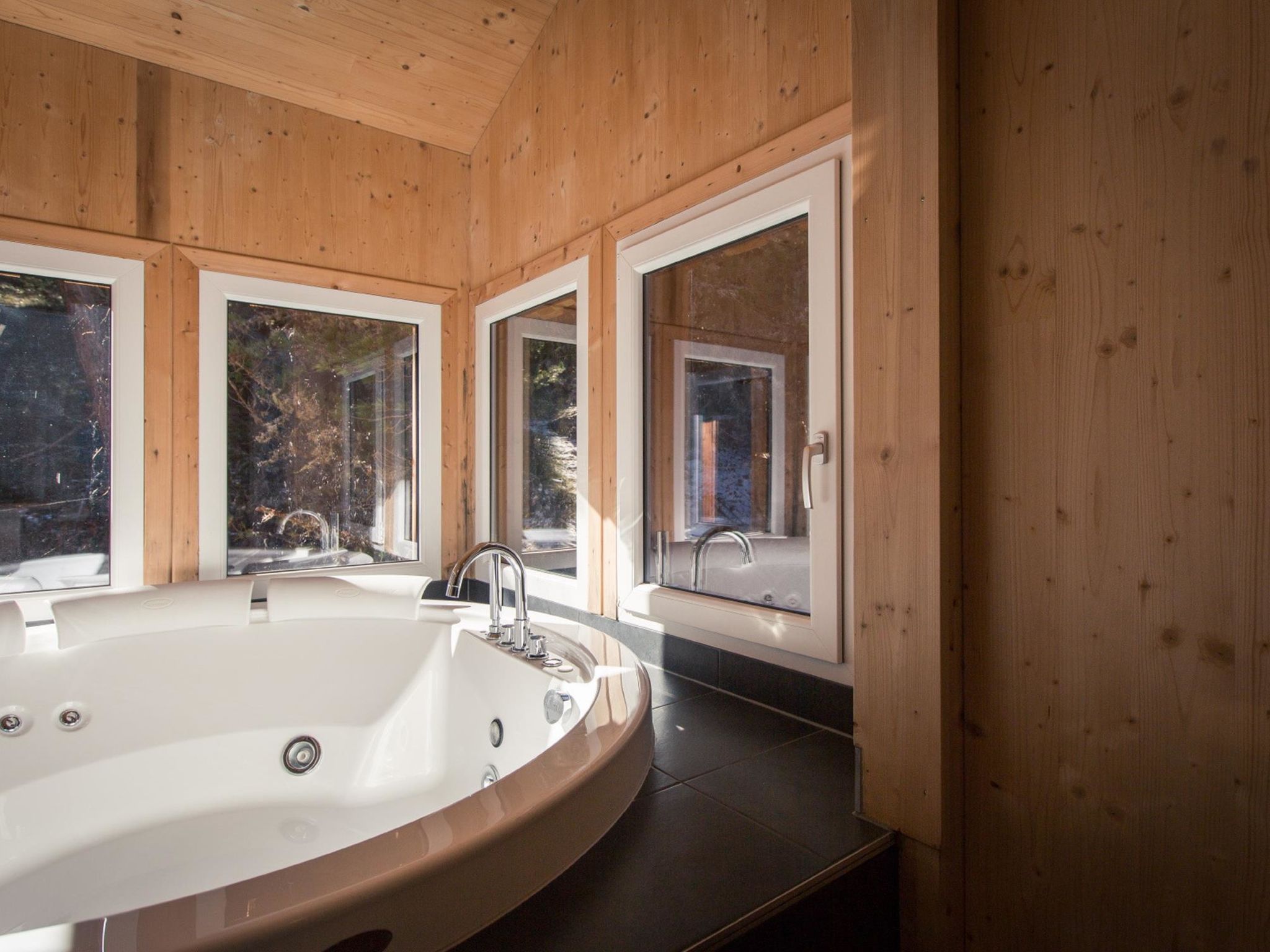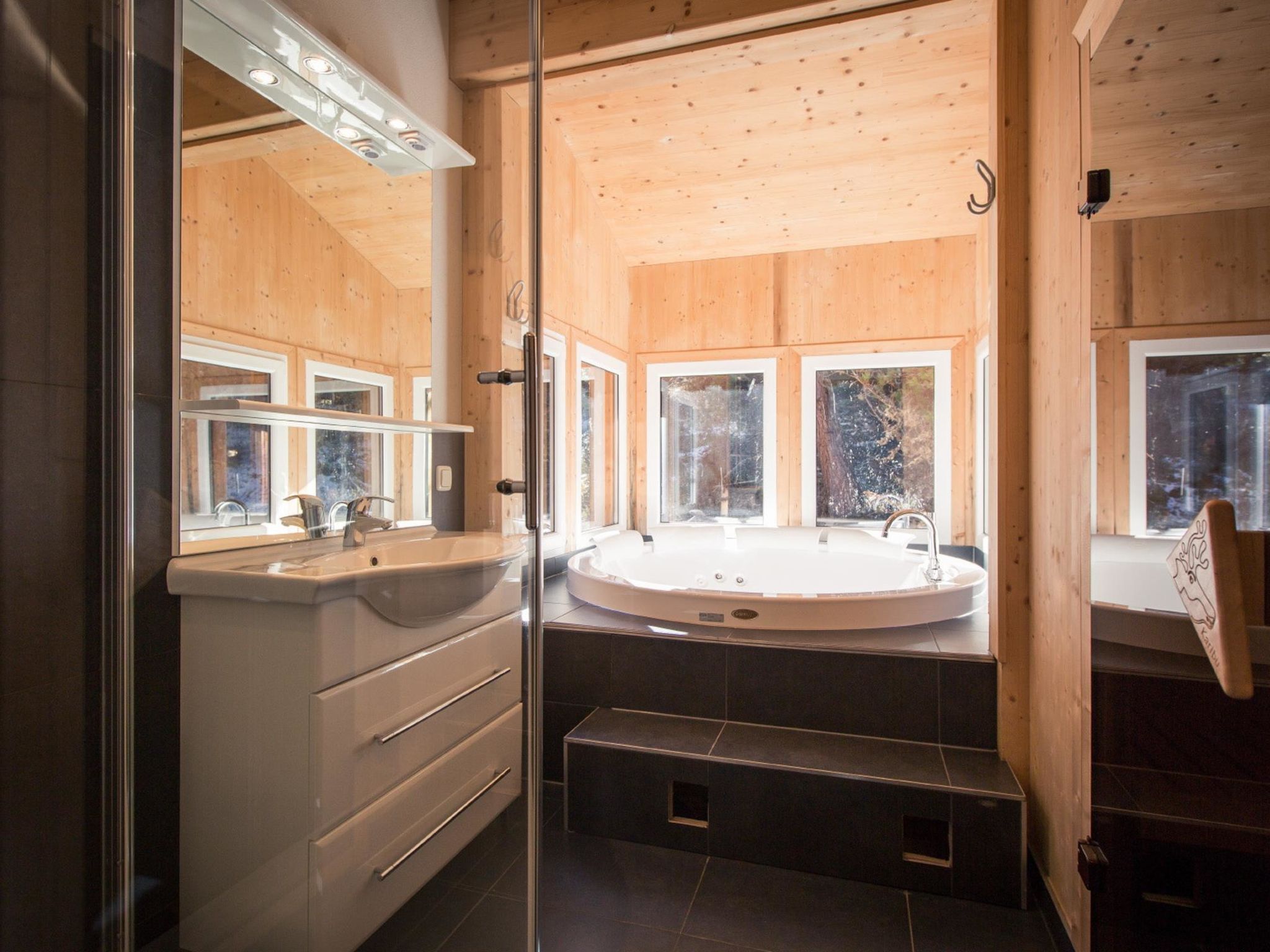 25 mit Sauna und Sprudelbad innen, 5-Zimmer-Chalet 120 m2 auf 2 Stockwerken. Luxuriös und geschmackvoll eingerichtet: Wohn-/Esszimmer mit Essecke und Sat-TV (Flachbildschirm). Offene Küche (Backofen, Geschirrspüler, 4 Glaskeramikplatten, Toaster, Wasserkocher, Mikrowelle, elektrische Kaffeemaschine). Dusche/WC. Obergeschoss: 2 Doppelzimmer. 1 Zimmer mit 1 Bett und 1 Doppelbett. 1 Zimmer mit 2 x 2 Etagenbetten. Bad/WC, Dusche/WC, Whirlbadewanne, Sauna. Balkon. Balkonmöbel. Schöne Sicht auf die Berge. Zur Verfügung: Internet (Wireless LAN, gratis). Bitte beachten: Nichtraucher-Unterkunft. Die Sauna ist eine Infrarotkabine.