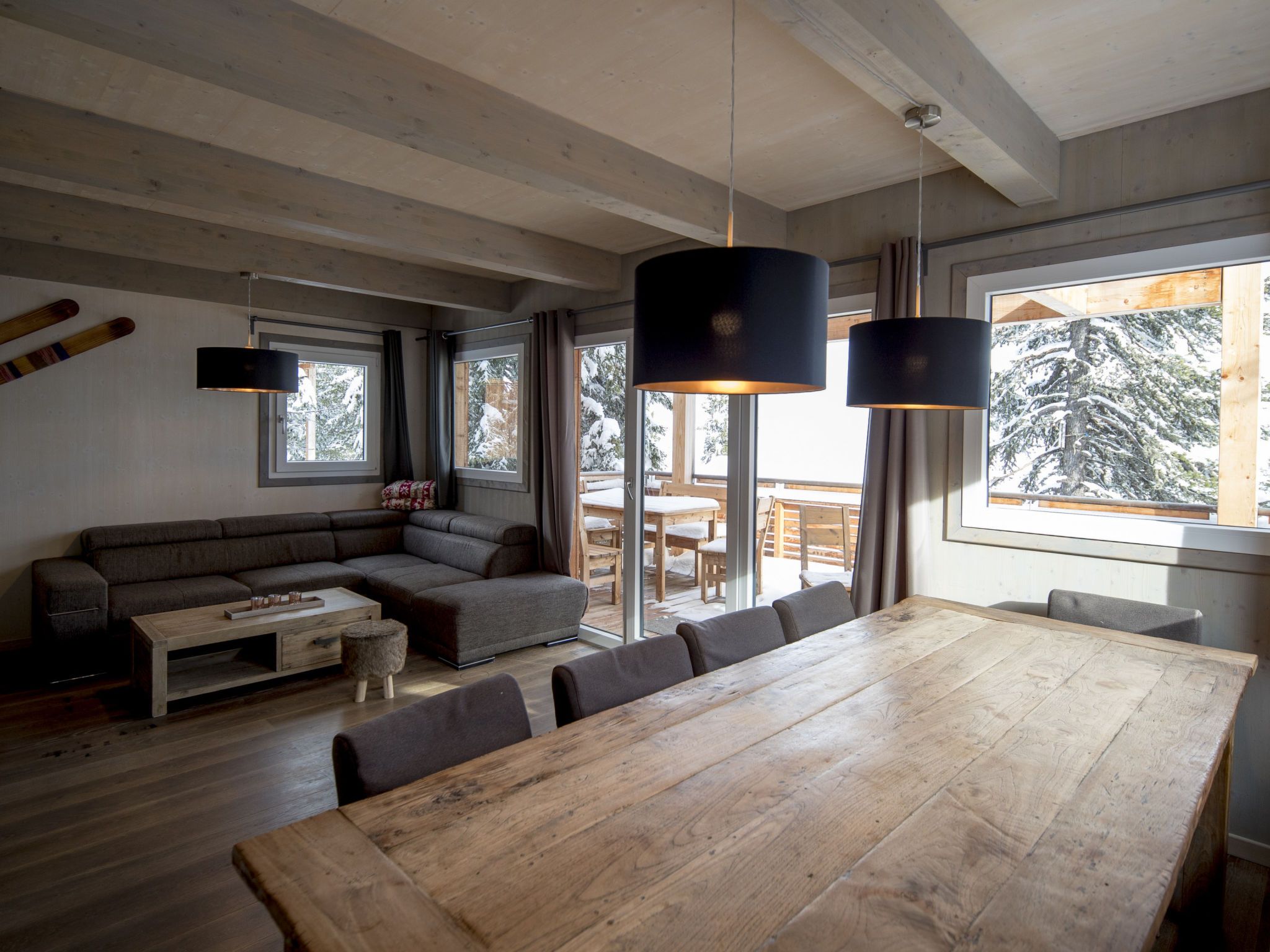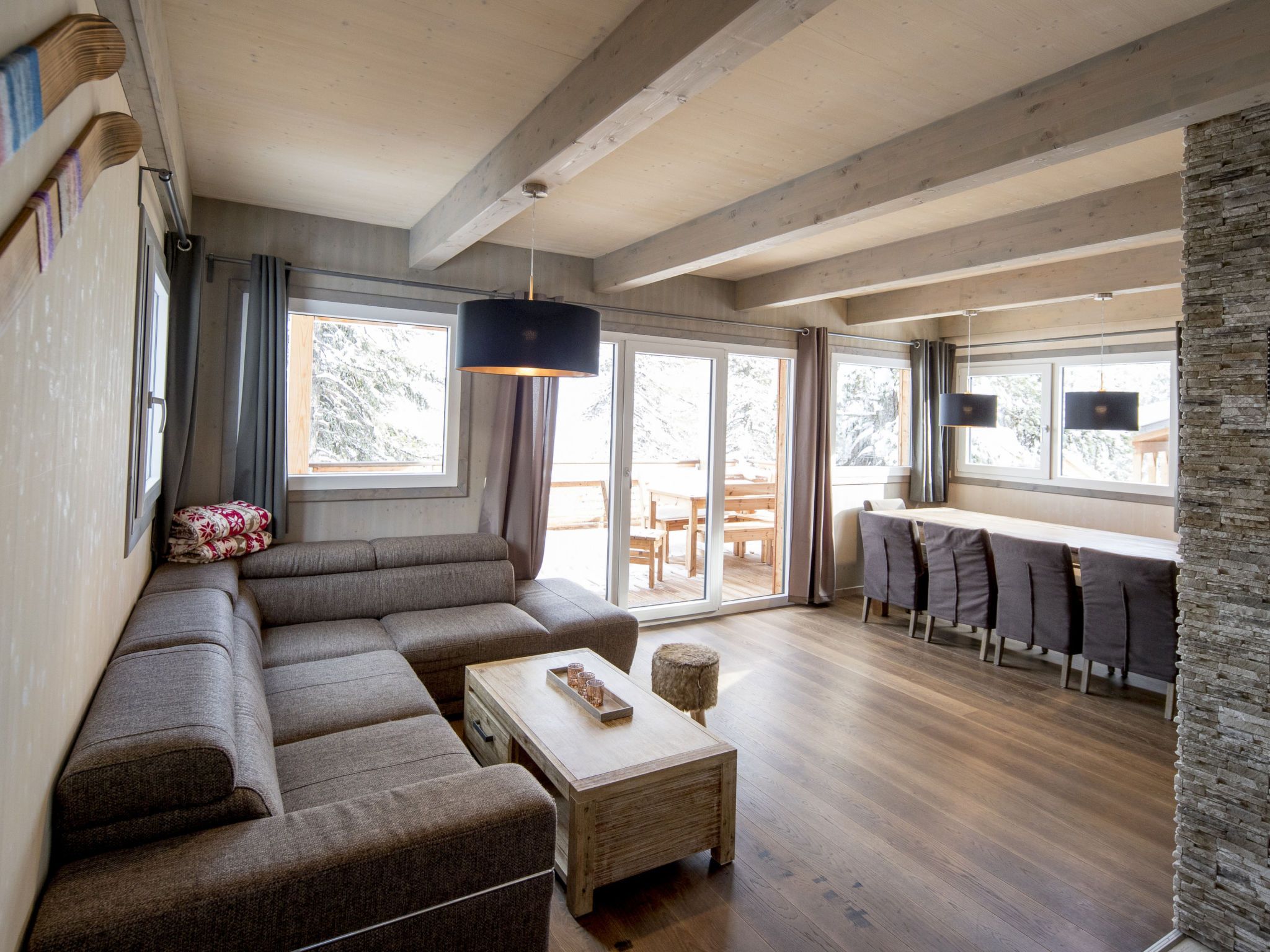 35 mit IR-Sauna& Sprudelbad Innen, 5-Zimmer-Chalet 120 m2 auf 2 Stockwerken. Luxuriös und geschmackvoll eingerichtet: Wohn-/Esszimmer mit Essecke und Sat-TV (Flachbildschirm). Offene Küche (Backofen, Geschirrspüler, 4 Glaskeramikplatten, Toaster, Wasserkocher, Mikrowelle, elektrische Kaffeemaschine). Dusche/WC. Obergeschoss: 2 Doppelzimmer. 1 Zimmer mit 1 x 2 Etagenbetten, 1 Doppelbett. 1 Zimmer mit 2 x 2 Etagenbetten. Bad/WC, Dusche/WC, Whirlbadewanne, Sauna. Balkon. Balkonmöbel. Schöne Sicht auf die Berge. Zur Verfügung: Internet (Wireless LAN, gratis). Bitte beachten: Nichtraucher-Unterkunft. Die Sauna ist eine Infrarotkabine.