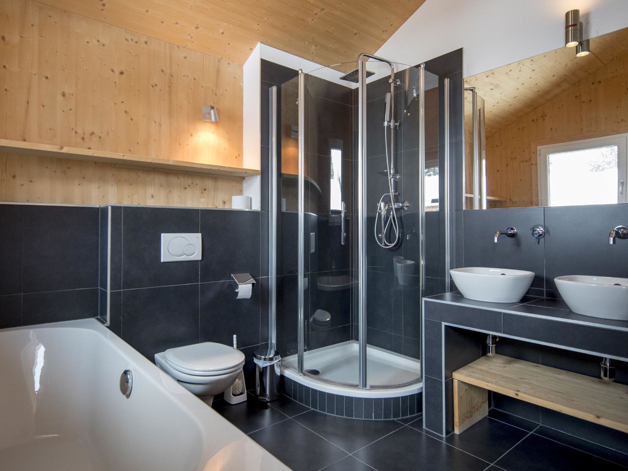 26 mit IR-Sauna und Sprudelbad innen, 6-Zimmer-Chalet 130 m2 auf 2 Stockwerken. Luxuriös und geschmackvoll eingerichtet: Wohn-/Esszimmer mit Essecke und Sat-TV (Flachbildschirm). Offene Küche (Backofen, Geschirrspüler, 4 Glaskeramikplatten, Toaster, Wasserkocher, Mikrowelle, elektrische Kaffeemaschine). 2 Duschen/WC. Obergeschoss: 3 Doppelzimmer. 1 Zimmer mit 1 x 2 Etagenbetten. 1 Zimmer mit 2 x 2 Etagenbetten. Bad/WC, Dusche/WC, Whirlbadewanne, Sauna. Balkon. Balkonmöbel. Schöne Sicht auf die Berge. Zur Verfügung: Internet (Wireless LAN, gratis). Bitte beachten: Nichtraucher-Unterkunft. Die Sauna ist eine Infrarotkabine.