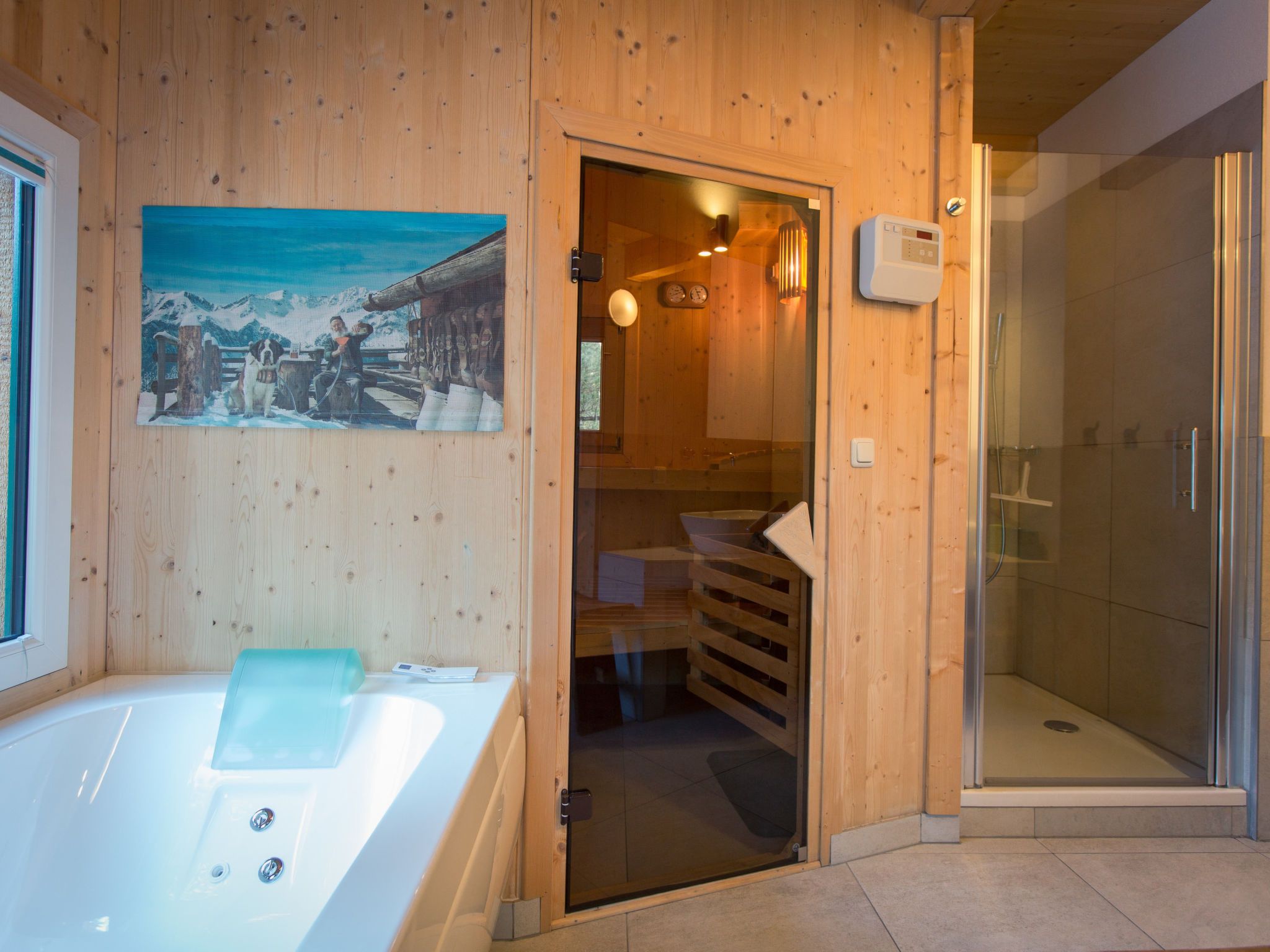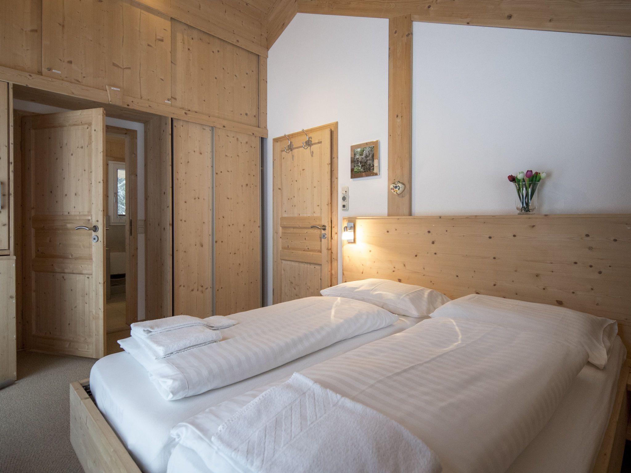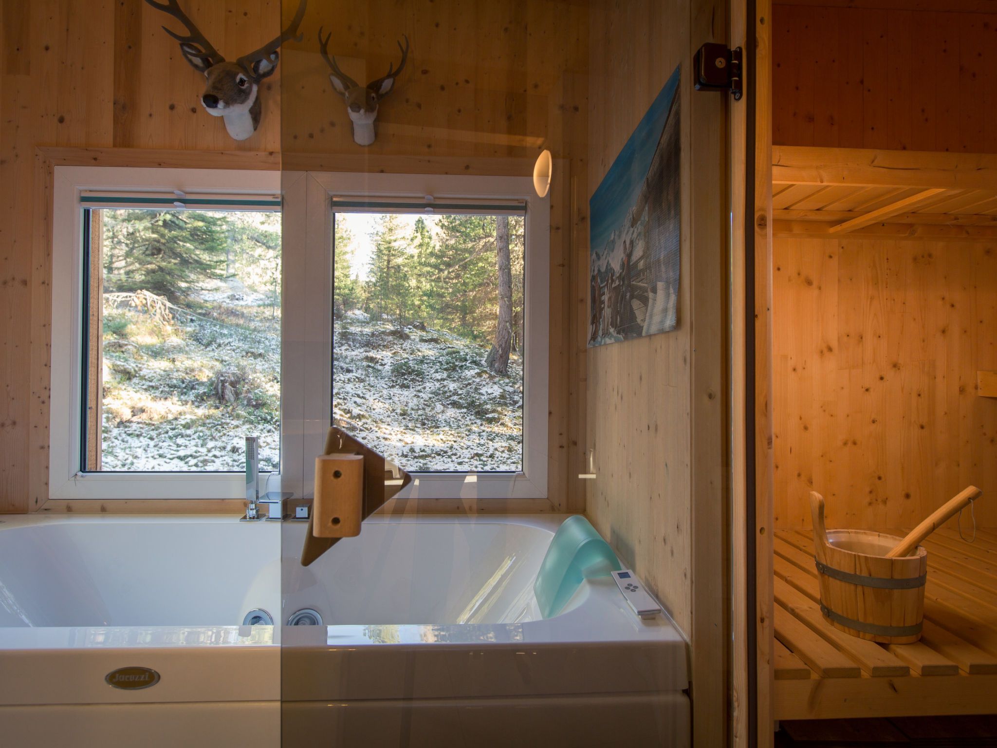 42 mit Sauna und Sprudelbad innen, 6-Zimmer-Chalet 120 m2 auf 2 Stockwerken. Luxuriös und geschmackvoll eingerichtet: Wohn-/Esszimmer mit Essecke und Sat-TV (Flachbildschirm). Offene Küche (Backofen, Geschirrspüler, 4 Glaskeramikplatten, Toaster, Wasserkocher, Mikrowelle, elektrische Kaffeemaschine). 2 Duschen/WC. Obergeschoss: 4 Doppelzimmer. 1 Zimmer mit 2 x 2 Etagenbetten. Bad/WC, Dusche/WC, Whirlbadewanne, Sauna. Balkon. Balkonmöbel. Schöne Sicht auf die Berge. Zur Verfügung: Internet (Wireless LAN, gratis). Bitte beachten: Nichtraucher-Unterkunft.