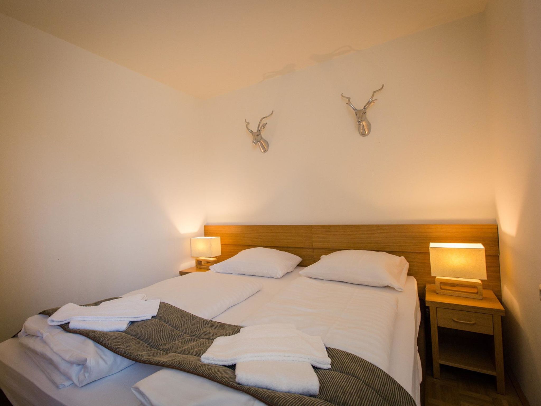 12 mit Balkon, 3-Zimmer-Wohnung 50 m2. Modern und gemütlich eingerichtet: Eingang mit 1 x 2 Etagenbetten. Wohn-/Esszimmer mit Essecke und Sat-TV (Flachbildschirm). 1 Doppelzimmer. Offene Küche (Geschirrspüler, 4 Glaskeramikplatten, Toaster, Wasserkocher, Mikrowelle, elektrische Kaffeemaschine). Dusche/WC. Balkon. Balkonmöbel. Schöne Sicht auf die Landschaft und die Ortschaft. Zur Verfügung: Internet (Wireless LAN, gratis). Bitte beachten: Nichtraucher-Unterkunft.