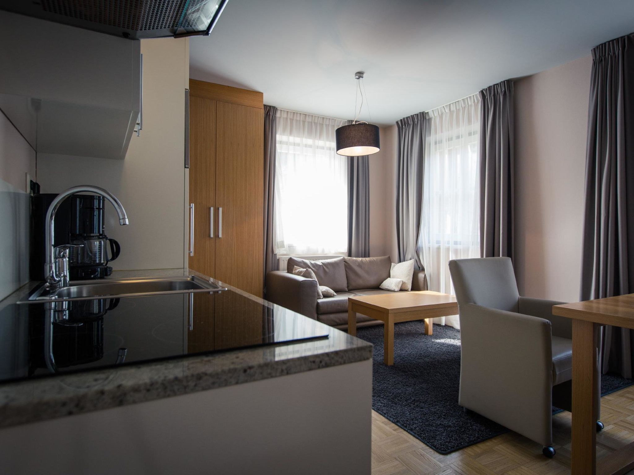 Studio 4 mit Balkon, 1-Zimmer-Wohnung 25 m2. Modern und gemütlich eingerichtet: Wohn-/Schlafzimmer mit 1 Doppelbett, Essecke und Sat-TV (Flachbildschirm). Kochnische (Geschirrspüler, 4 Glaskeramikplatten, Toaster, Wasserkocher, Mikrowelle, elektrische Kaffeemaschine). Dusche/WC. Balkon. Balkonmöbel. Schöne Sicht auf die Berge und die Landschaft. Zur Verfügung: Internet (Wireless LAN, gratis). Bitte beachten: Nichtraucher-Unterkunft.