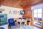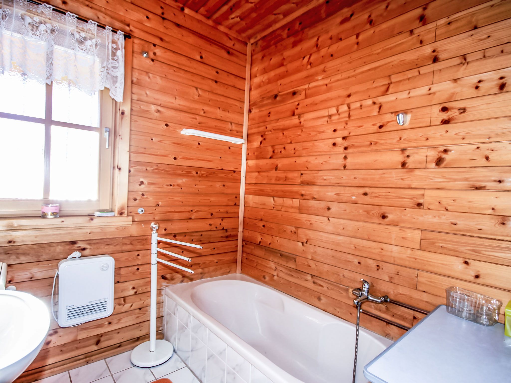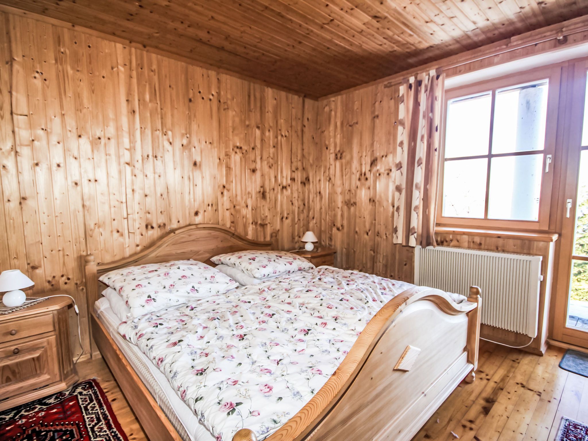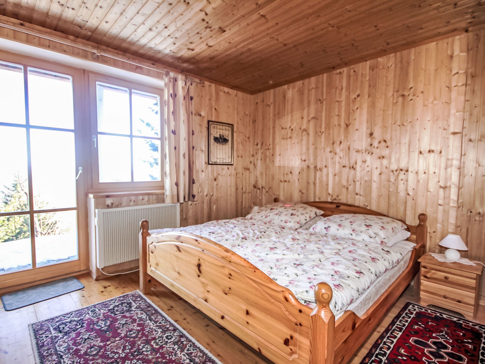 4-Zimmer-Chalet 120 m2 auf 3 Stockwerken. Objekt geeignet für 5 Erwachsene. Geräumig, gemütlich und mit viel Holz eingerichtet: Eingang mit sep. WC. Wohn-/Esszimmer mit Essecke und Sat-TV (Flachbildschirm), Kachelofen. Ausgang zum Balkon. Offene Küche (Backofen, 4 Glaskeramikplatten, Mikrowelle, elektrische Kaffeemaschine). Bad. Unteres Geschoss: 2 Doppelzimmer. Ausgang zum Balkon. Dusche/WC. E-Heizung. Obergeschoss: abgeschrägtes, offenes Wohn-/Schlafzimmer mit 1 Doppeldiwanbett, Dusche/WC und Sat-TV (Flachbildschirm). 2 Balkone 8 m2. Balkonmöbel, Gartengrill (mobil), Liegestühle (4). Sehr schöne Panoramasicht auf die Berge. Zur Verfügung: Waschmaschine, Babybett, Haartrockner. Bitte beachten: geeignet für Familien. Nichtraucher-Haus. Rauchmelder.