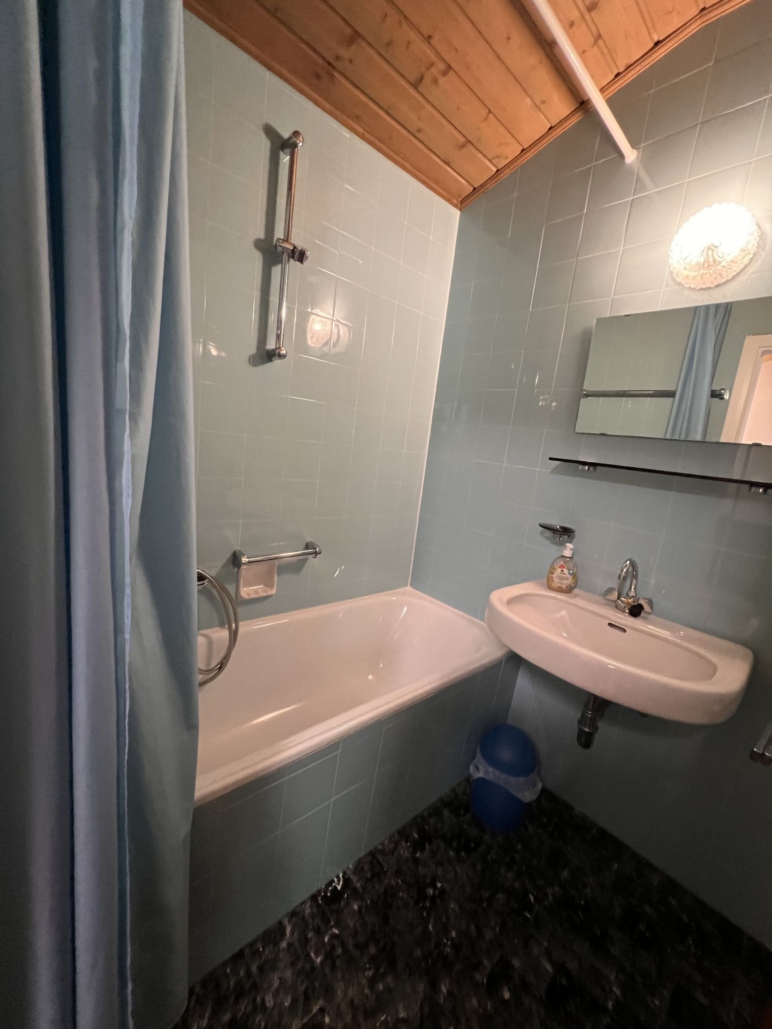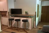 Top 49A, 1-Zimmer-Wohnung 27 m2 im 4. Stock. Wohn-/Esszimmer mit 1 Diwanbett und Sat-TV. Abgeschrägte Schlafnische 11 m2, ohne Fenster mit 1 franz. Bett (140 cm). Kochnische (2 Kochplatten) mit Bar. Bad/WC. E-Heizung. Anstelle eines abgeschlossenen Schlafzimmers befinden sich manche Schlafplätze in einem offenen Bereich (Galerie, Nische etc.).