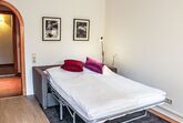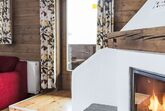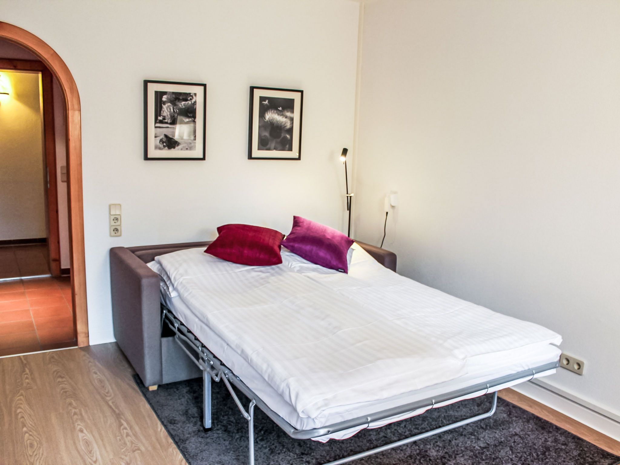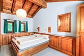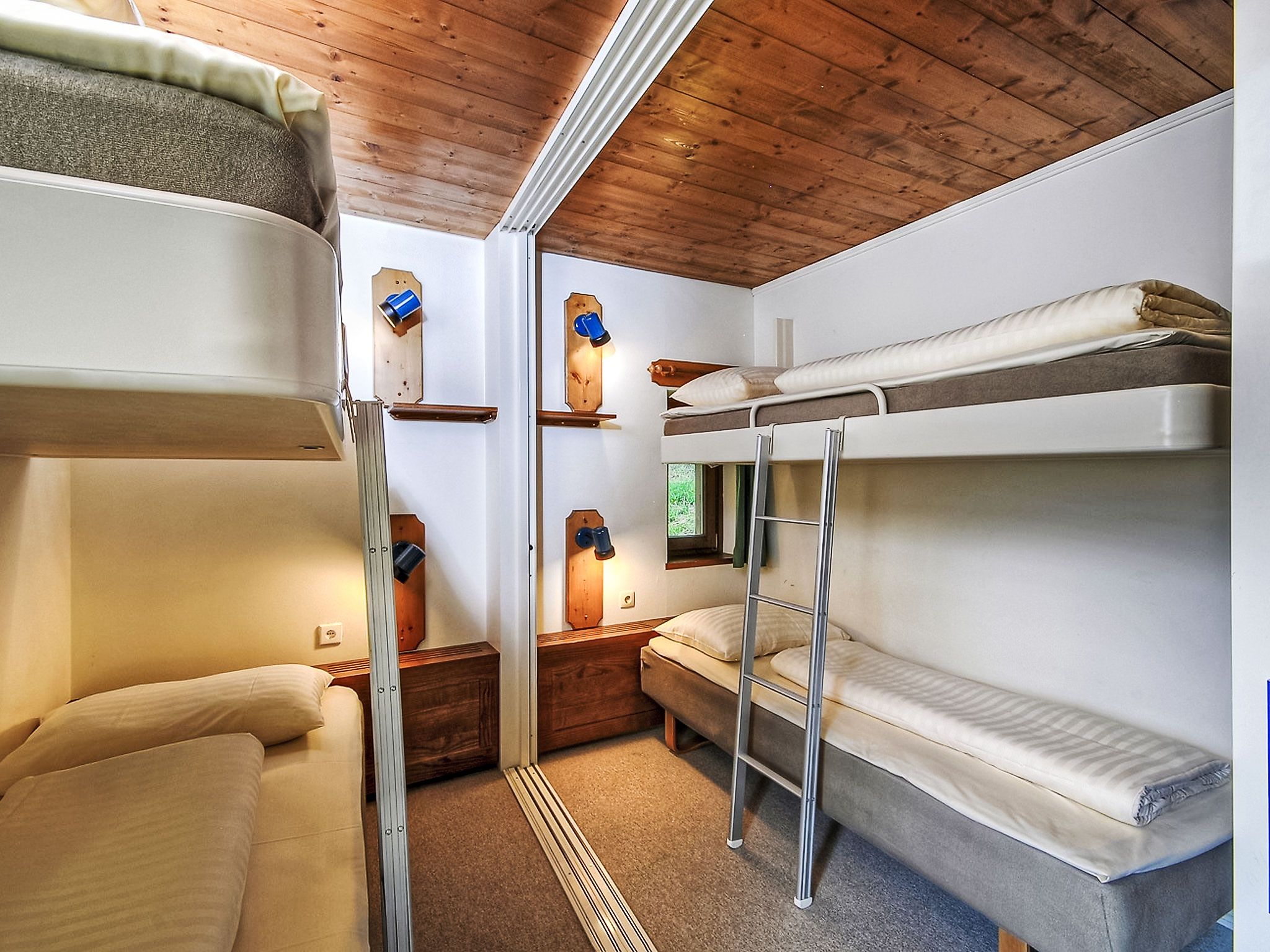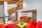 Wellnessapartment, 4-Zimmer-Wohnung 90 m2. Komfortabel und mit viel Holz eingerichtet: 1 Doppelzimmer. 2 kleine Zimmer, jedes Zimmer mit 1 x 2 Etagenbetten. Wohn-/Schlafzimmer mit 1 Doppeldiwanbett, offenem Kamin und Sat-TV. Küche). Bad, sep. WC. Balkon. Sehr schöne Panoramasicht. Zur Verfügung: Waschmaschine. Internet (WLAN). Bitte beachten: Maximal 1 Haustier/Hund erlaubt. Rauchmelder. Die zwei kleinen Zimmer sind durch einen flexiblen Raumteiler getrennt. Die Wohnung bietet eine eigene Sauna. Die Ferienwohnung befindet sich im Haupthaus.