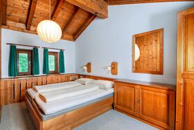 Wellnessapartment, 4-Zimmer-Wohnung 90 m2. Komfortabel und mit viel Holz eingerichtet: 1 Doppelzimmer. 2 kleine Zimmer, jedes Zimmer mit 1 x 2 Etagenbetten. Wohn-/Schlafzimmer mit 1 Doppeldiwanbett, offenem Kamin und Sat-TV. Küche). Bad, sep. WC. Balkon. Sehr schöne Panoramasicht. Zur Verfügung: Waschmaschine, Sauna. Internet (WLAN, extra). Bitte beachten: Maximal 1 Haustier/Hund erlaubt. Rauchmelder. Die zwei kleinen Zimmer sind durch einen flexiblen Raumteiler getrennt. Die Wohnung verfügt über eine eigene Sauna. Die Ferienwohnung befindet sich im Haupthaus.