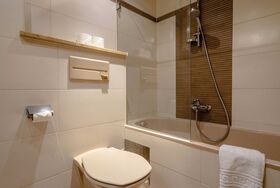 2-Raum-Wohnung, Wohnschlafraum, Sitzecke, Schlafzimmer, Küche mit Geschirrspüler, Bad oder Dusche, WC, Telefon, Kabel- TV, Radio, Terrasse Süd-Parterre.