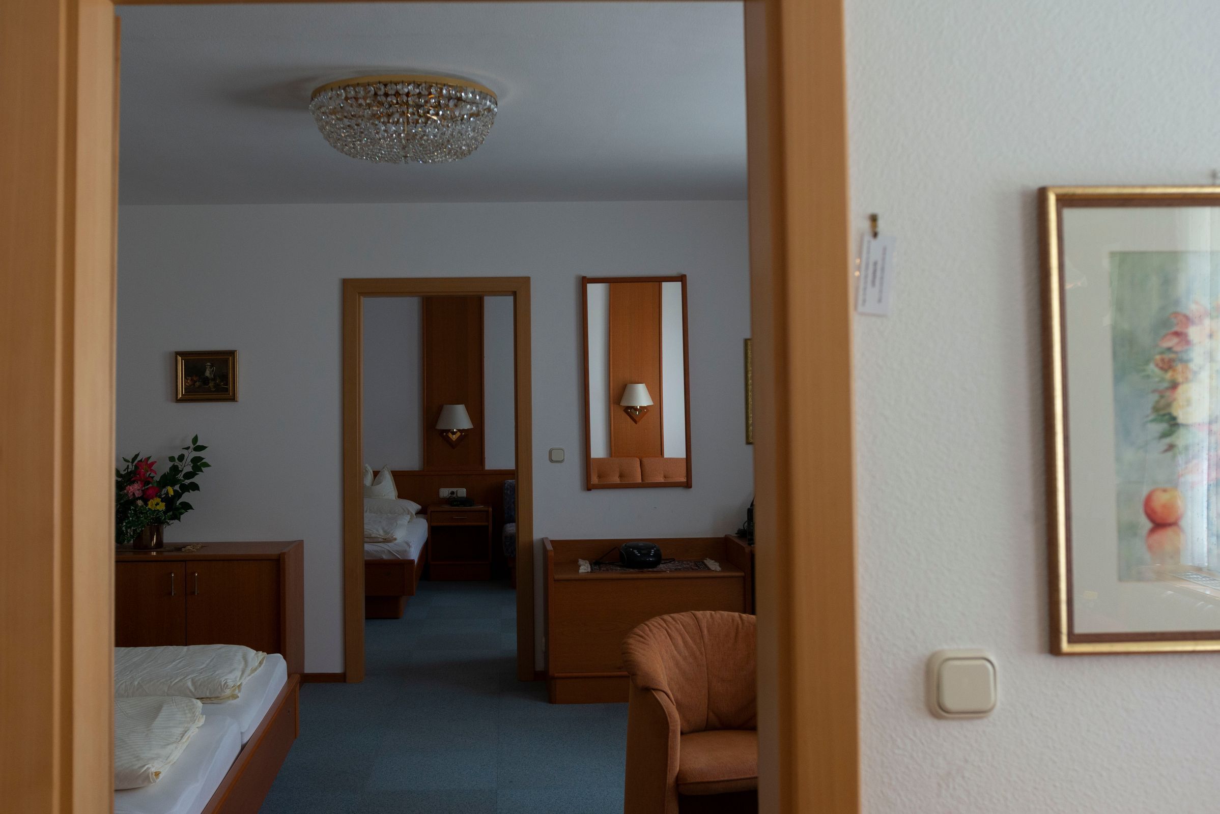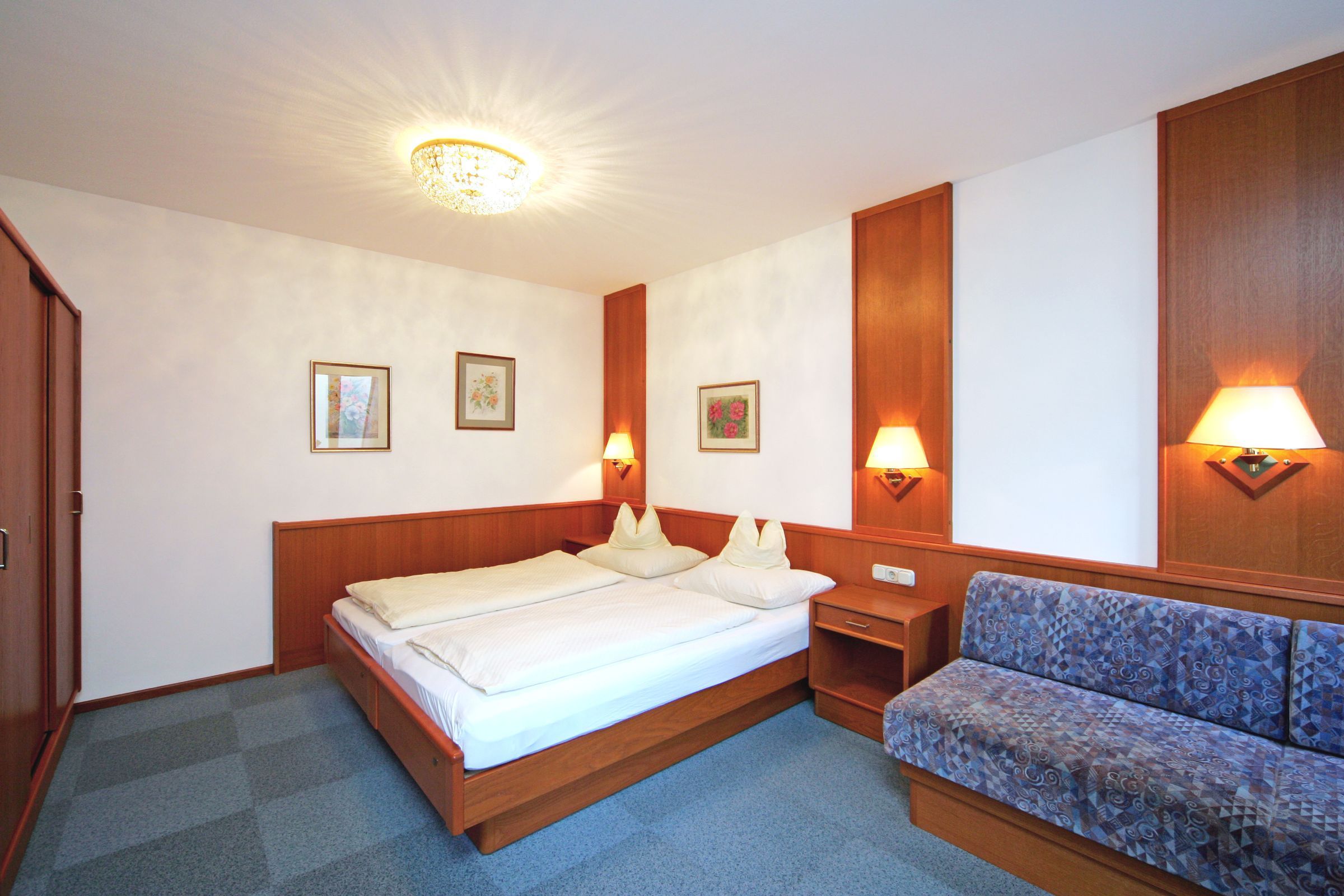 Sie finden 1 Zimmer mit 1 Doppelbett und 1 Zusatzbett (90x200cm) und 1 Zimmer mit 1 Doppelbett und 1 Doppelausziehsofa (2x90x200cm)
