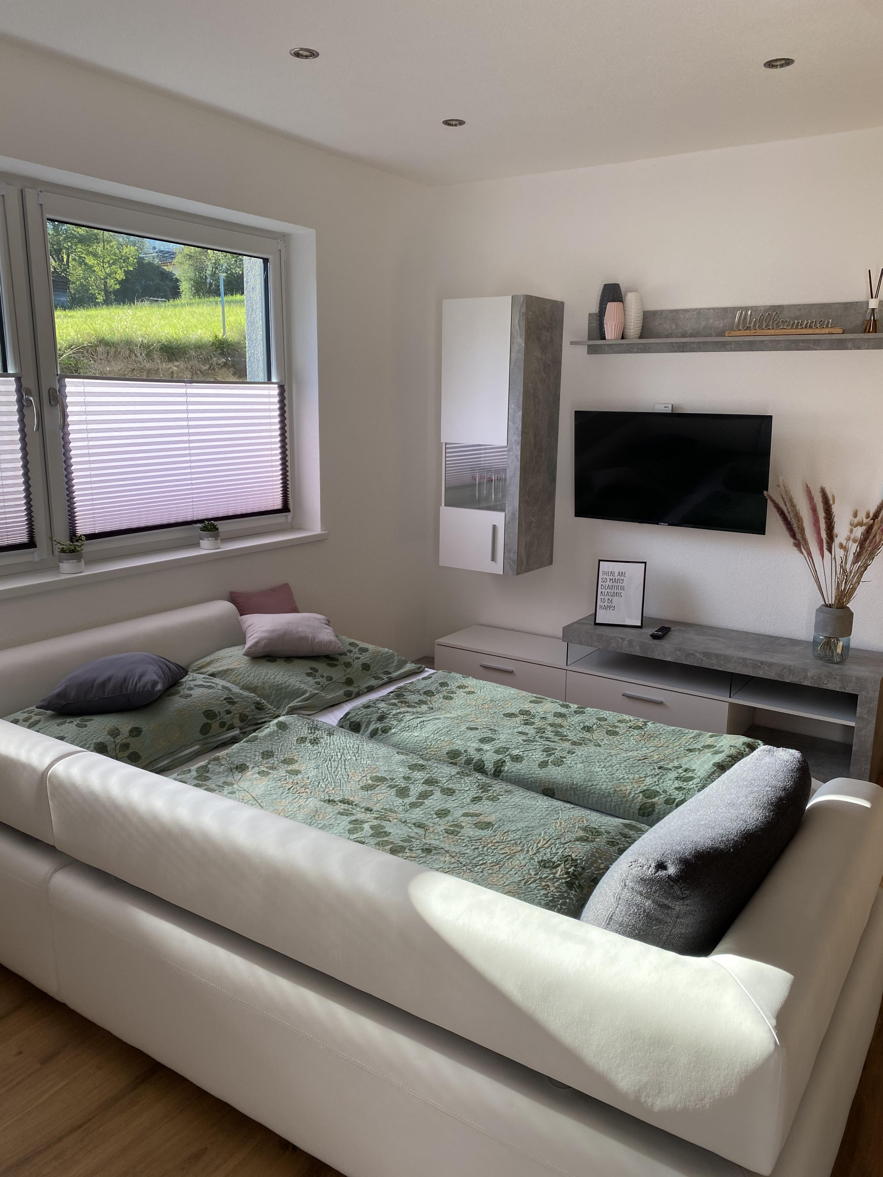 Das Appartement mit ca. 50 m² befindet sich im Parterre mit eigenen Eingang und besteht aus: 1 Doppelzimmer; einer gemütlichen Wohnküche mit Schlafsofa (für die 3 und 4. Person; Sofa 160 x 220 inkl. Topper, ideal für 2 Kinder) und Sat-TV; einer vollausgestatteten Küchenzeile mit Geschirrspüler, Backofen, Mikrowelle, Kaffeemaschine uvm.; Essbereich;1 Badezimmer mit Du/WC; Waschmaschine