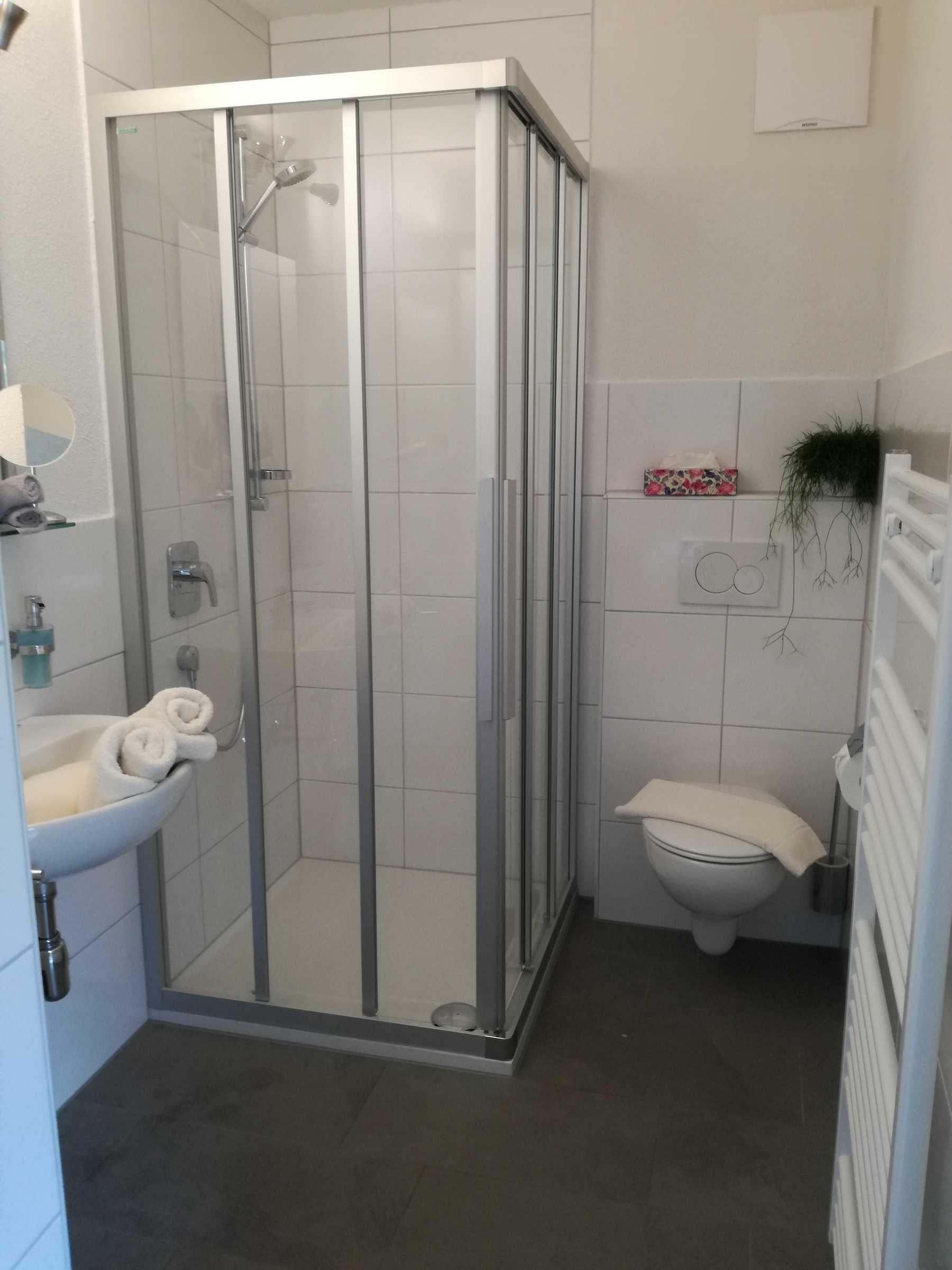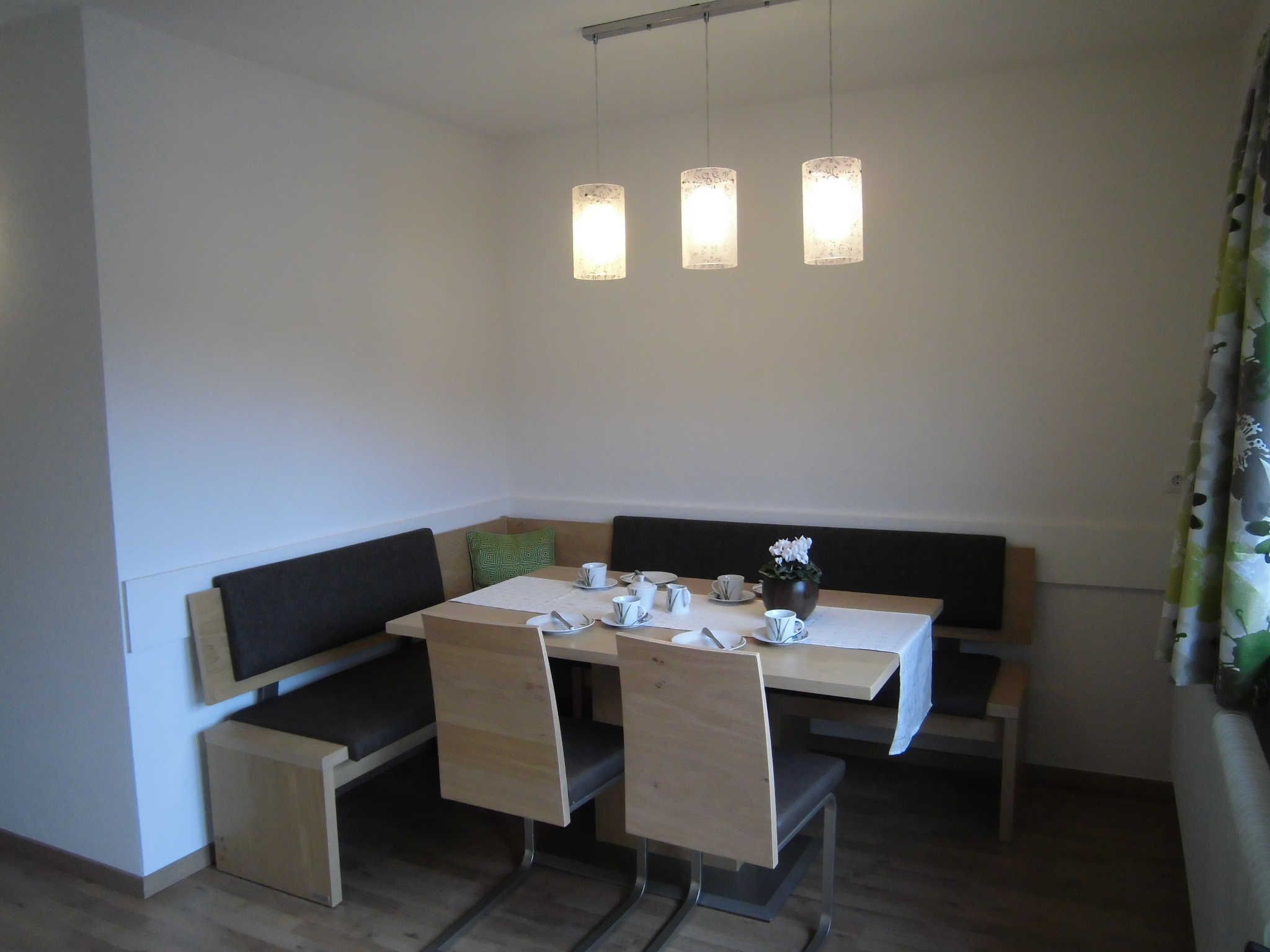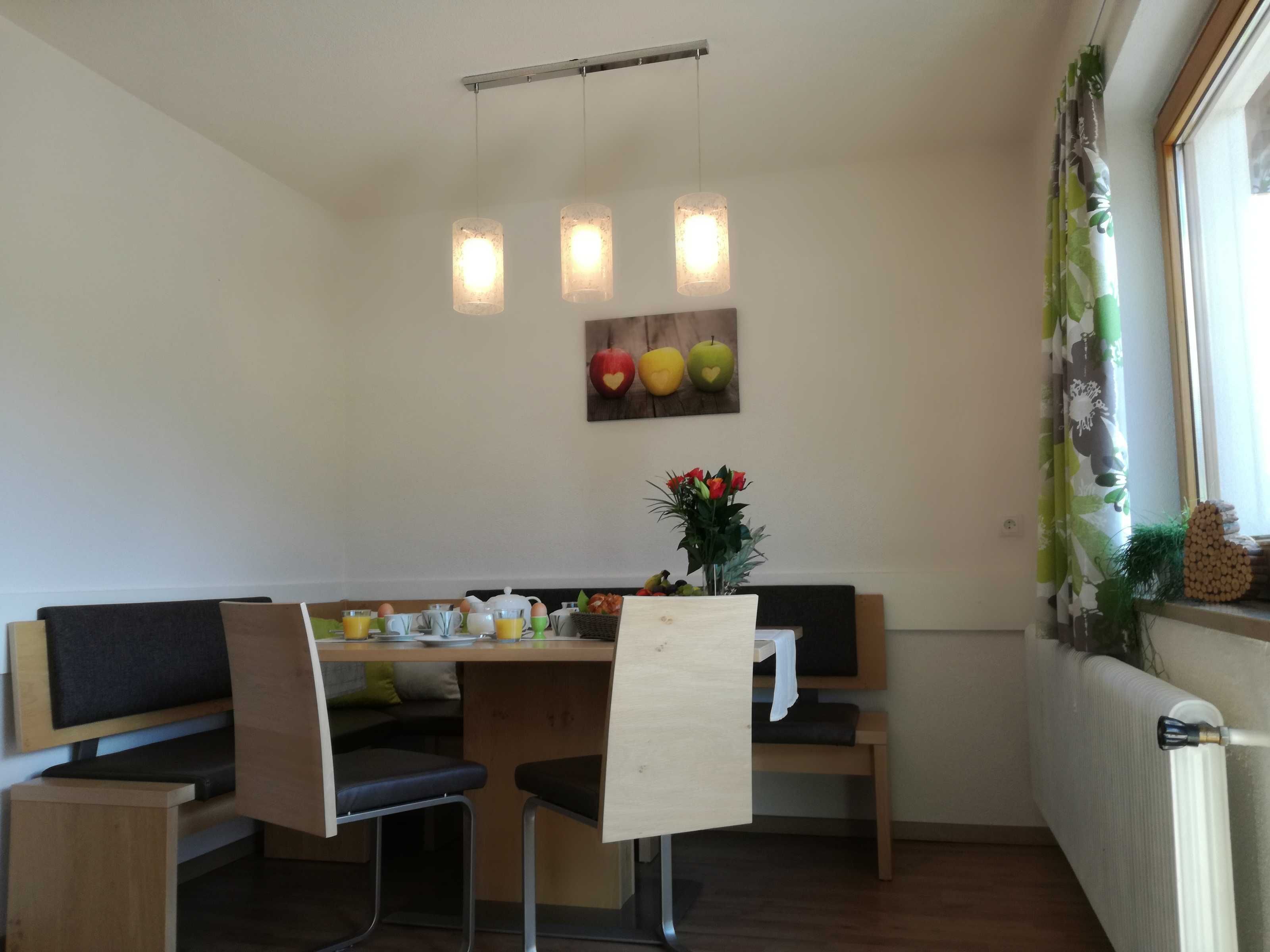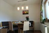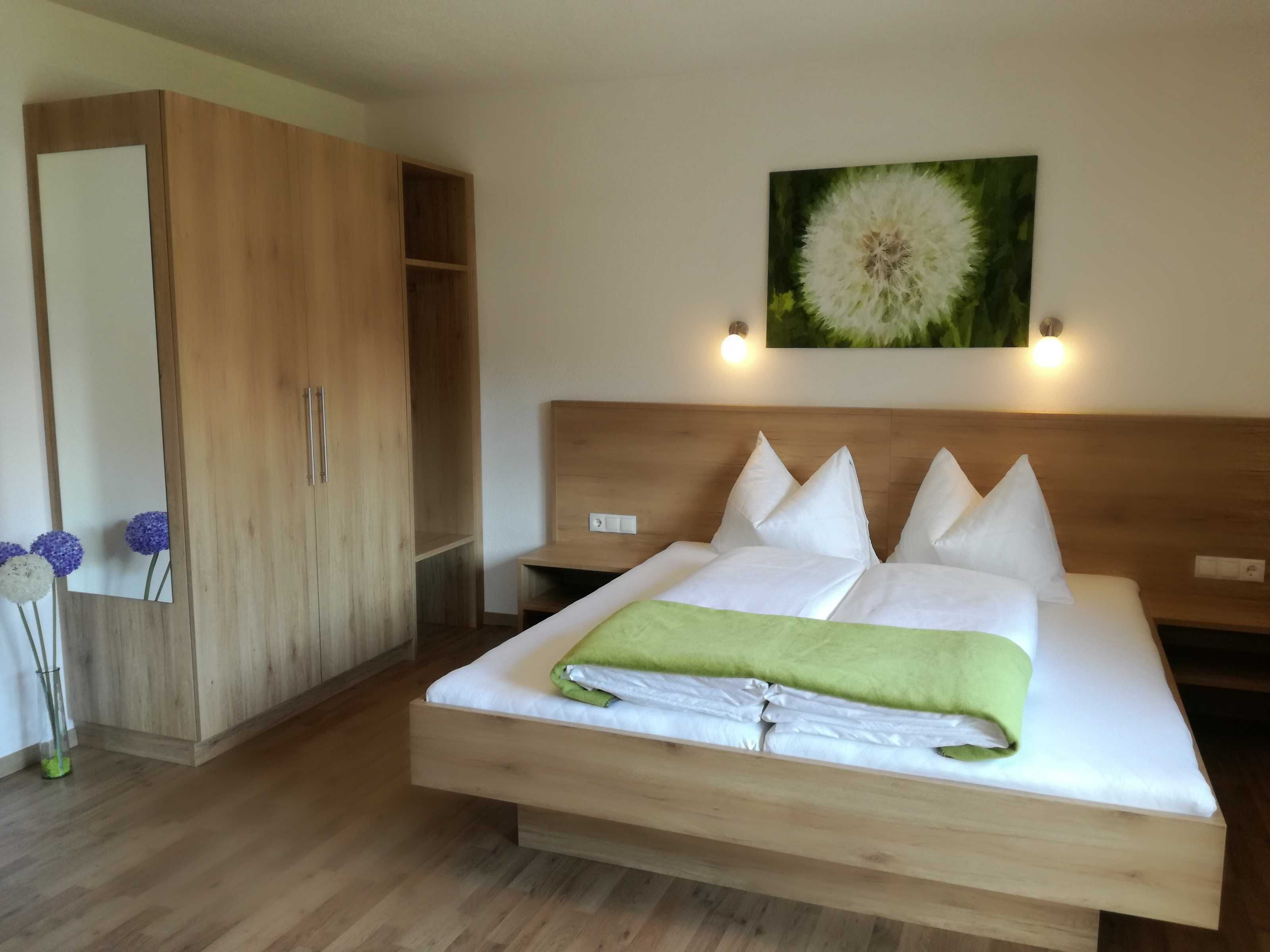 Gemütliches Apartment mit 2 Balkons für 2 - 4 Personen. 2 Schlafzimmer mit Doppelbett und jeweils eigenem Badezimmer. Großer Essbereich und Wohnküche mit sämtlichen E- Geräten (Ceran- Kochherd, Backofen, Mikrowelle, Dunstabzug, Spülmaschine, Kühlschrank mit Gefrierfach). Eine Kaffeemaschine und ein Wasserkocher ergänzen die Geräteausstattung. Besteckkomplettierung, Koch- und Essgeschirr, Kleingerätschaft, Küchenwäsche, Bettwäsche und Handtücher vorhanden. Moderne TV - Geräte und WLan (kostenlos) im ganzen Haus.