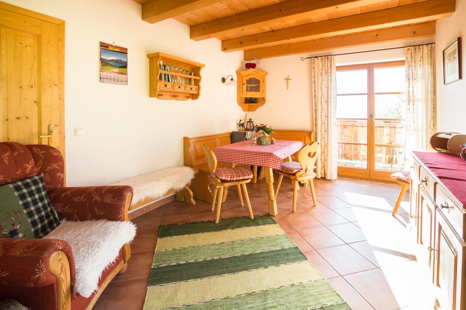 Unsere Ferienwohnungen sind komplett ausgestattet mit Terrasse oder Balkon, Elektroherd, Mikrowelle, Kühlschrank, Kafeemaschine, Geschirrspüler, Geschirr, Tisch- und Küchenwäsche, Handtücher, Bettwäsche, Sat-TV, Radio, WLAN Internet Zugang, Waschmaschine (ausgenommen Ferienwohnung Schafberg, hier steht keine Waschmaschine zur Verfügung).