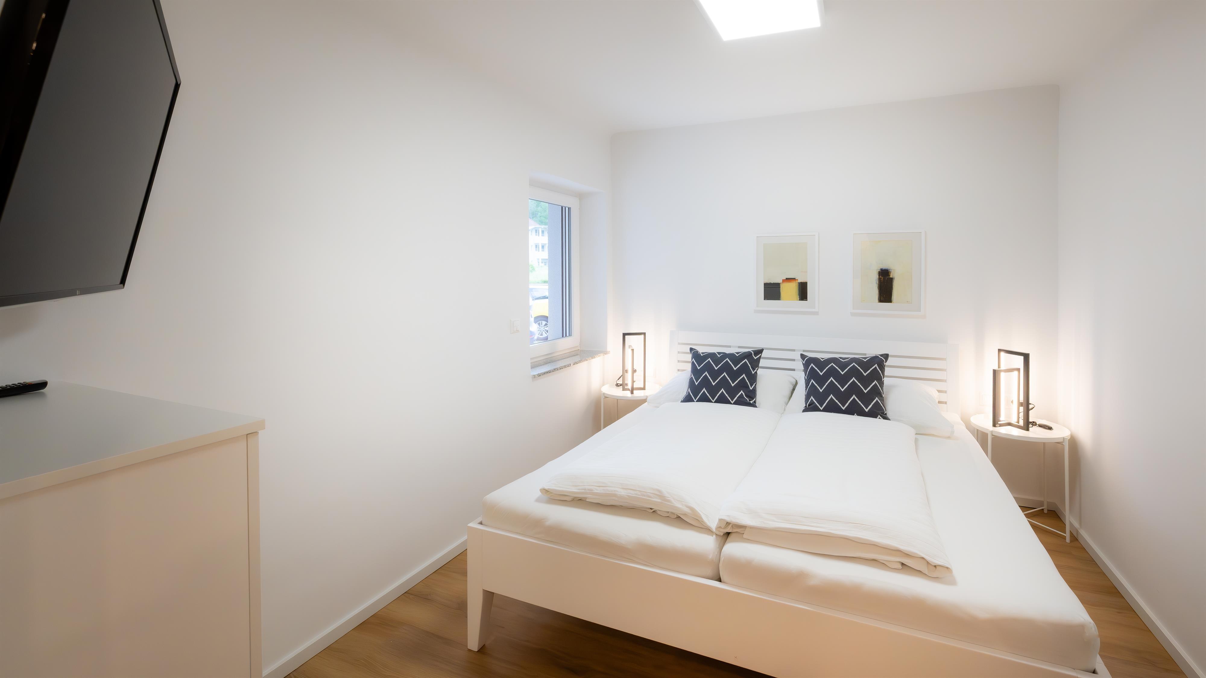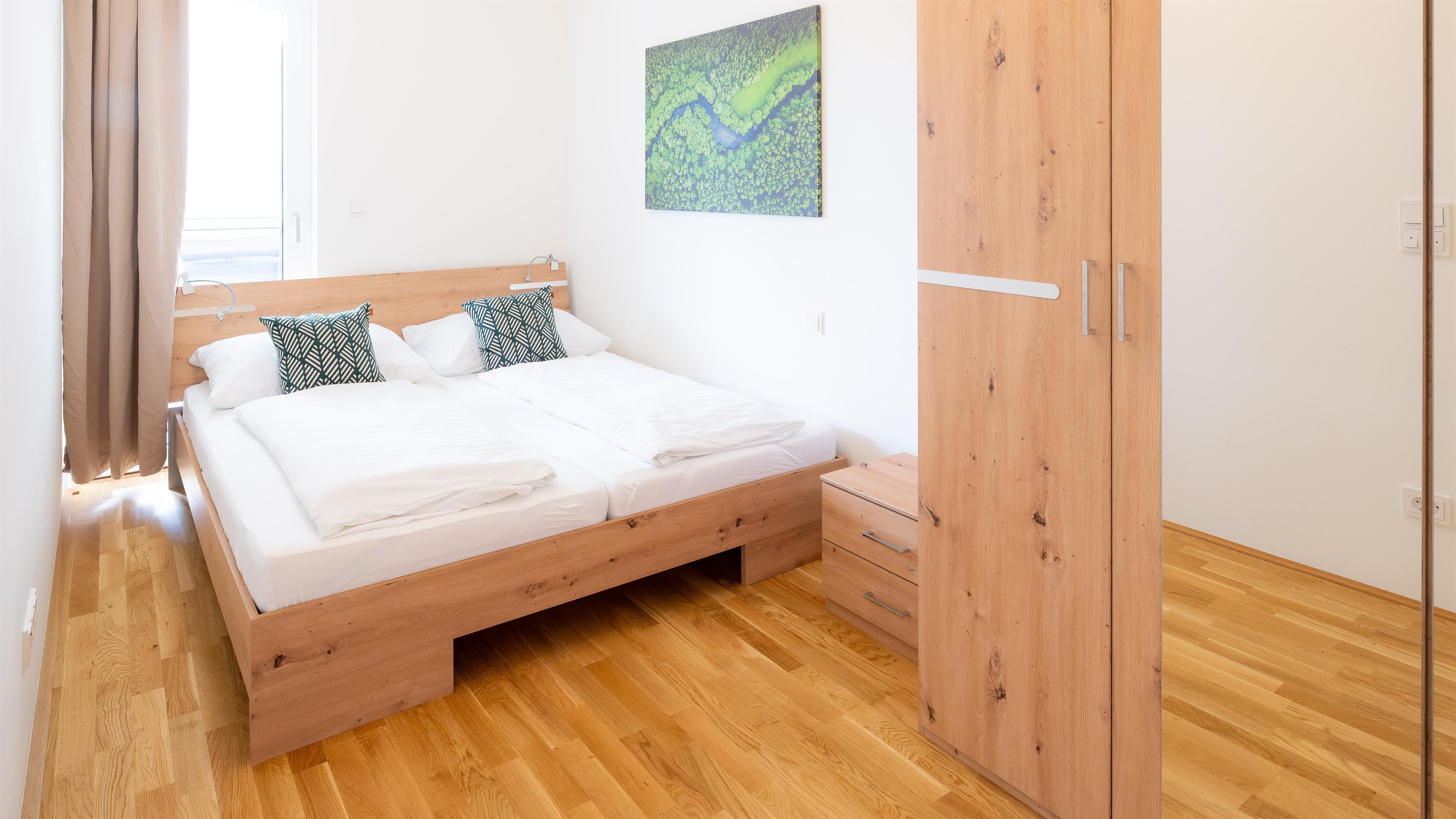 Die modernen Wohnungen bieten Platz für bis zu fünf Personen und grenzen direkt an die Ostuferpromenade.