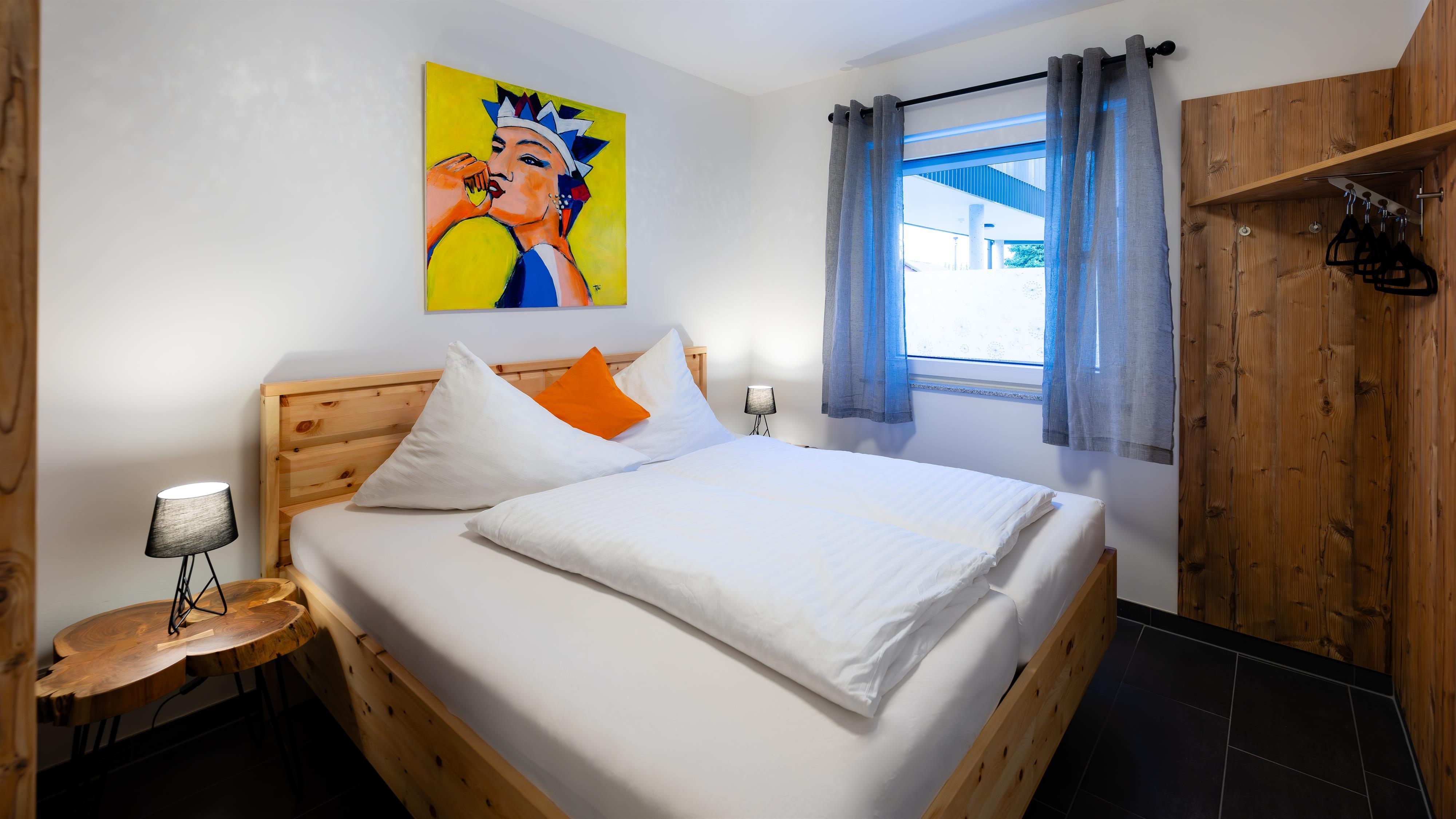 • Ein Schlafzimmer mit bequemen Doppelbett