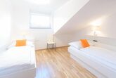 Das komfortable Badezimmer verfügt über einen Waschtisch, eine Dusche sowie eine Toilette. Hand-, Duschtücher, Fön und elektr. Handtuchtrockner sind vorhanden.