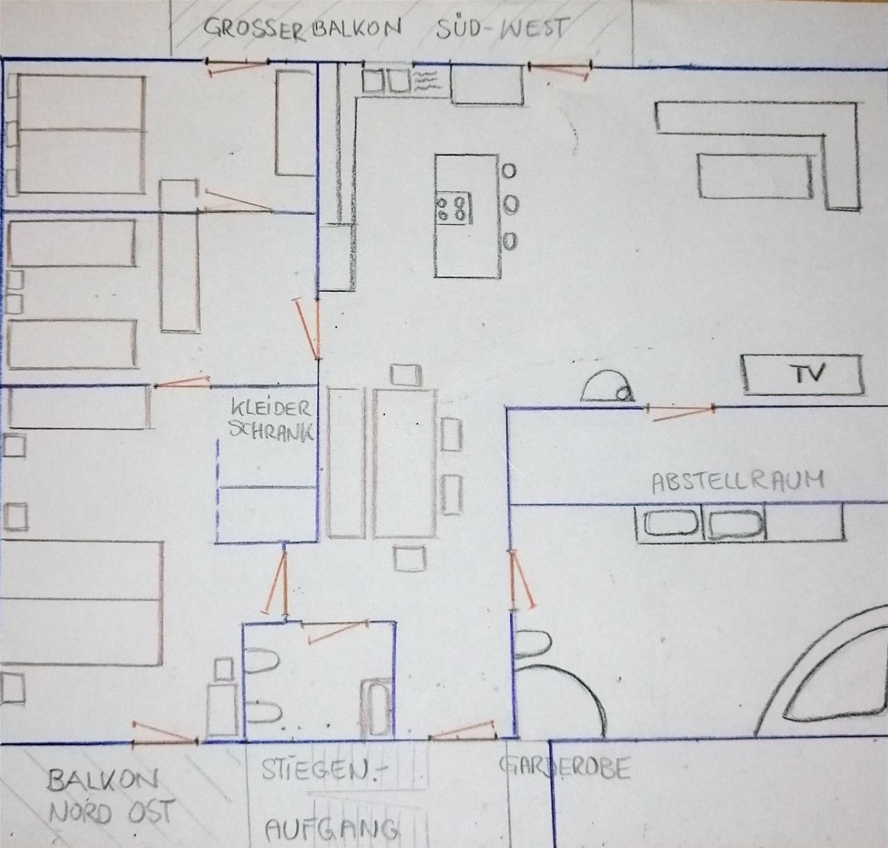 Das grosszügige Apartment von ca 90m2 verfügt über eine moderne Küche mit Kochinsel und einem Essbereich, 3 Schlafzimmer. Zwei davon mit einem Doppelbett und eines mit zwei Einzelbetten sowie ein Bad mit einer Dusche, Wanne und einem WC. Ein separates WC mit Pissoir ist auch vorhanden.